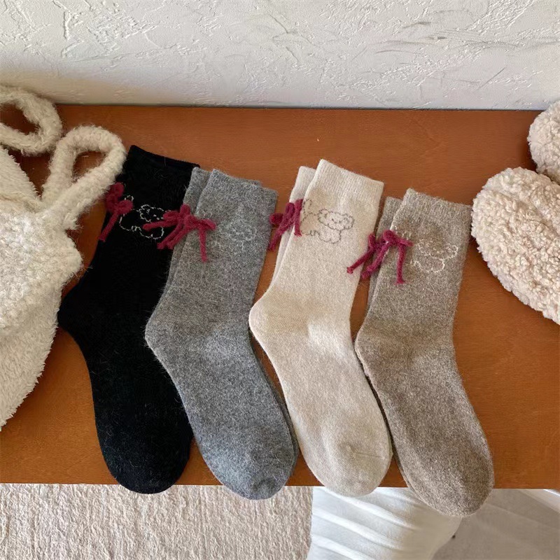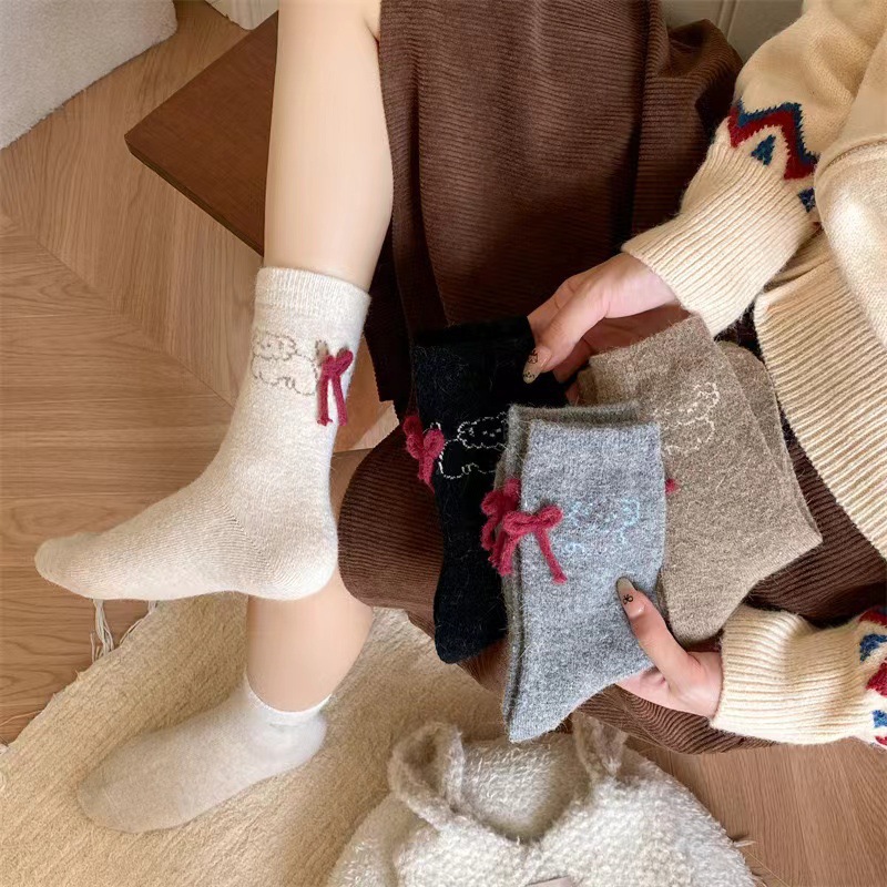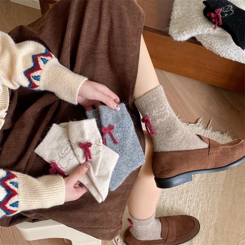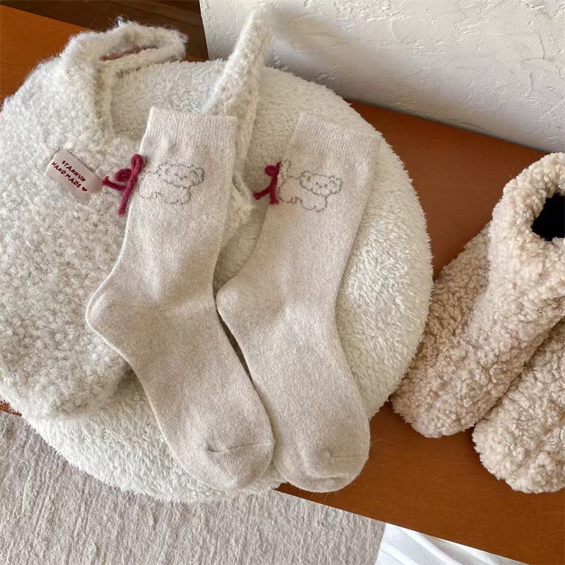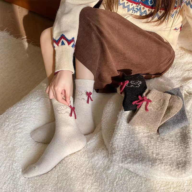 가을과 겨울 강아지 양말 여성용 Bowknot 귀여운 따뜻한 한국 스타일 Ins 스타일 튜브 양말 두꺼운 여성용 튜브 양말스토어 가기