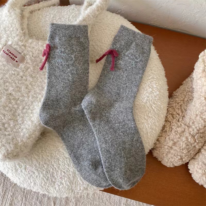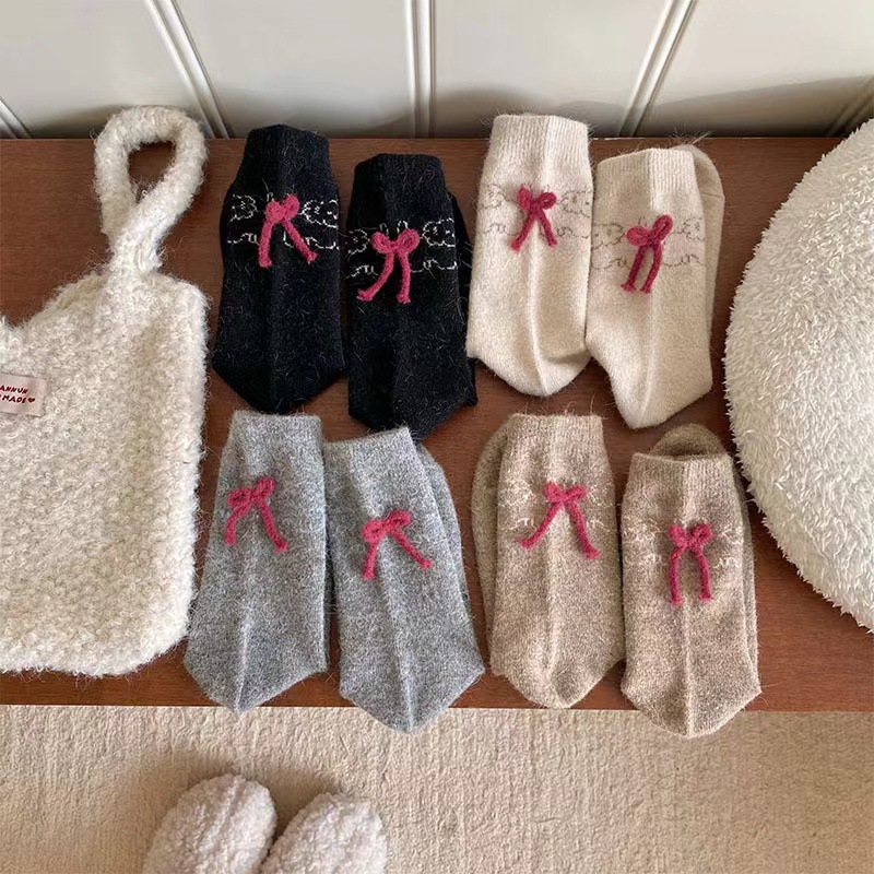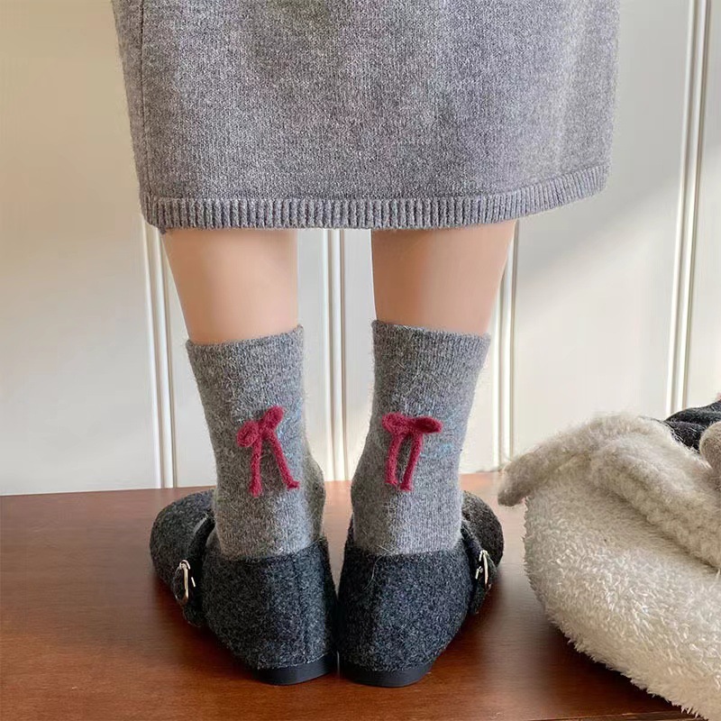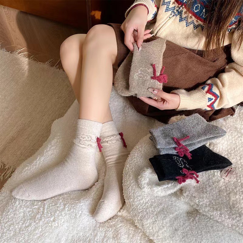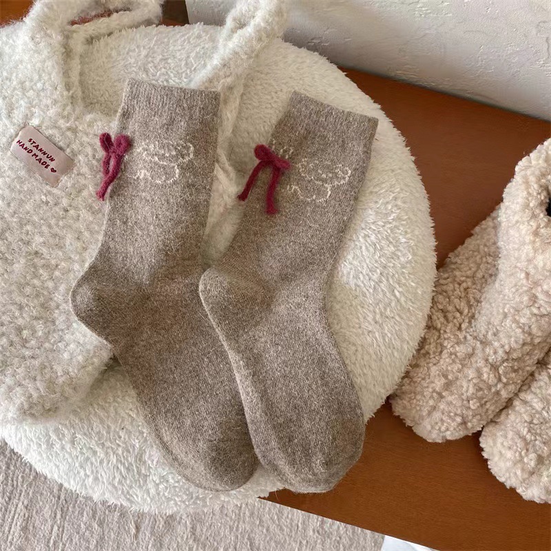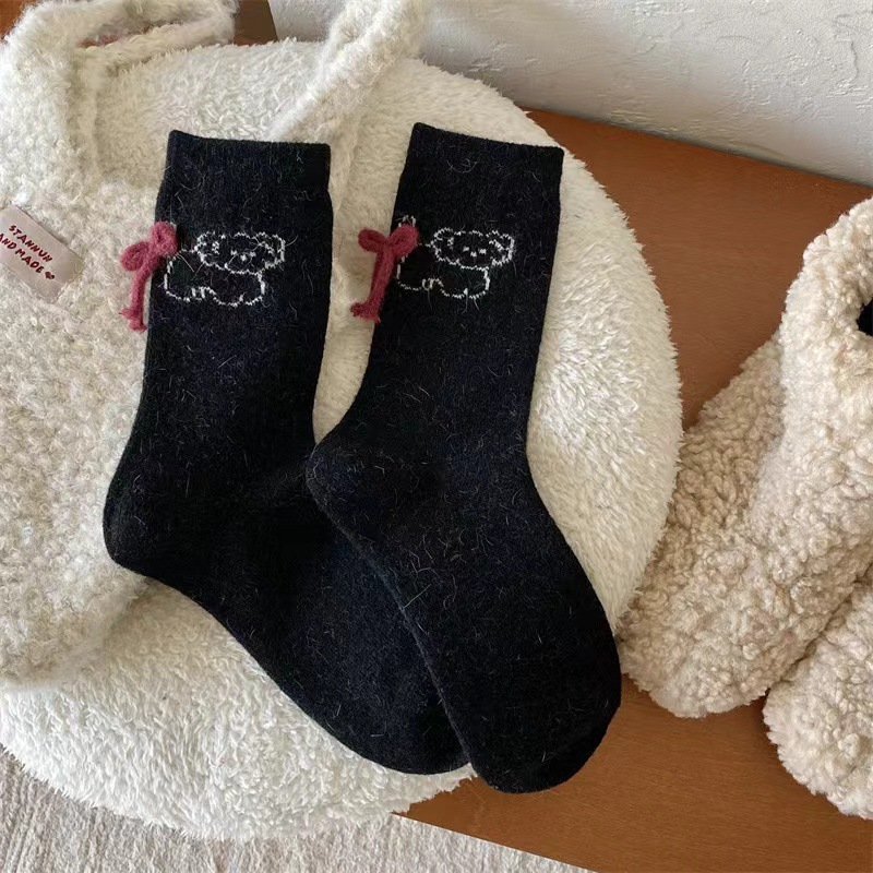 가을과 겨울 강아지 양말 여성용 Bowknot 귀여운 따뜻한 한국 스타일 Ins 스타일 튜브 양말 두꺼운 여성용 튜브 양말스토어 가기