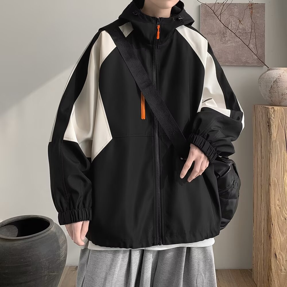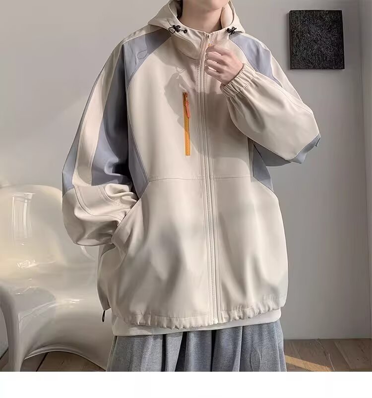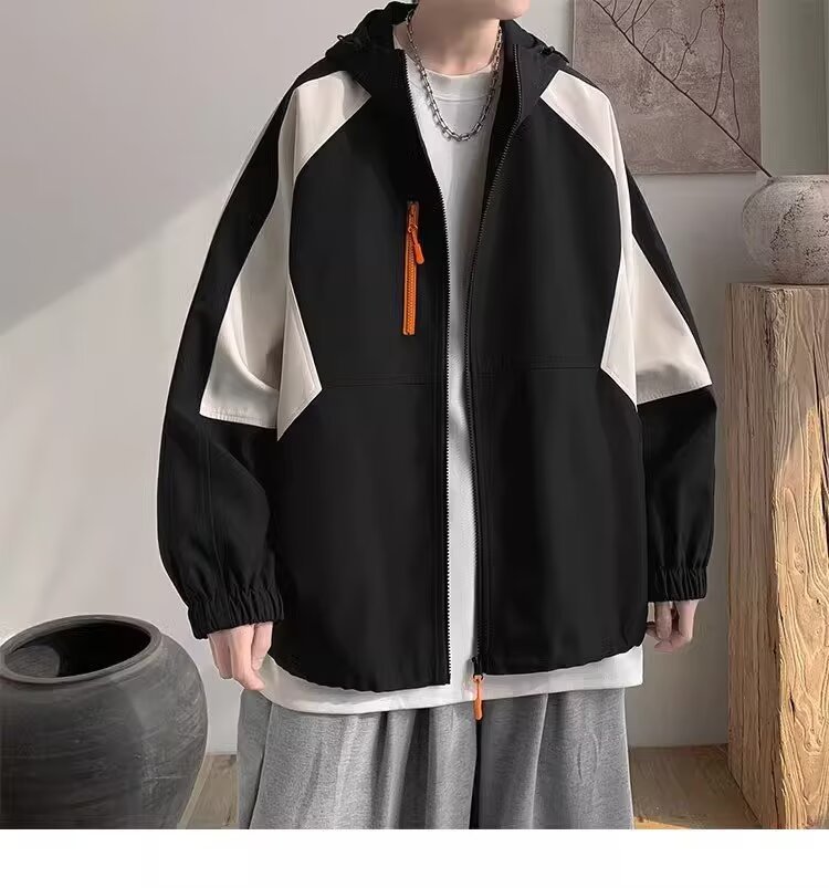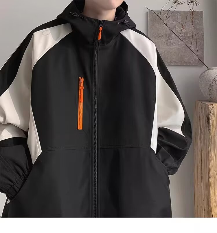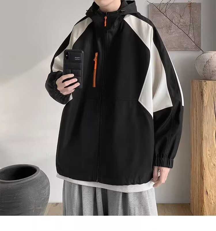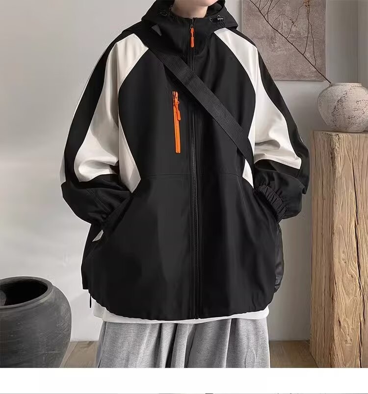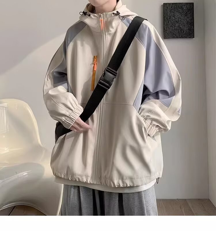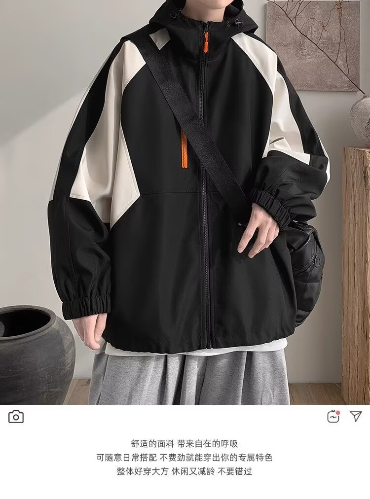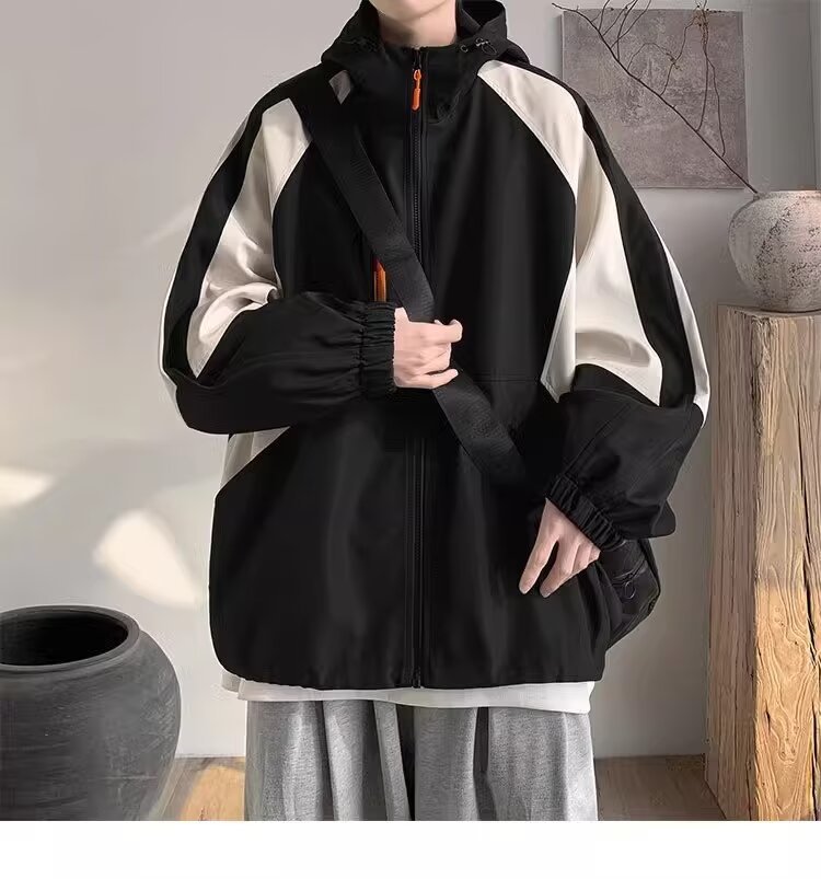 오리지널 공장 남성용 봄 가을 신상 일본풍 패치워크 후드 레트로 루즈핏 캐주얼 자켓스토어 가기
