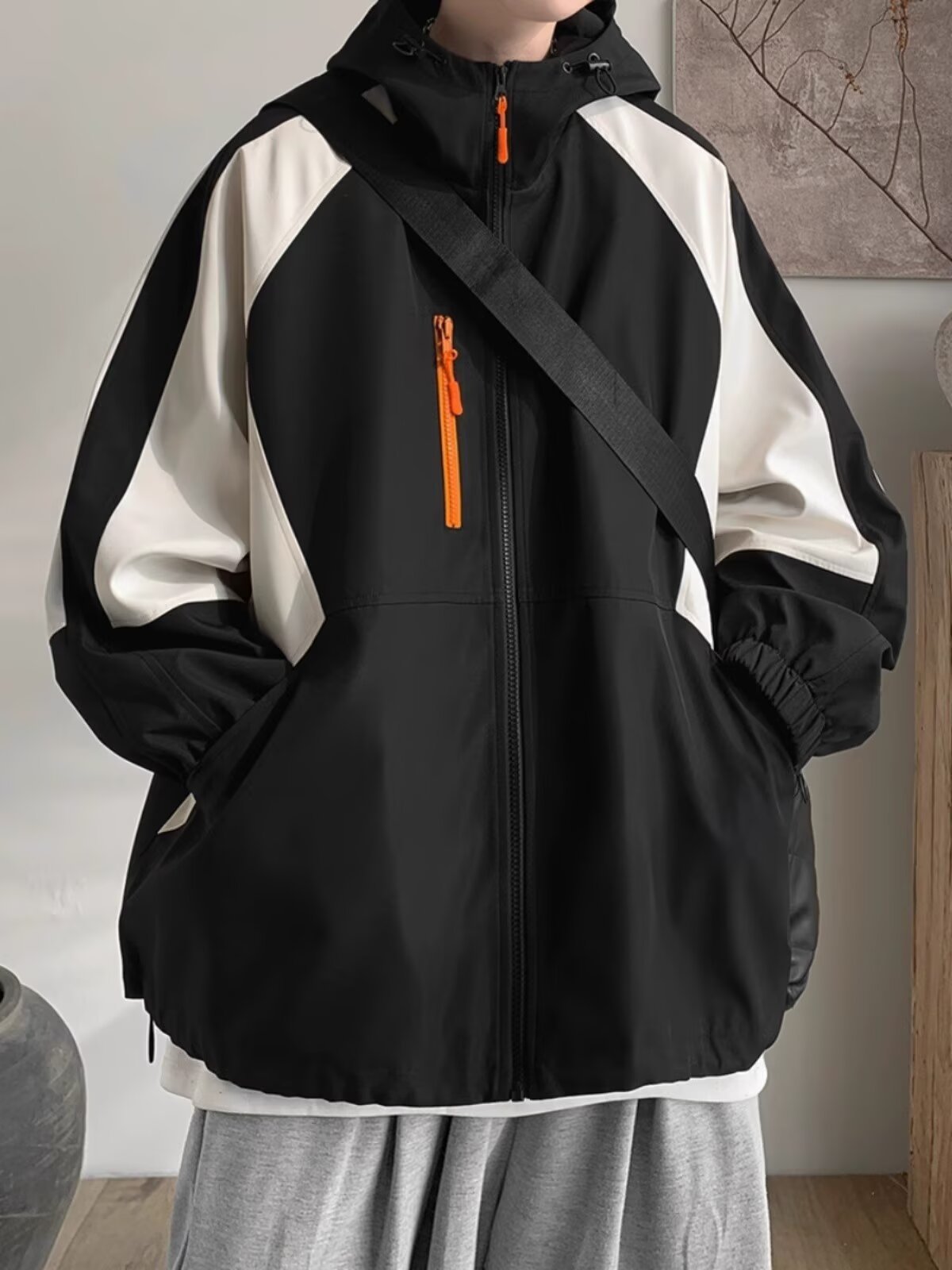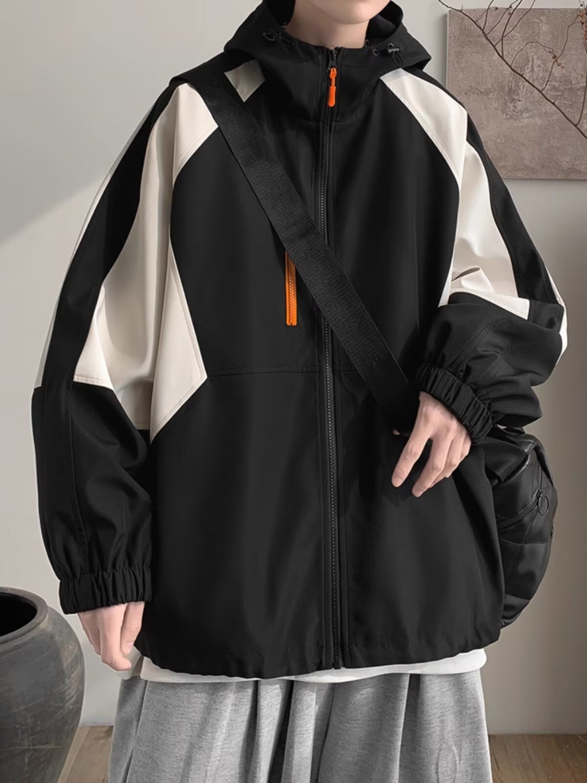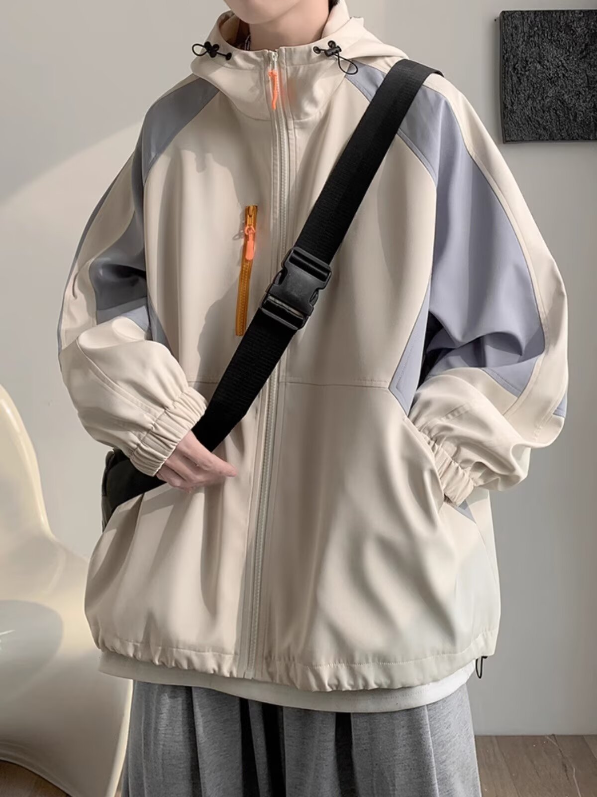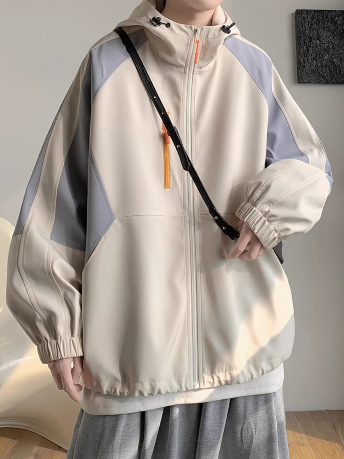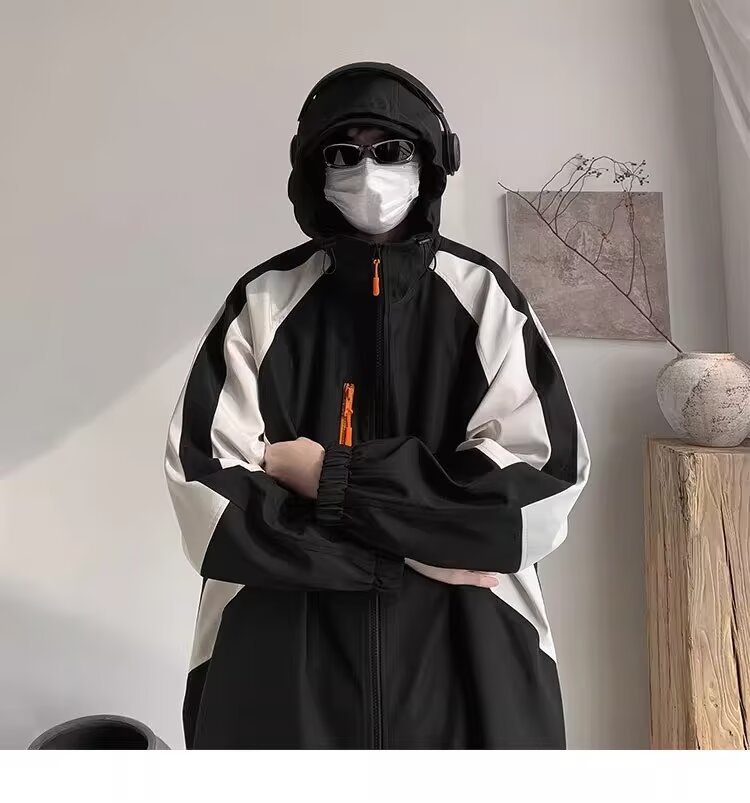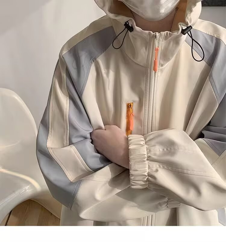 오리지널 공장 남성용 봄 가을 신상 일본풍 패치워크 후드 레트로 루즈핏 캐주얼 자켓스토어 가기