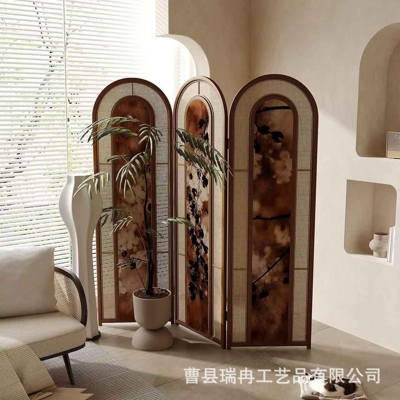 중간 및 고대 스타일 나무 파티션 화면 홈 소파 장식 배경 벽 이동식 장식 파티션 라이브 방송 배경 벽