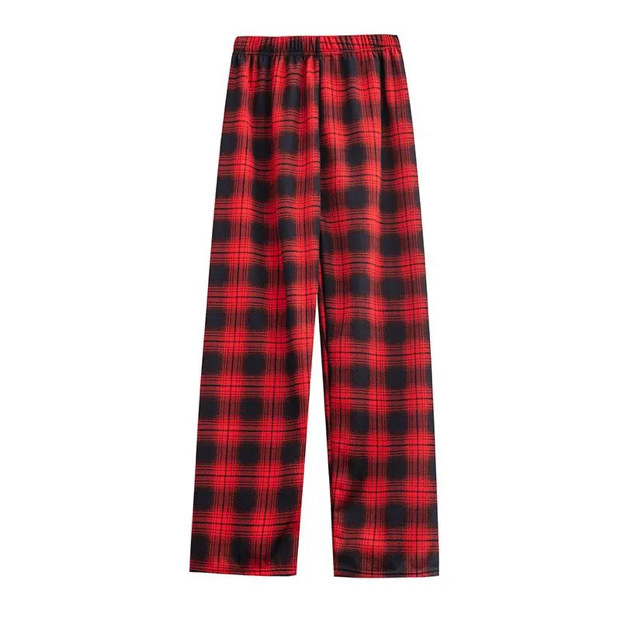 2024 년 가을 새로운 남성 격자 무늬 파자마 바지 유럽과 미국의 직선 요가 바지 홈 바지 캐주얼 바지