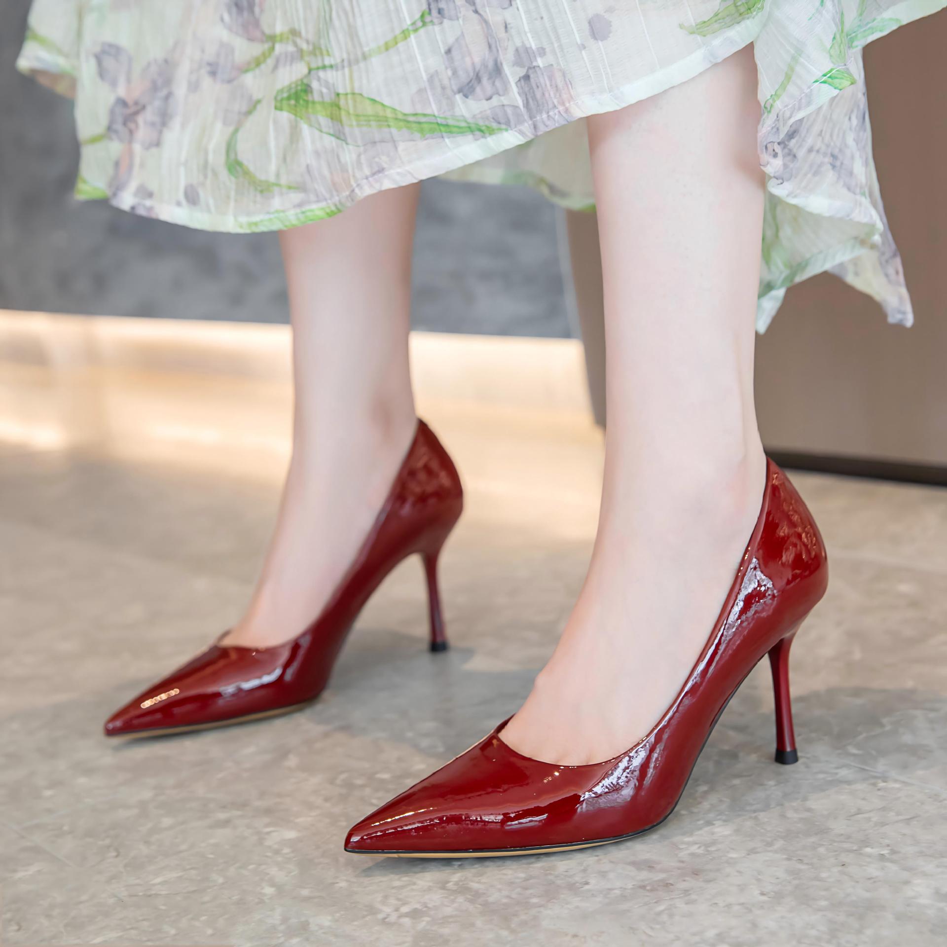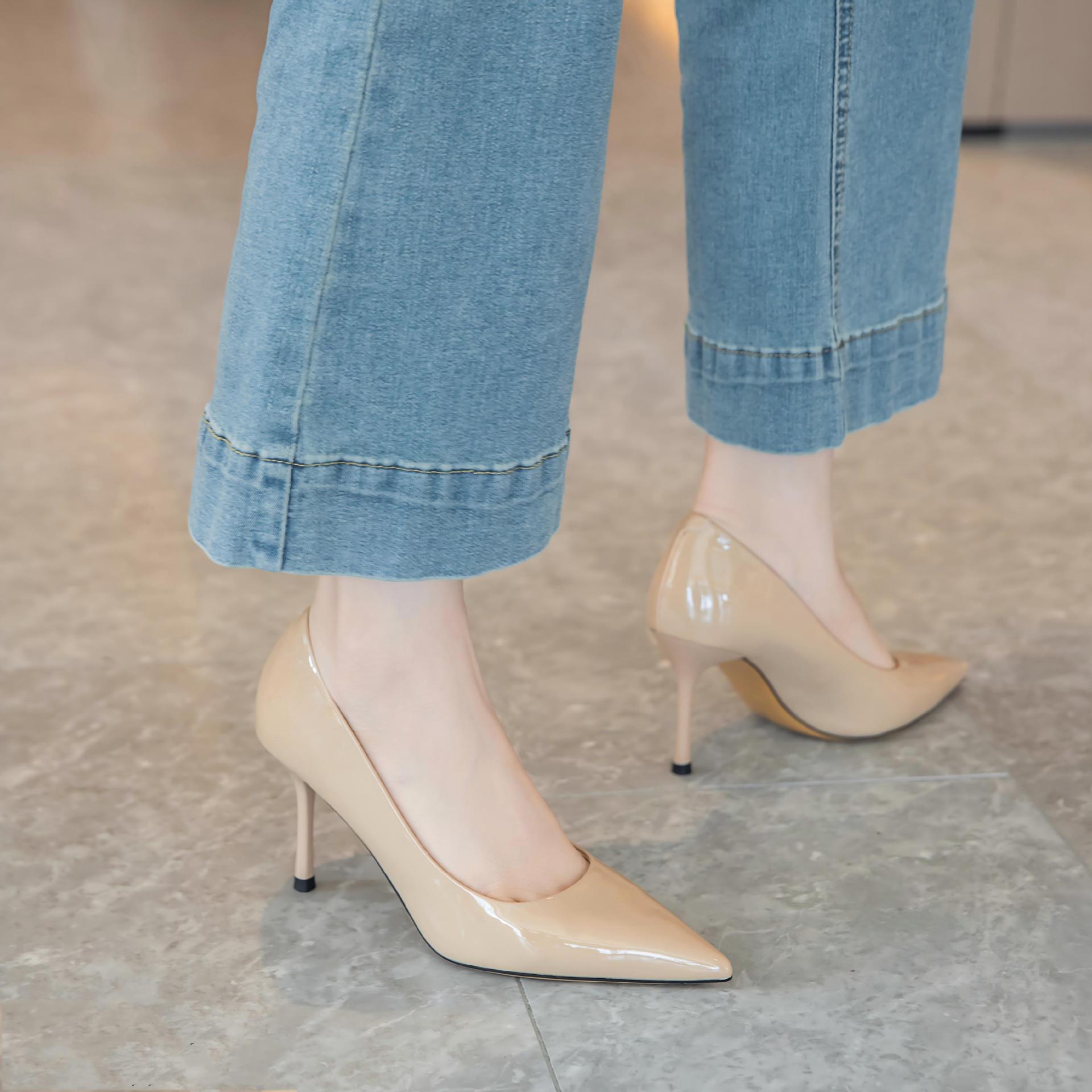 브레이징 골드 버드 2025 봄 새로운 섹시한 올 매치 인터넷 인기있는 프랑스 스틸레토 하이힐 간단한 밝은 특허 가죽 싱글 레이어 신발스토어 가기