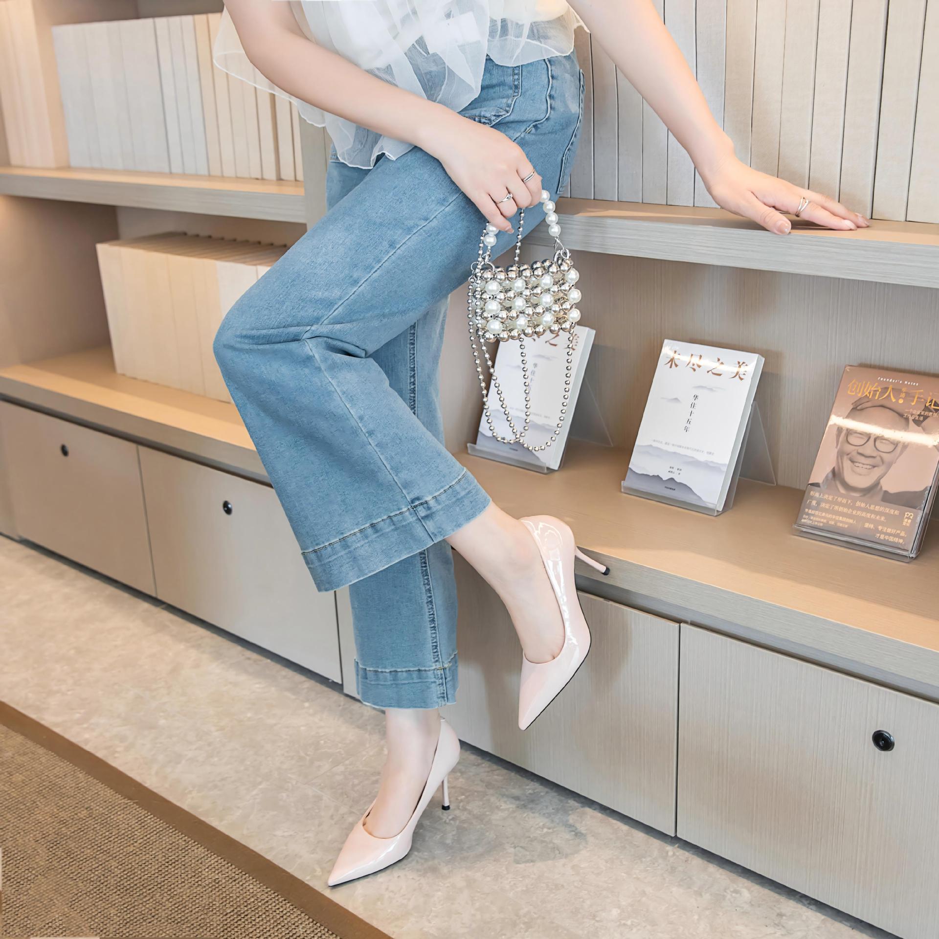 브레이징 골드 버드 2025 봄 새로운 섹시한 올 매치 인터넷 인기있는 프랑스 스틸레토 하이힐 간단한 밝은 특허 가죽 싱글 레이어 신발