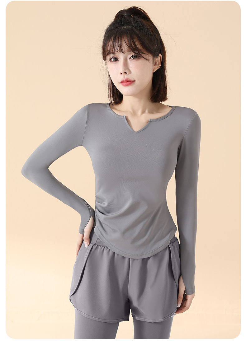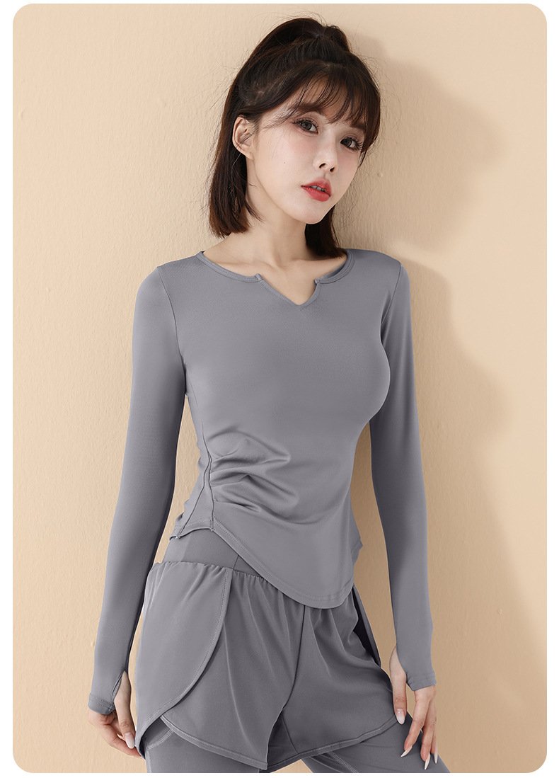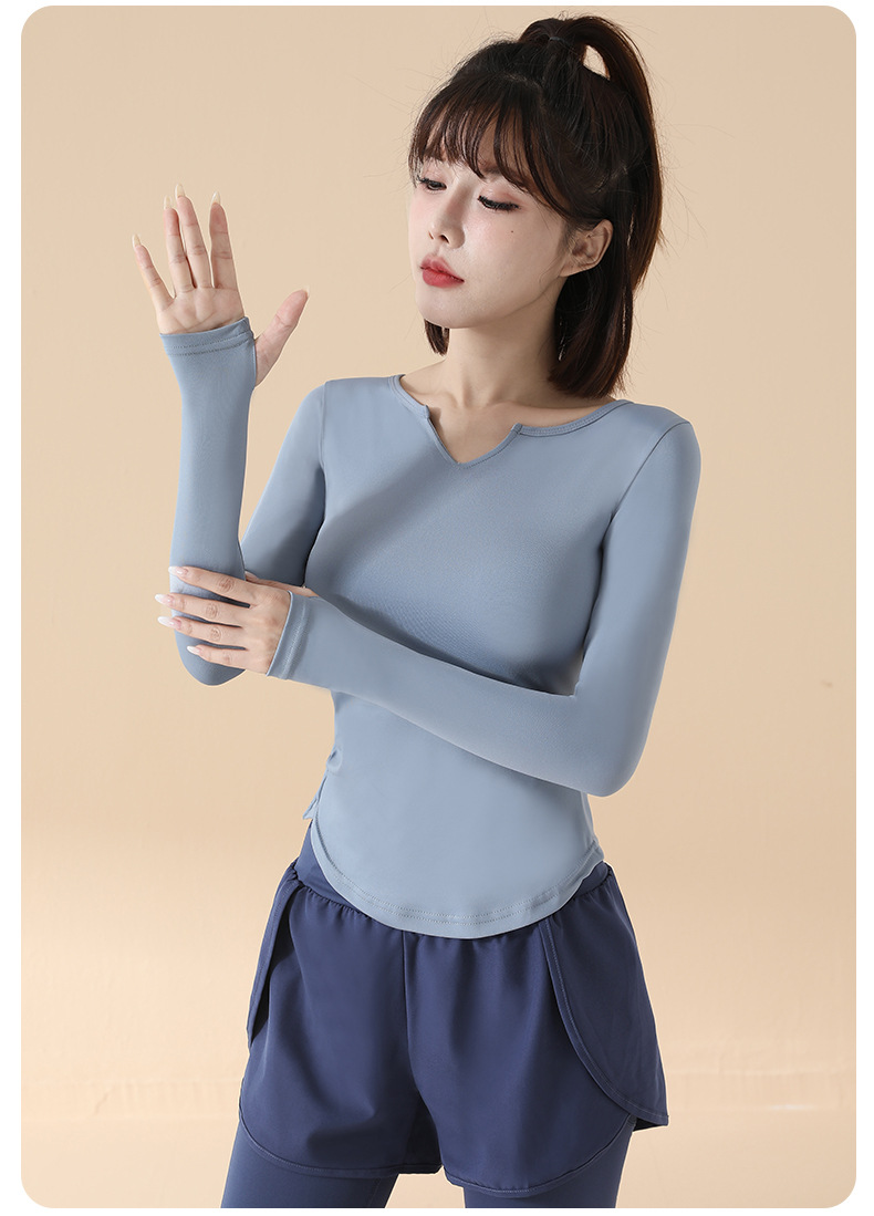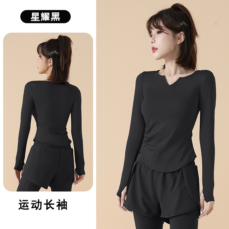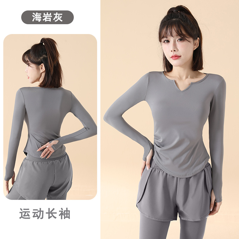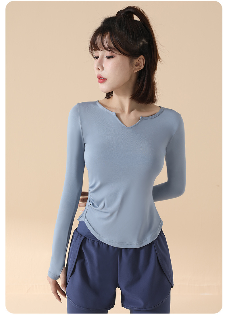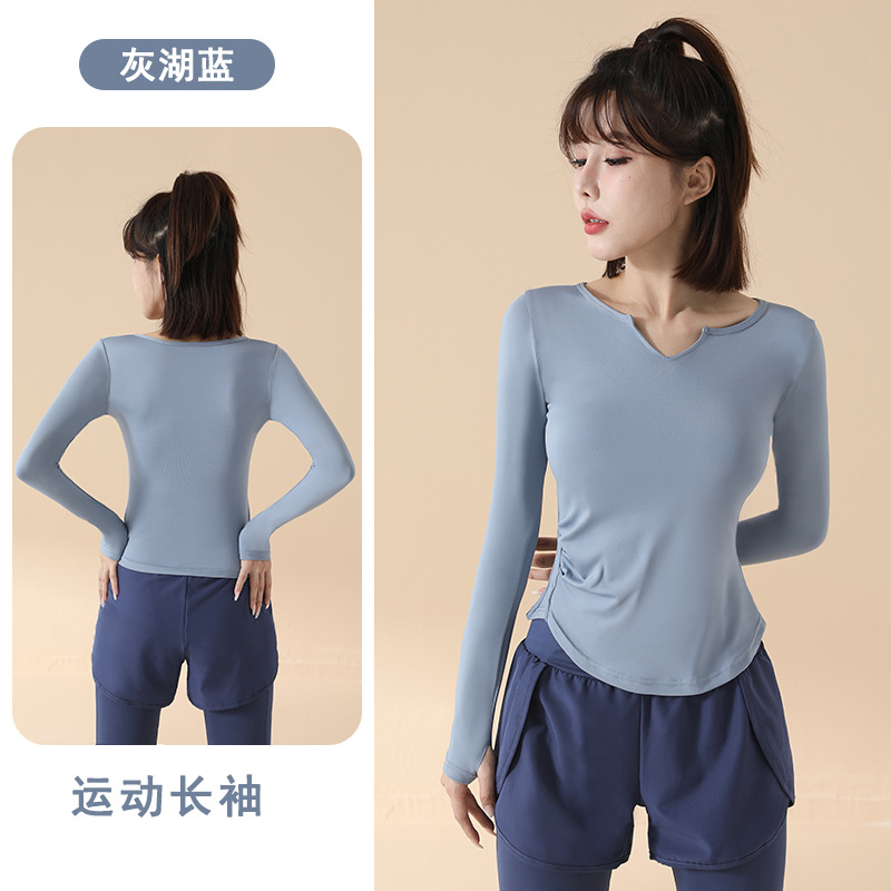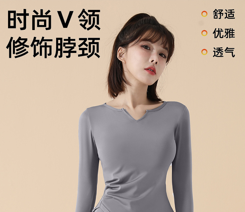 고급 요가복 여성용 2025 봄 가을 신상 속건성 긴팔 브이넥 티셔츠 스포츠 상의 러닝 피트니스 의류스토어 가기