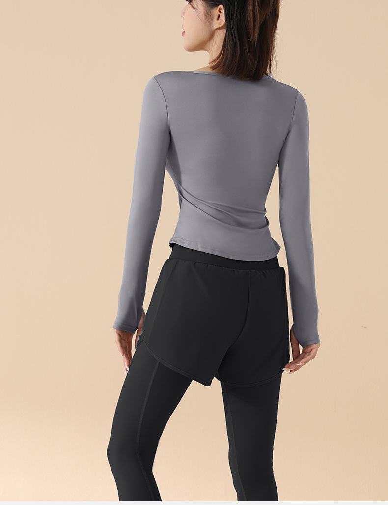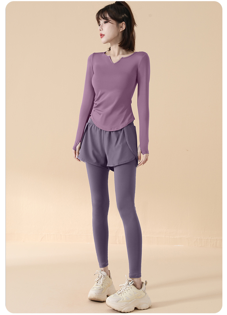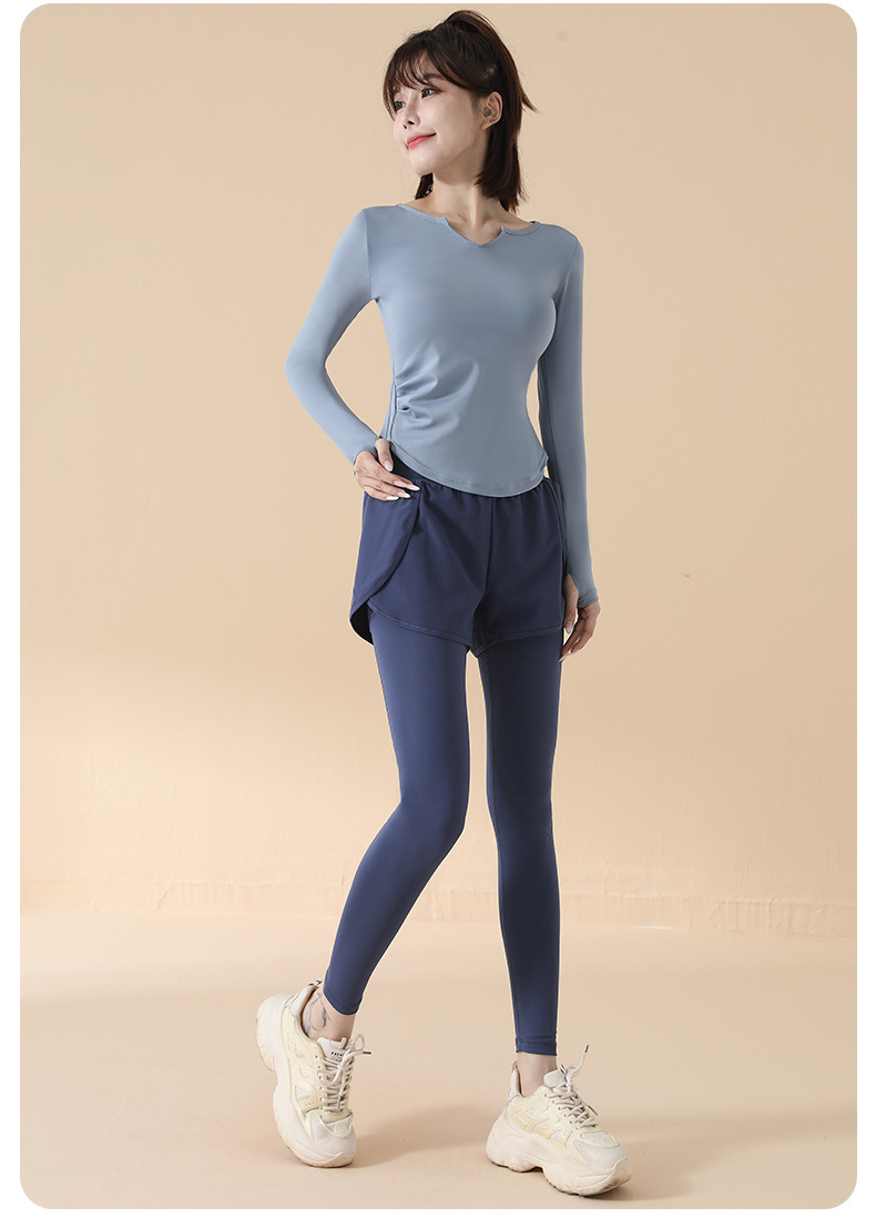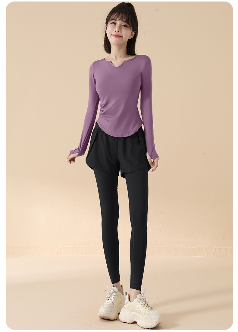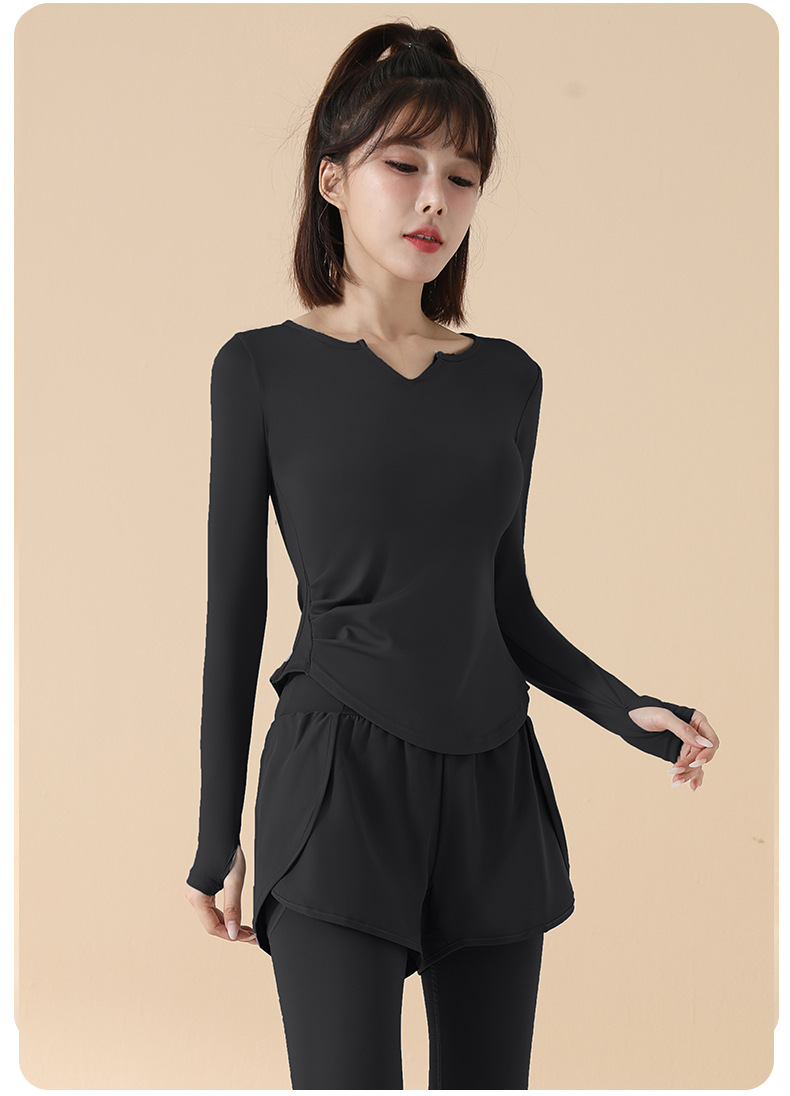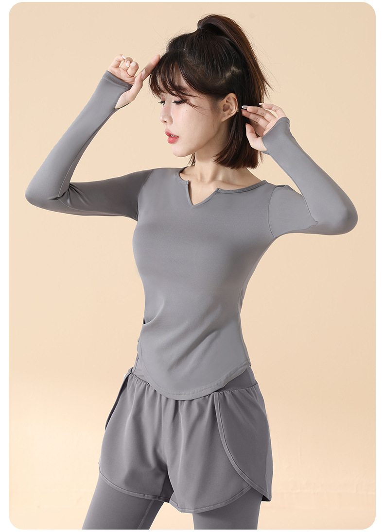고급 요가복 여성용 2025 봄 가을 신상 속건성 긴팔 브이넥 티셔츠 스포츠 상의 러닝 피트니스 의류스토어 가기