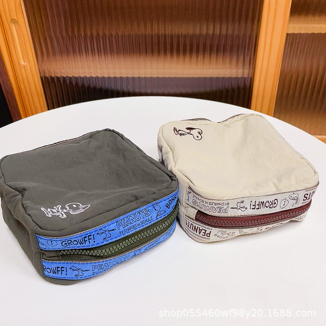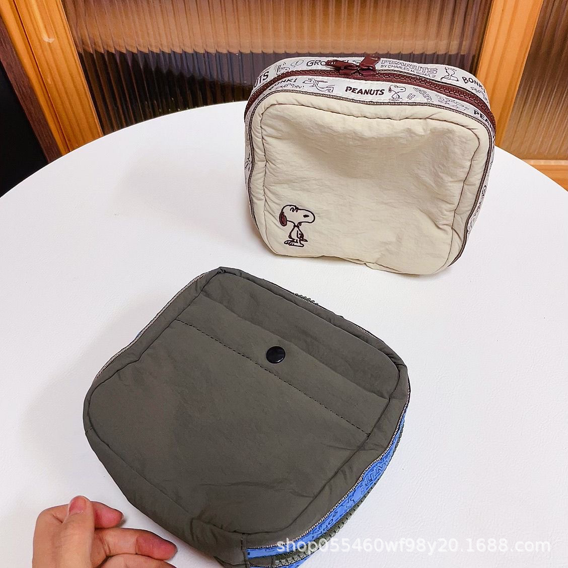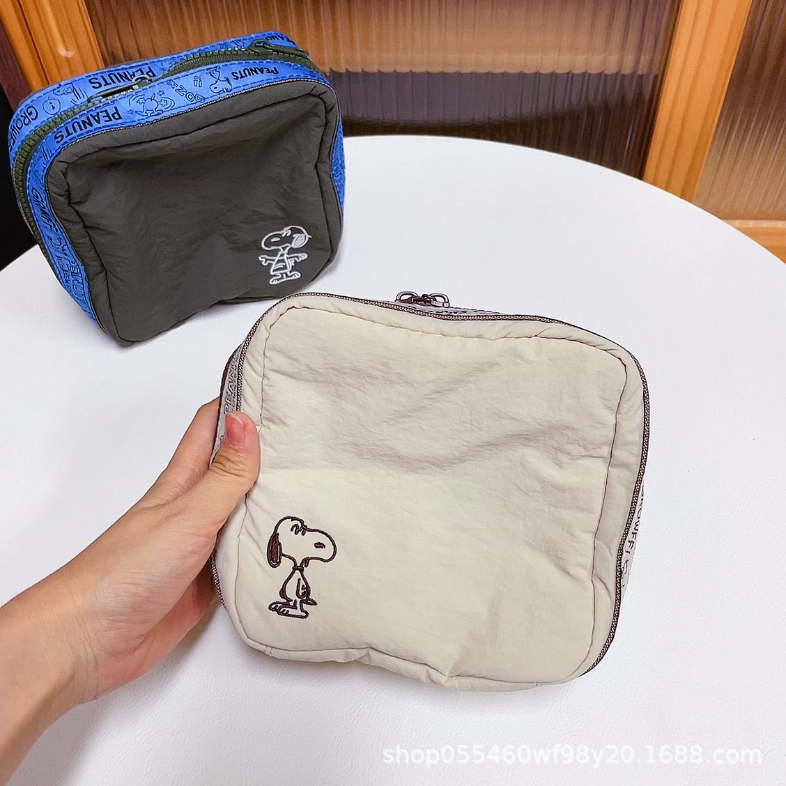 재고 있음: 만화 자수 스누피 화장품 가방, 레트로 스타일 사각 수납 가방, 여행용 세면도구 가방, 휴대용스토어 가기