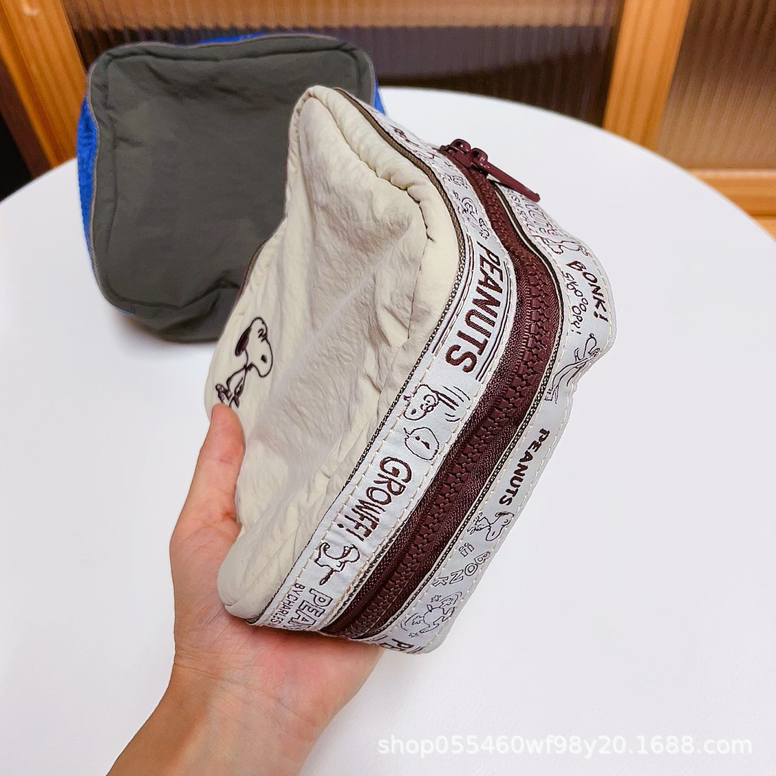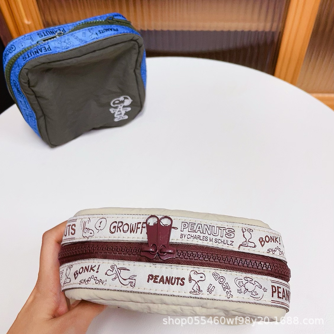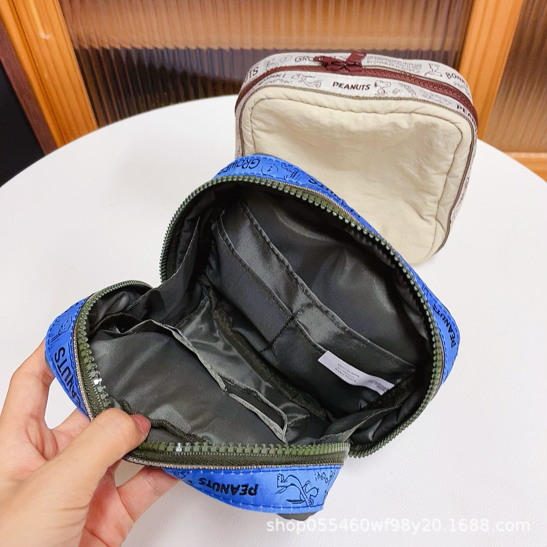 재고 있음: 만화 자수 스누피 화장품 가방, 레트로 스타일 사각 수납 가방, 여행용 세면도구 가방, 휴대용스토어 가기