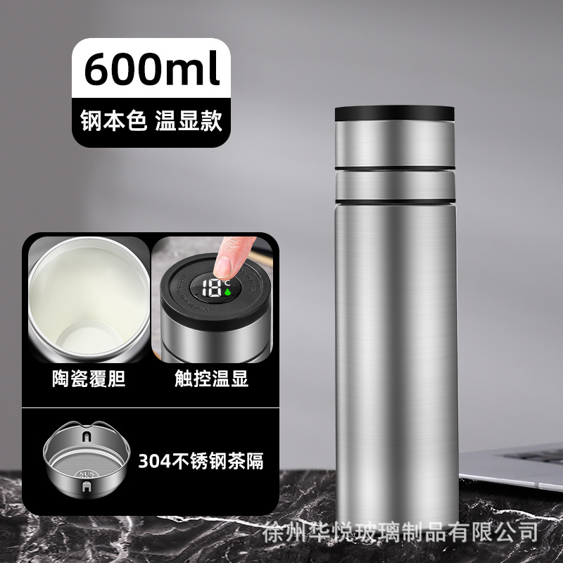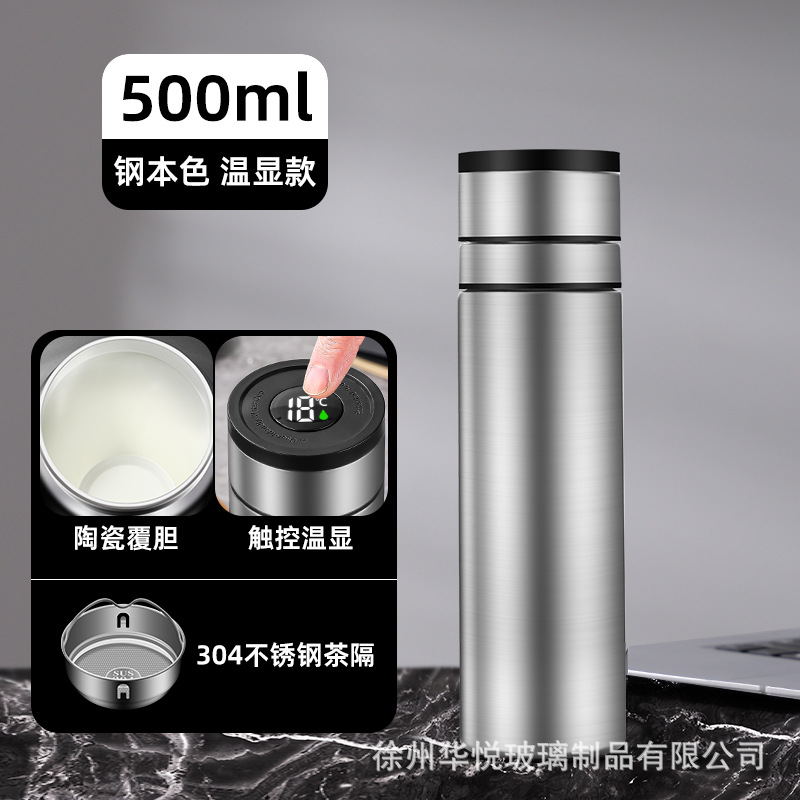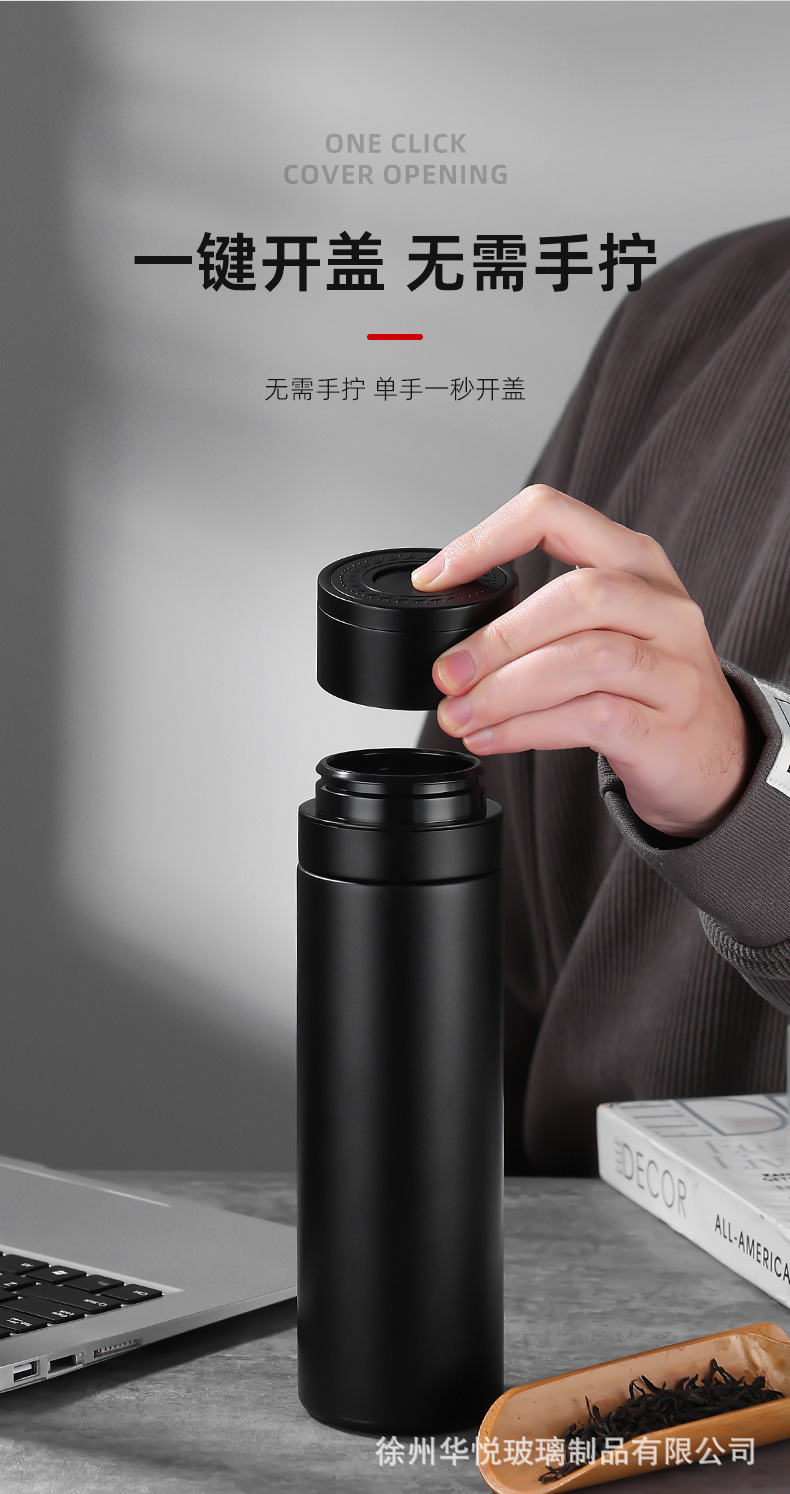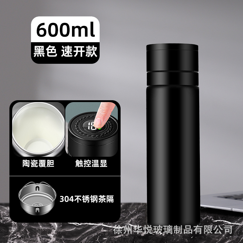 세라믹 커버 담낭 지능형 보온병 컵 원 키 오픈 뚜껑 차 물 분리 컵 터치 스크린 온도 디스플레이 휴대용 자동차 빠른 오픈 컵