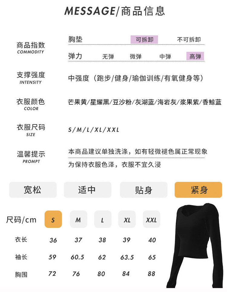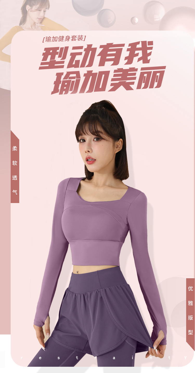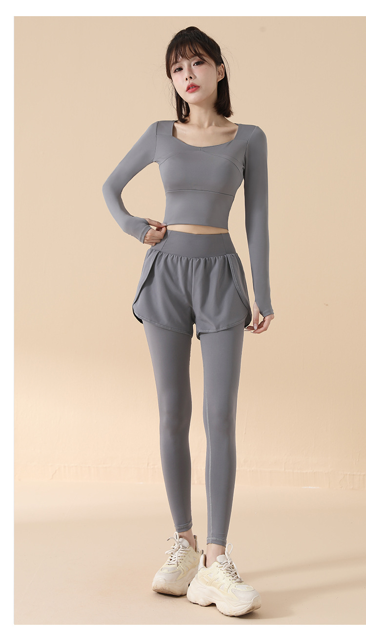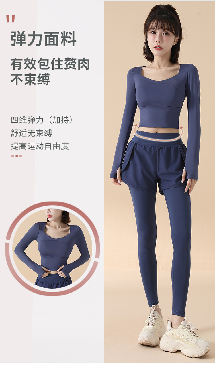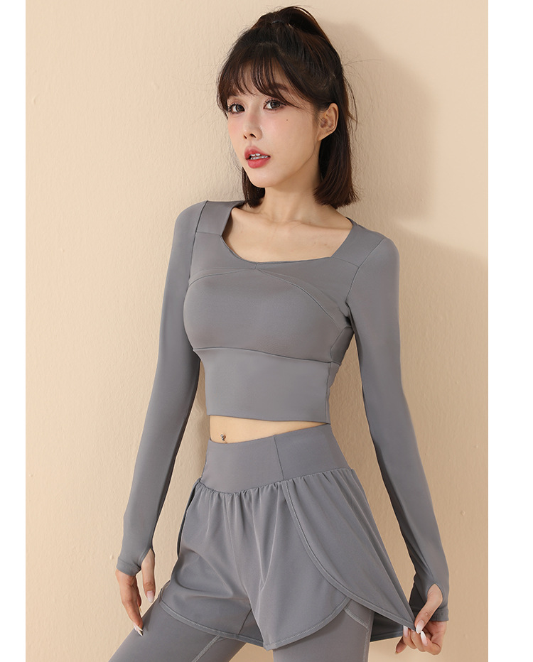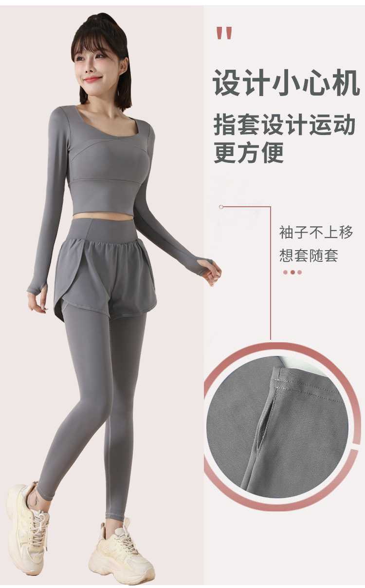 요가 의류 최고의 여성 봄 및 가을 새로운 스타일의 피트니스 의류 가슴 매트 긴 소매 필라테 훈련 짧은 달리기 운동복