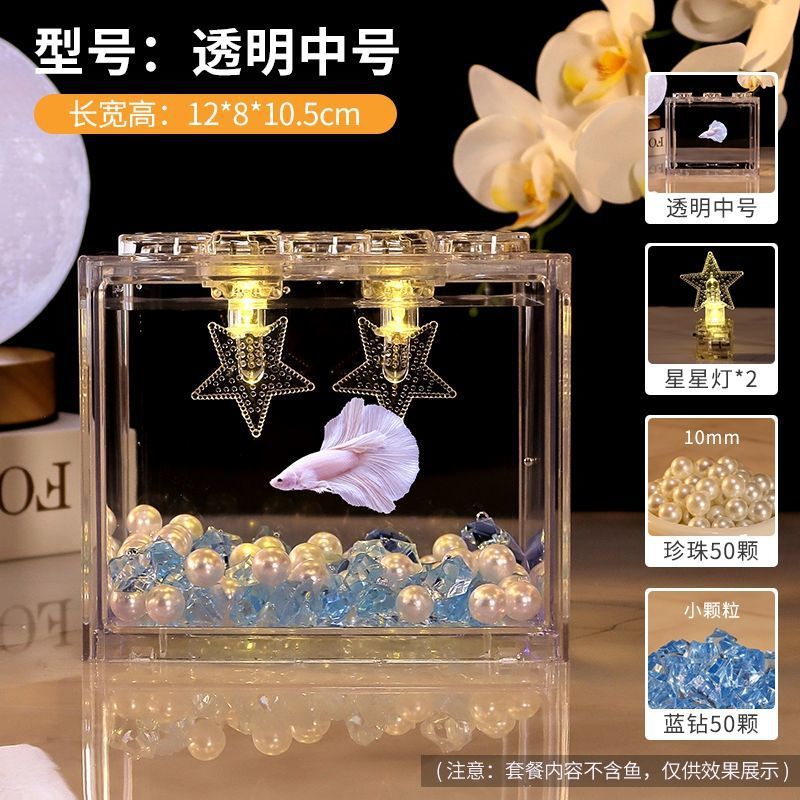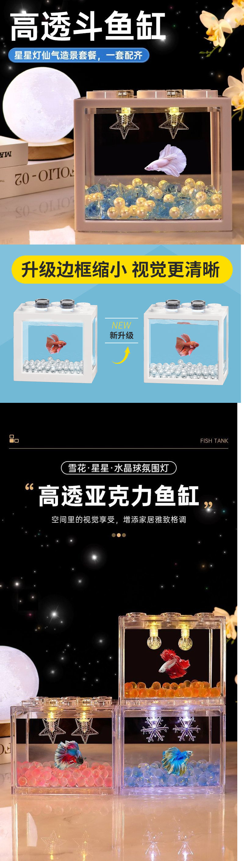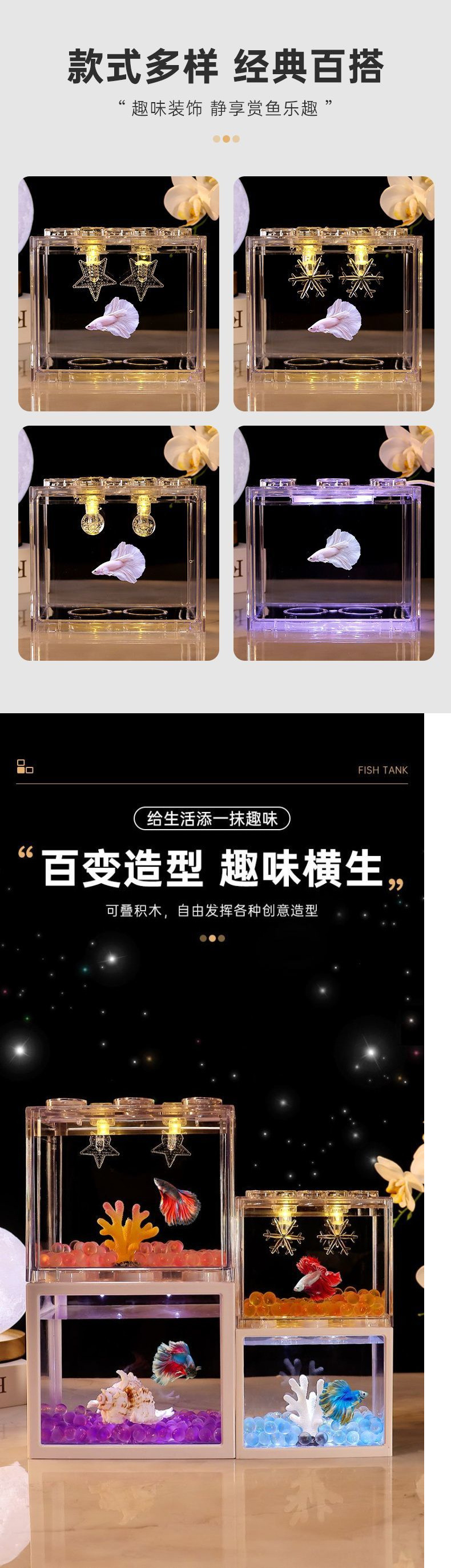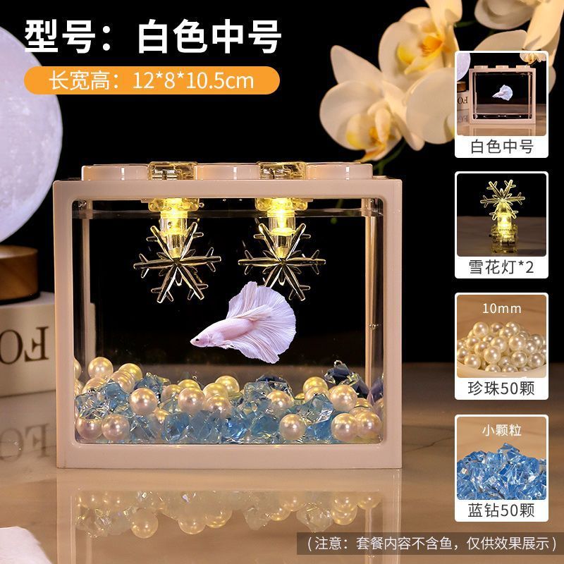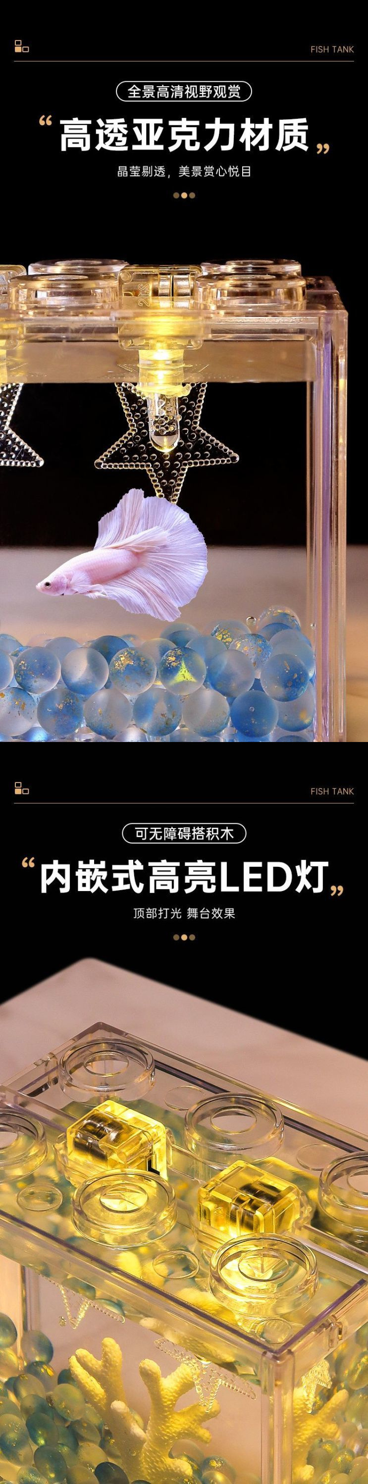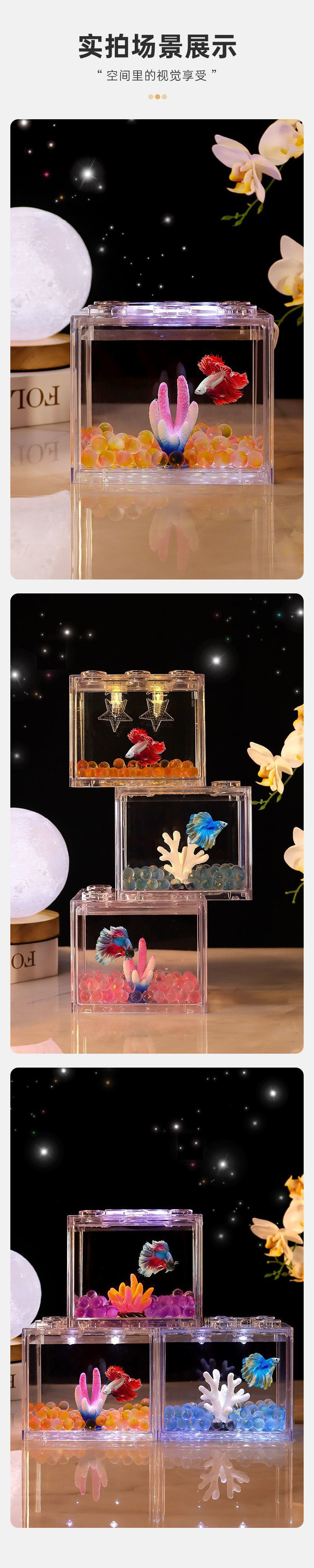 해파리 특수 탱크 타이 두 물고기 HD 빌딩 블록 박스 홈 작은 테이블 사무실 조경 라이트 마이크로 조경 생태학스토어 가기