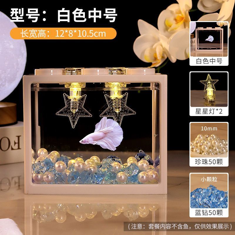해파리 특수 탱크 타이 두 물고기 HD 빌딩 블록 박스 홈 작은 테이블 사무실 조경 라이트 마이크로 조경 생태학