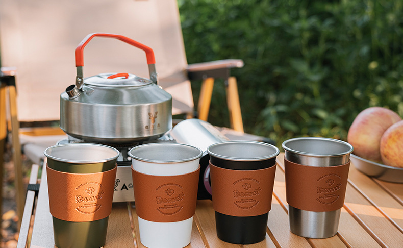 야외 캠핑 커피 컵 식품 학년 304 스테인레스 스틸 컵 피크닉 단열 방지 티 컵 캠핑 세트스토어 가기
