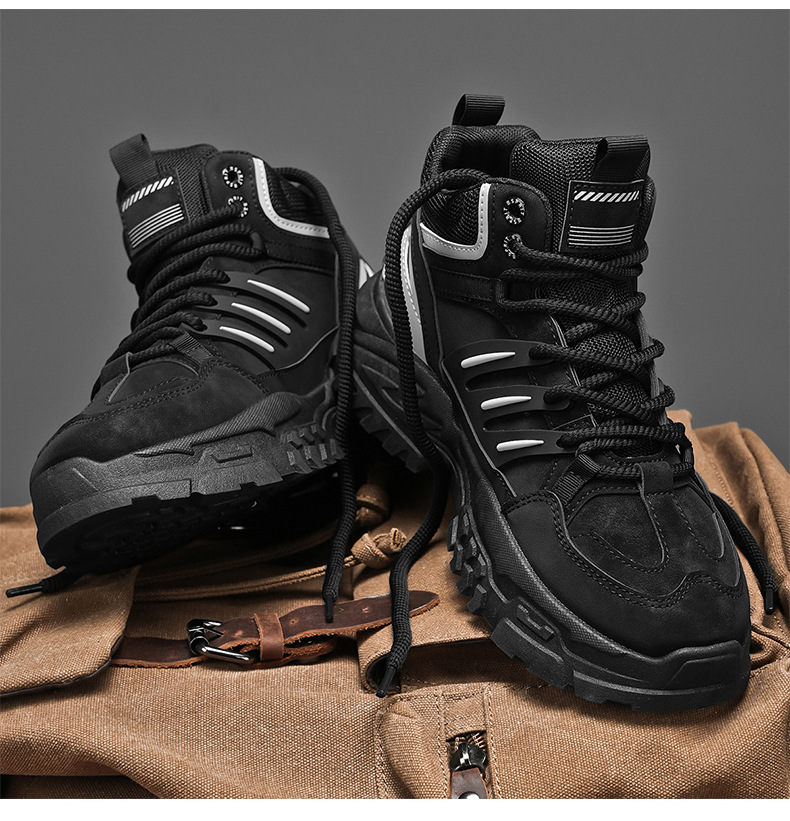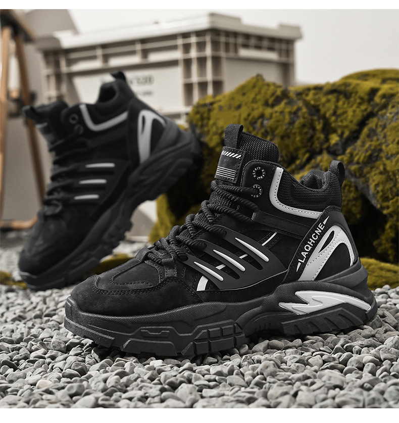 겨울 새로운 노동 보호 작업을위한 남성 신발 방수 미끄럼 방지 두꺼운 바닥 증가 야외 스포츠 등산 캐주얼 따뜻한 신발