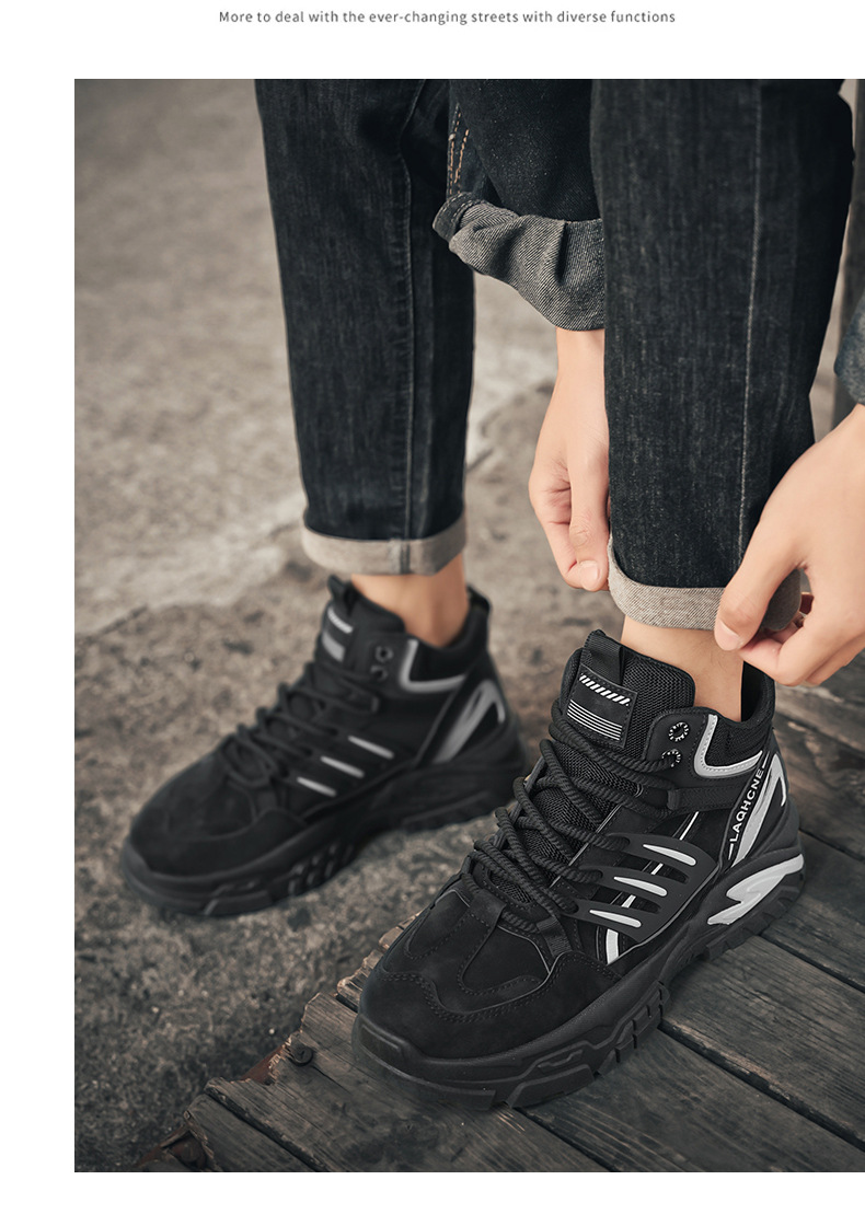 겨울 새로운 노동 보호 작업을위한 남성 신발 방수 미끄럼 방지 두꺼운 바닥 증가 야외 스포츠 등산 캐주얼 따뜻한 신발스토어 가기