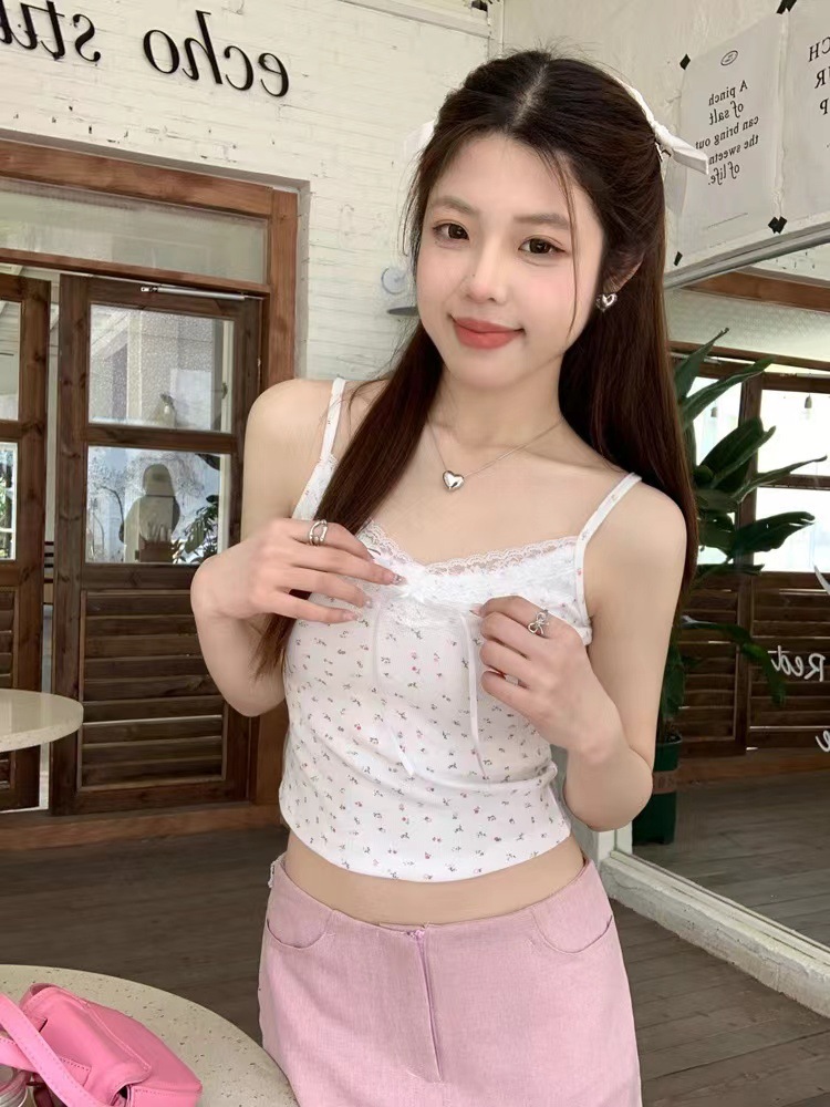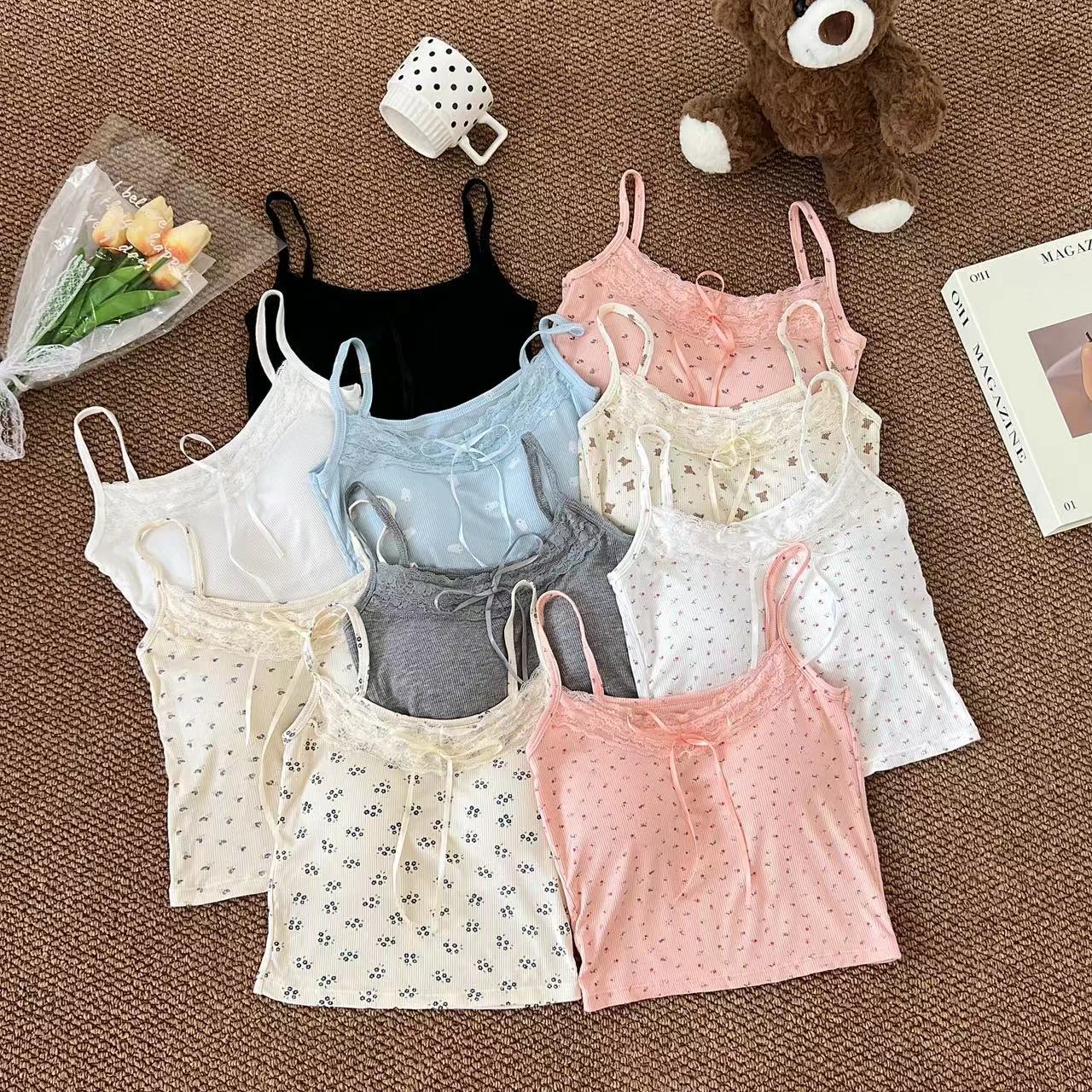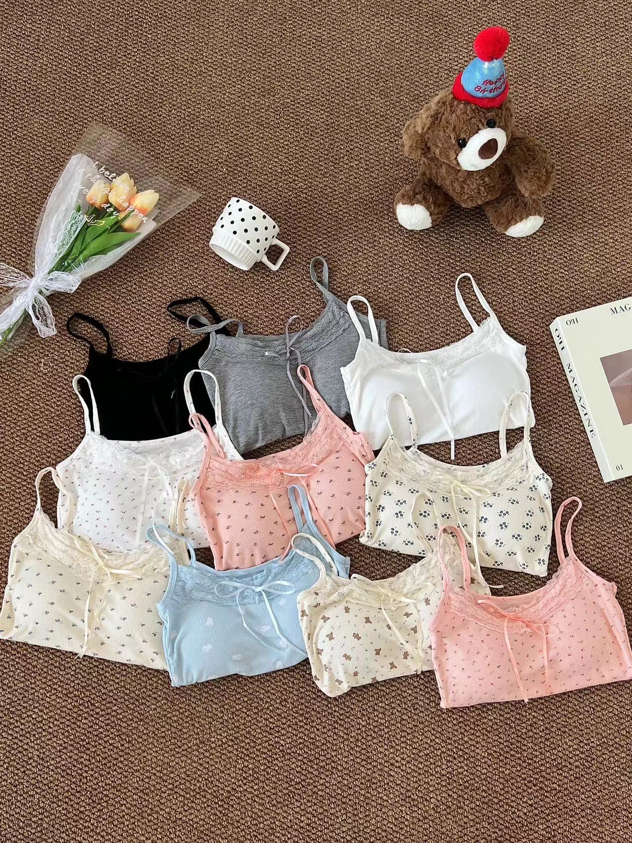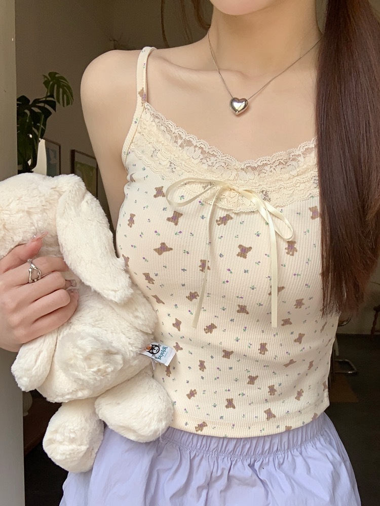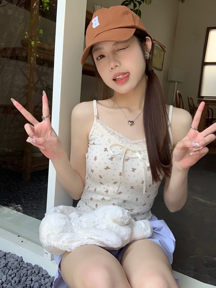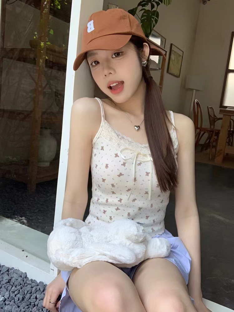 H342 # 달콤한 꽃 곰 카미솔 여성의 여름 스파이스 소녀 레이스 내외형 슬림 핏스토어 가기
