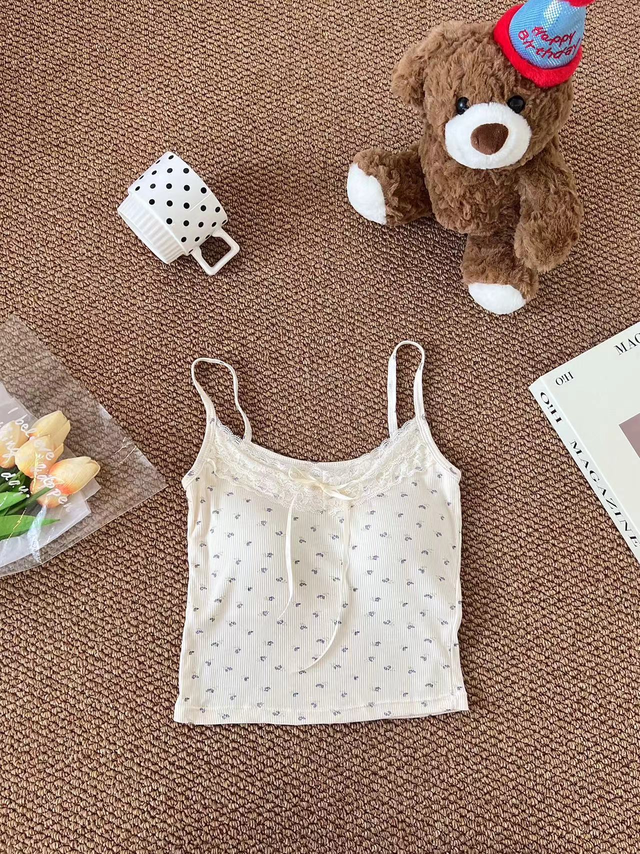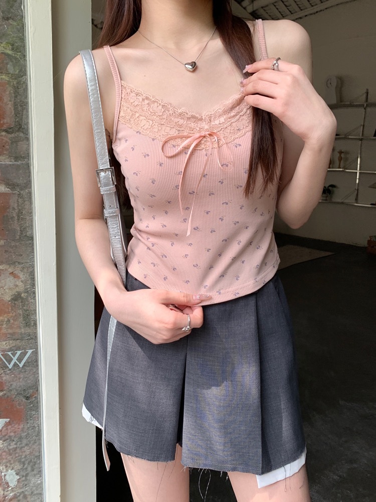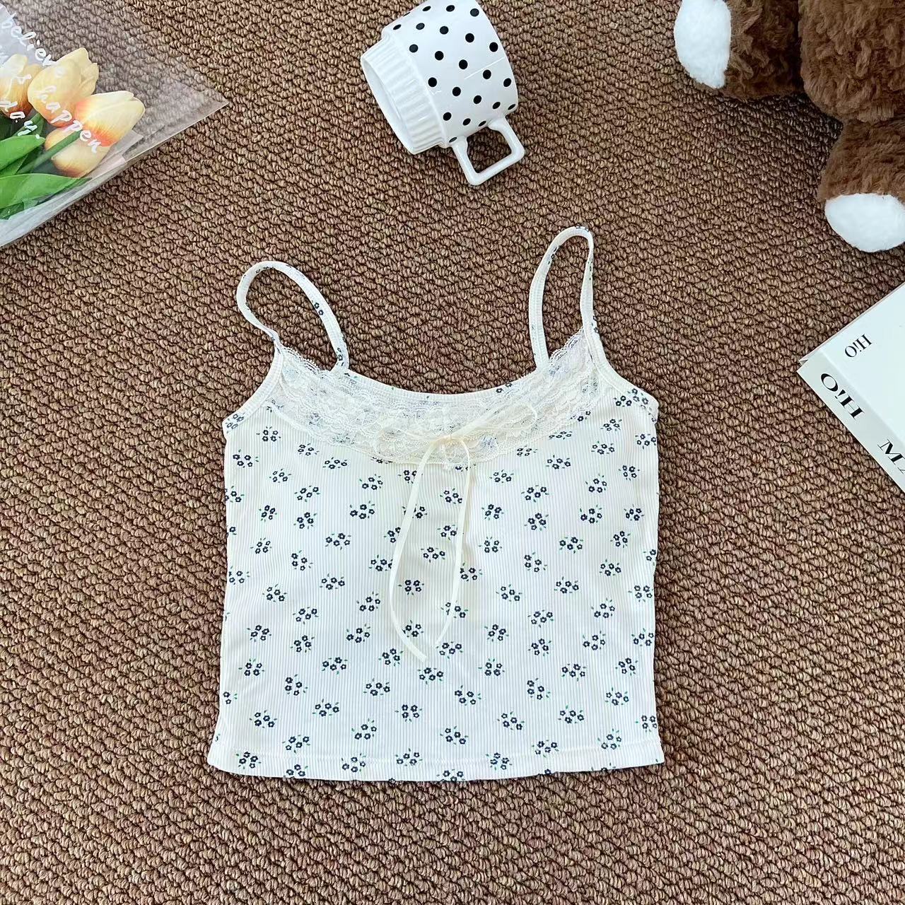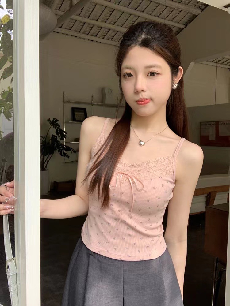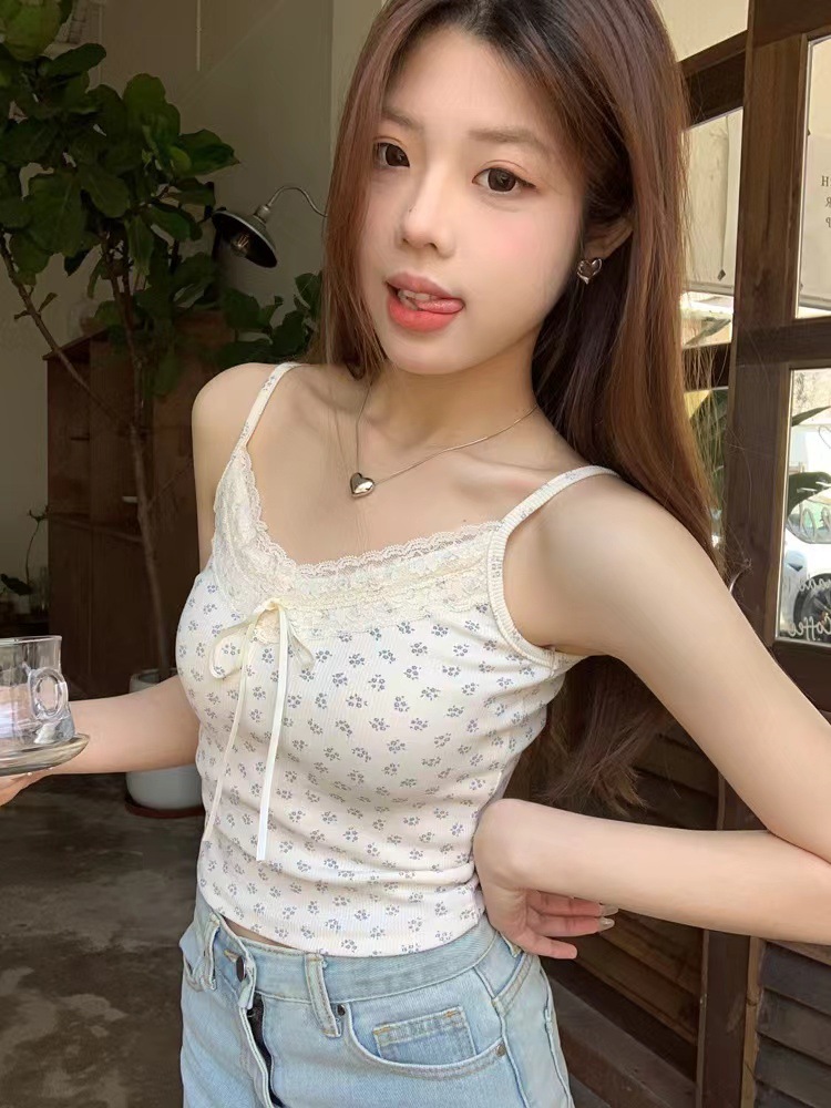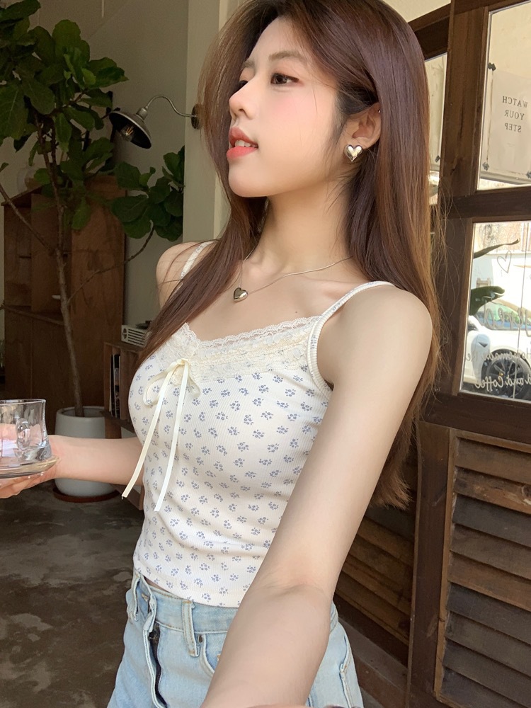 H342 # 달콤한 꽃 곰 카미솔 여성의 여름 스파이스 소녀 레이스 내외형 슬림 핏스토어 가기