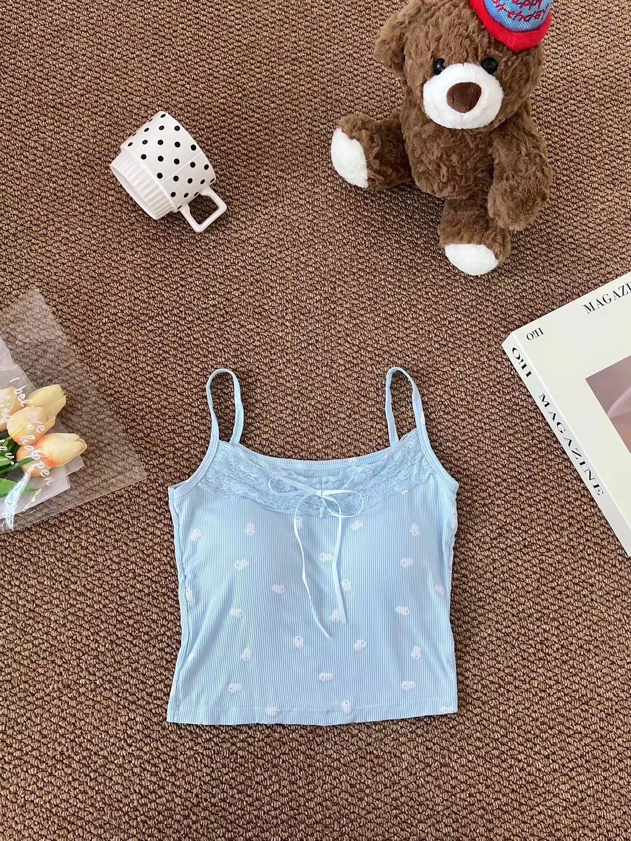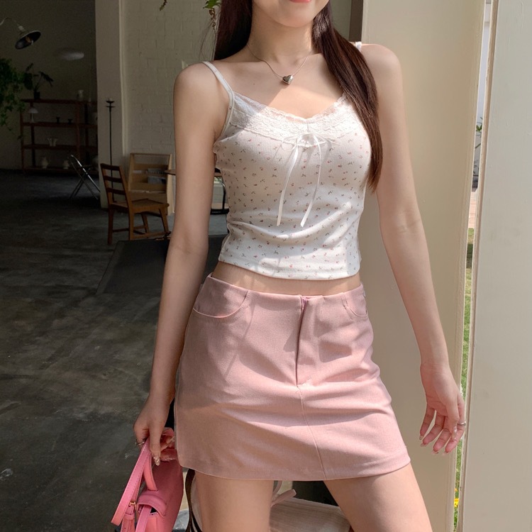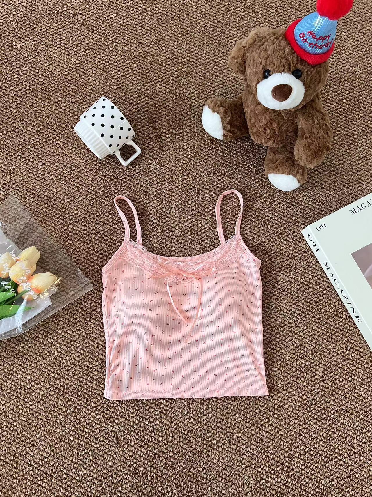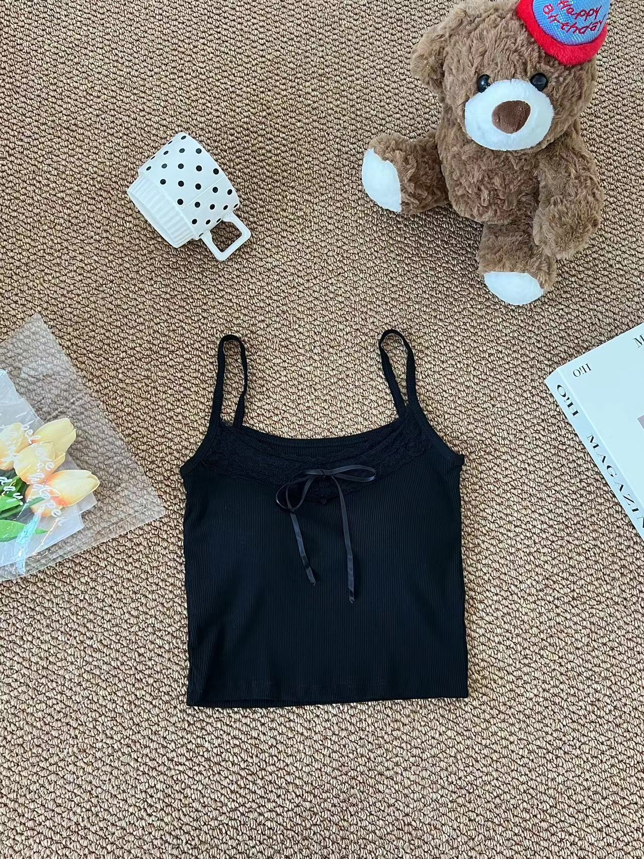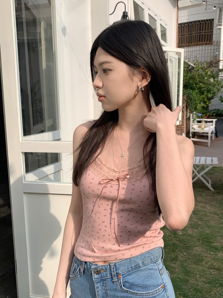 H342 # 달콤한 꽃 곰 카미솔 여성의 여름 스파이스 소녀 레이스 내외형 슬림 핏스토어 가기