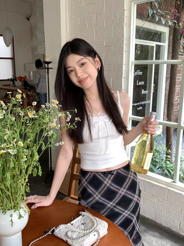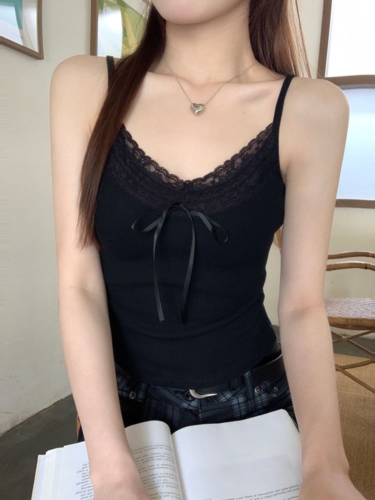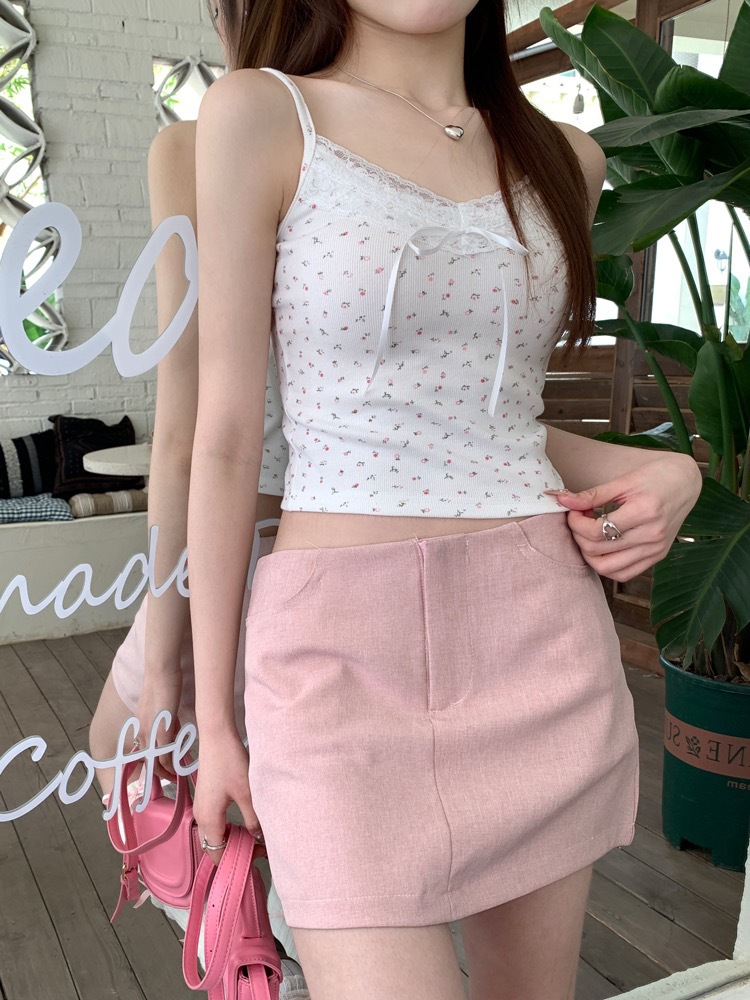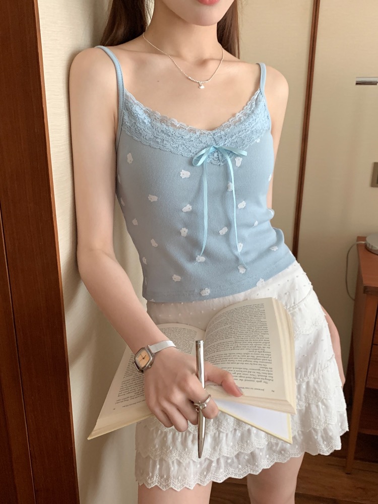H342 # 달콤한 꽃 곰 카미솔 여성의 여름 스파이스 소녀 레이스 내외형 슬림 핏