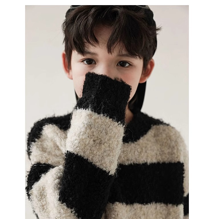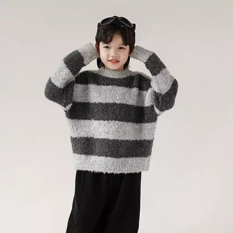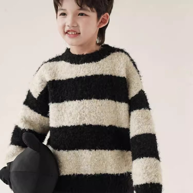 남학생 서양식 스웨터 레트로 니트 스웨터 2024 가을과 겨울 새로운 스타일 중대형 어린이 따뜻한 둥근 목베이스 셔츠 탑스토어 가기