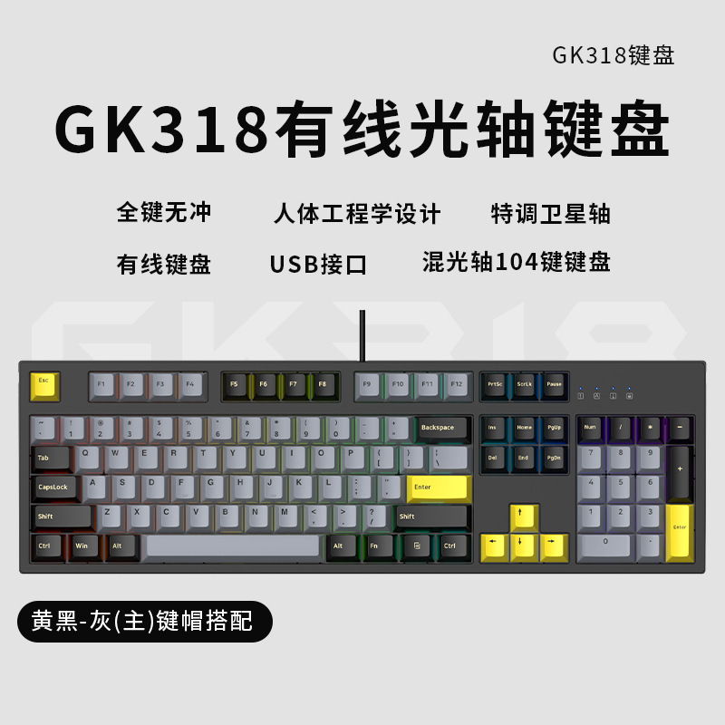 국경 간 K318 광축 바늘 기계식 키보드 플러그인 축 e 스포츠 게임 인터넷 카페 빨 수있는 PBT 3 색 키보드스토어 가기