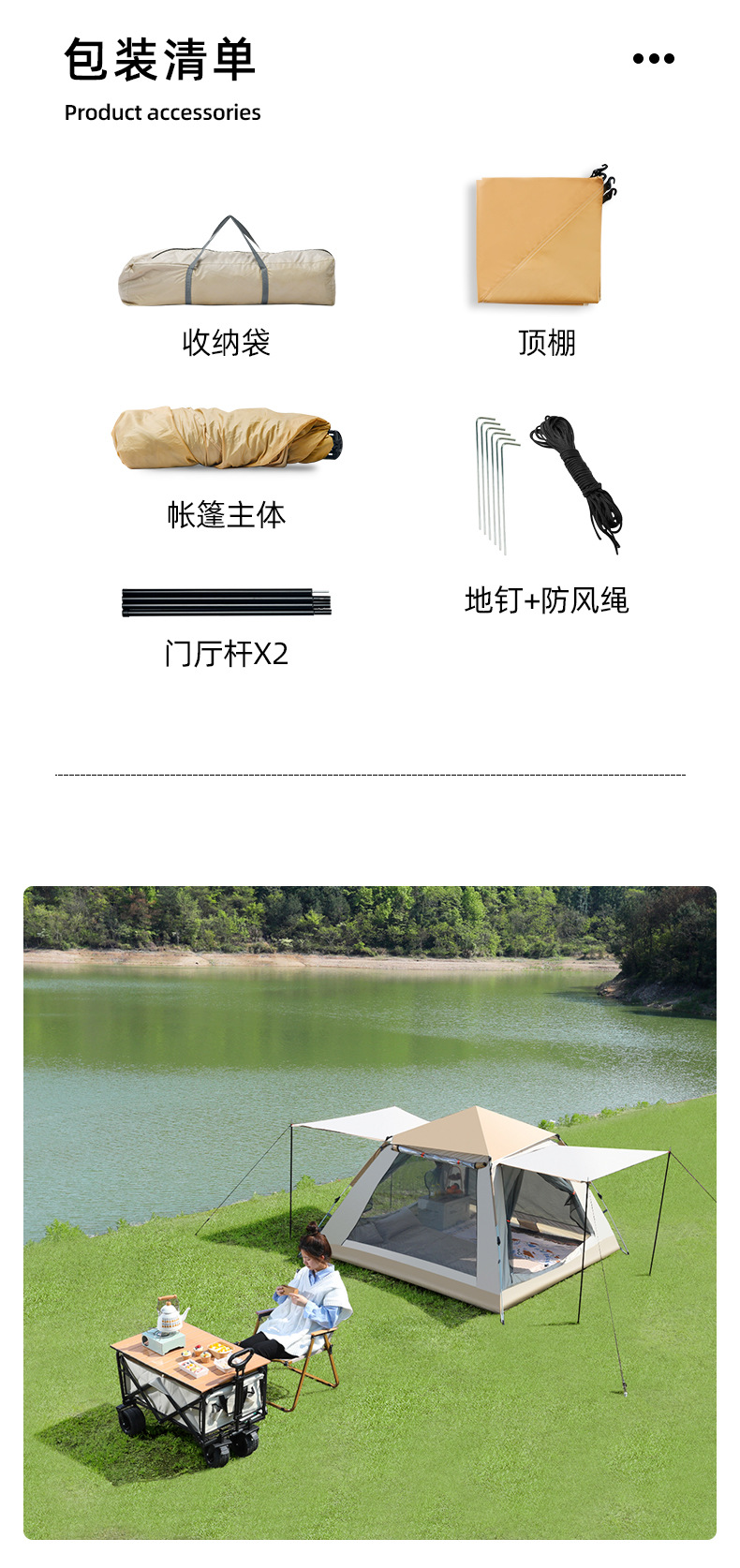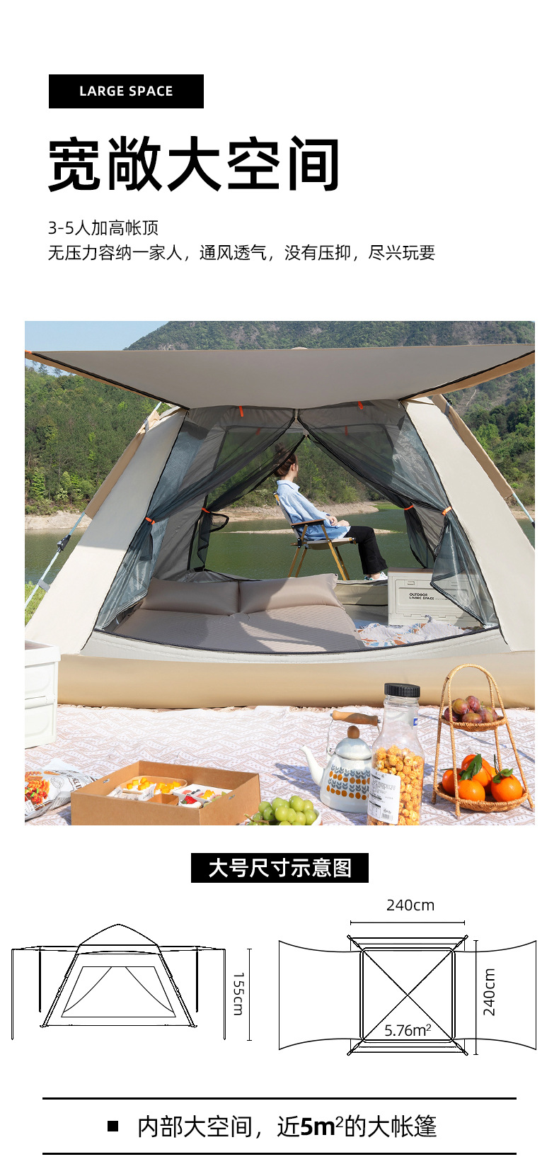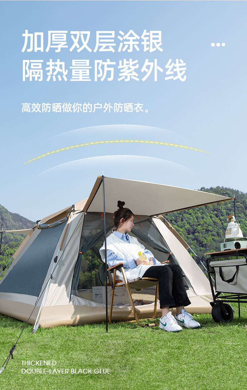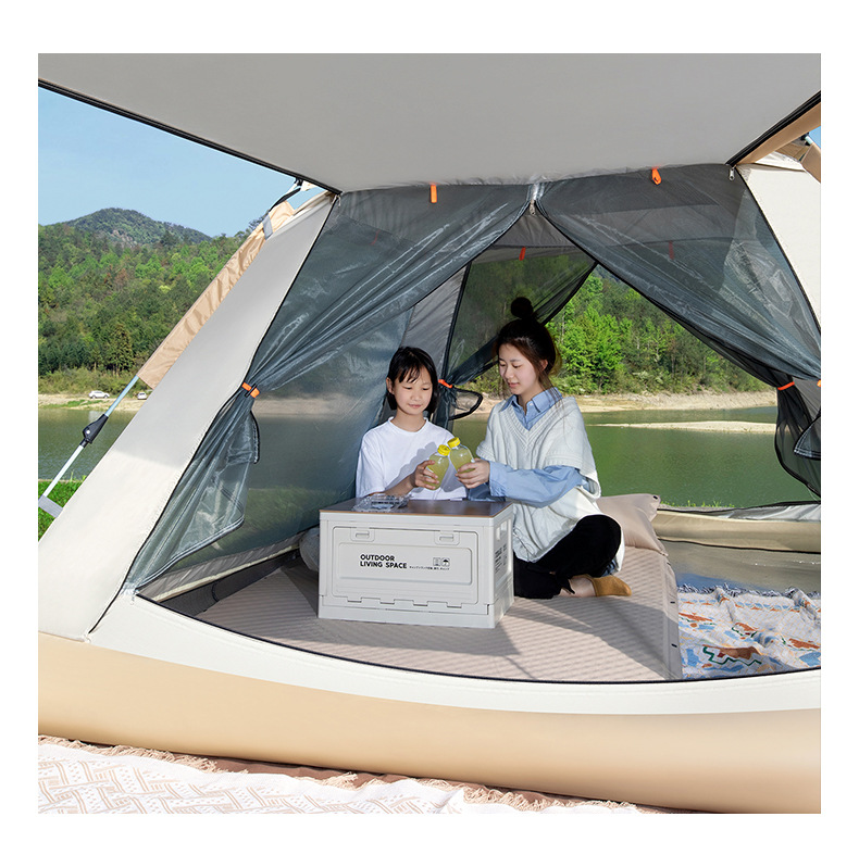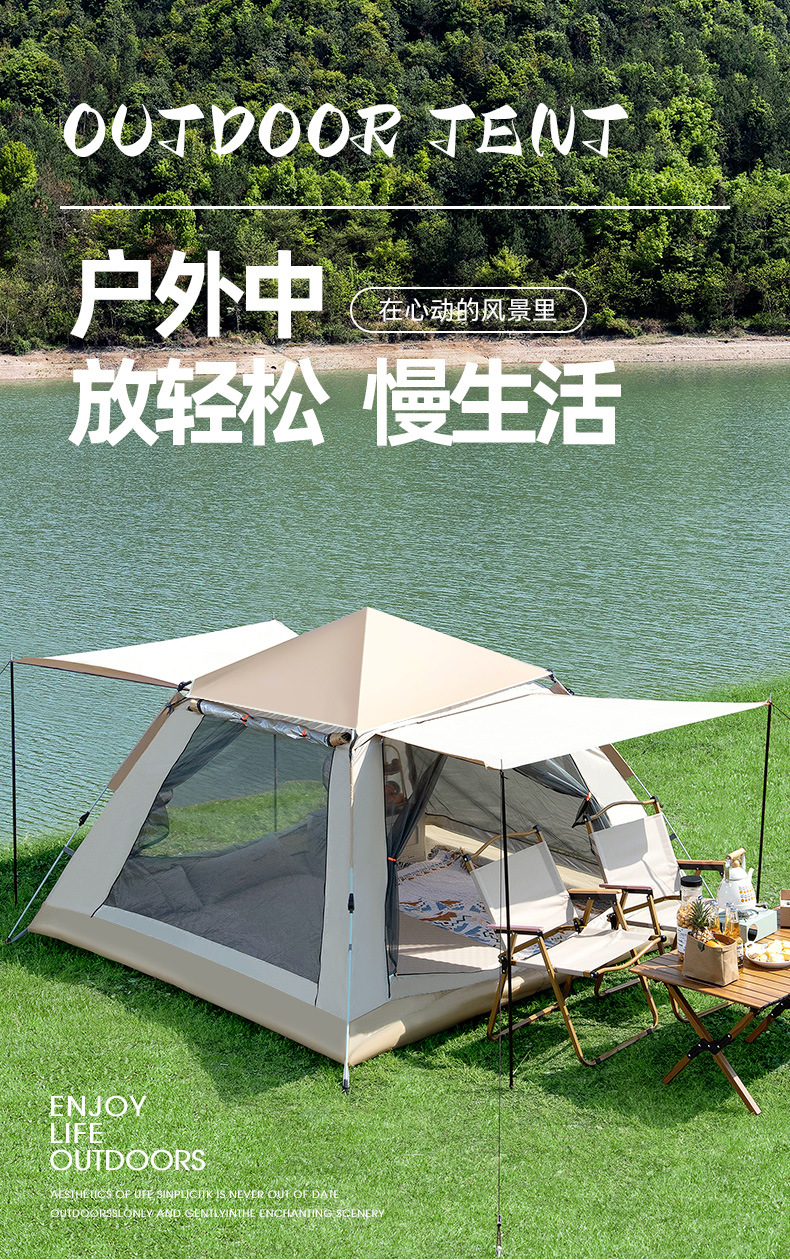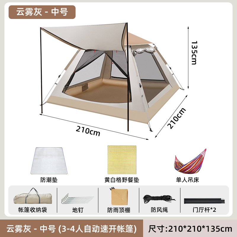 재고 완전 자동 텐트 퀵 오픈 휴대용 더블 비치 텐트 차양 방비 통기성 야외 캠핑 텐트 3-4 명