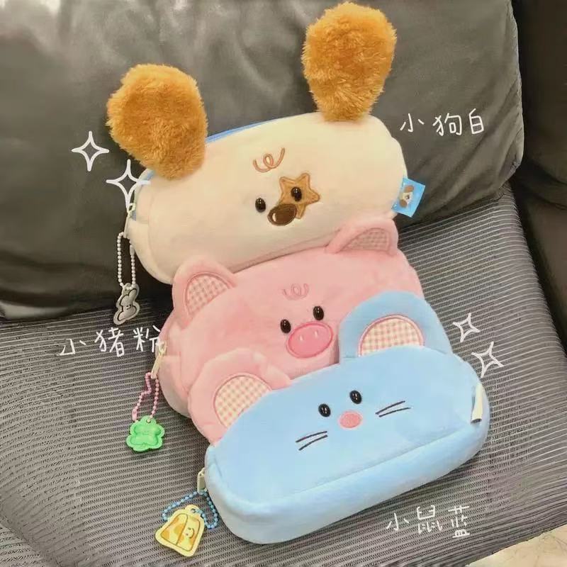 새로운 Ins 수 놓은 귀여운 봉제 만화 동물 연필 케이스 대용량 저장 가방 봉제 화장품 가방 휴대용