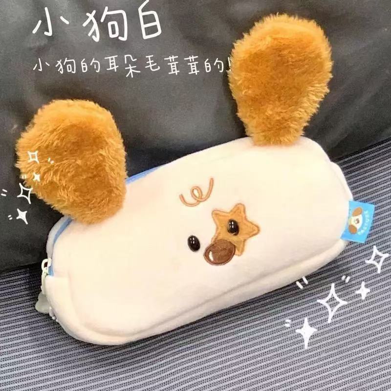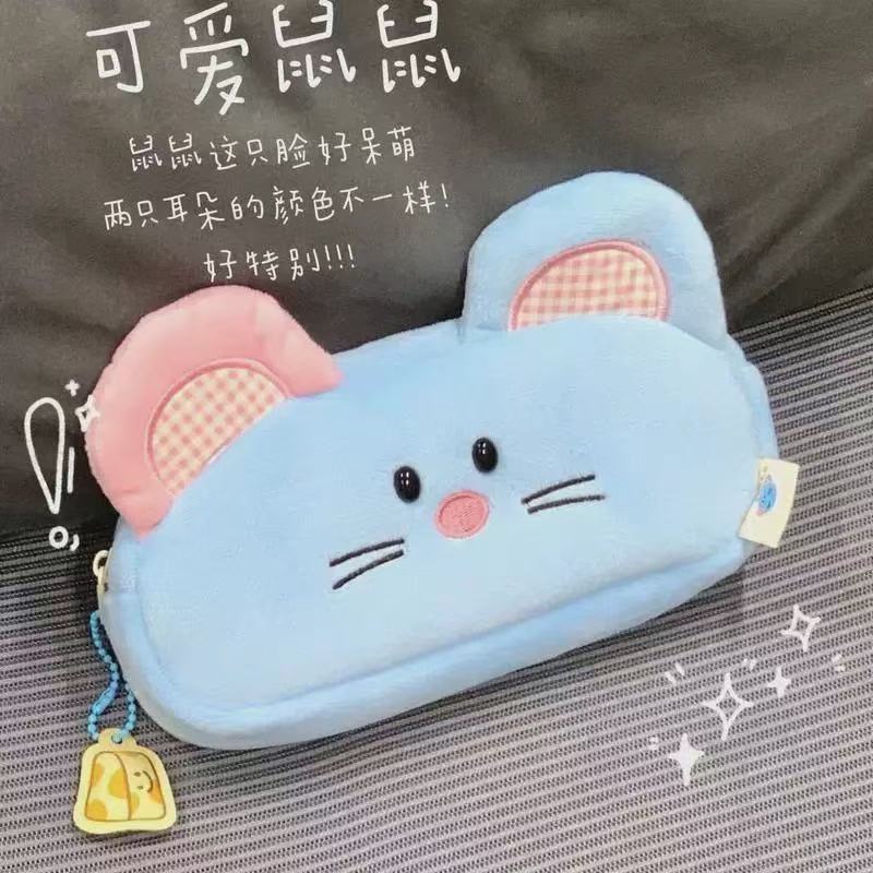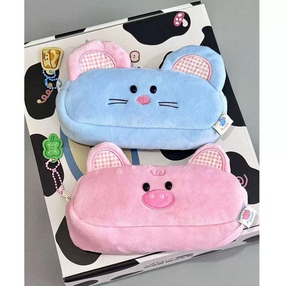 새로운 Ins 수 놓은 귀여운 봉제 만화 동물 연필 케이스 대용량 저장 가방 봉제 화장품 가방 휴대용스토어 가기