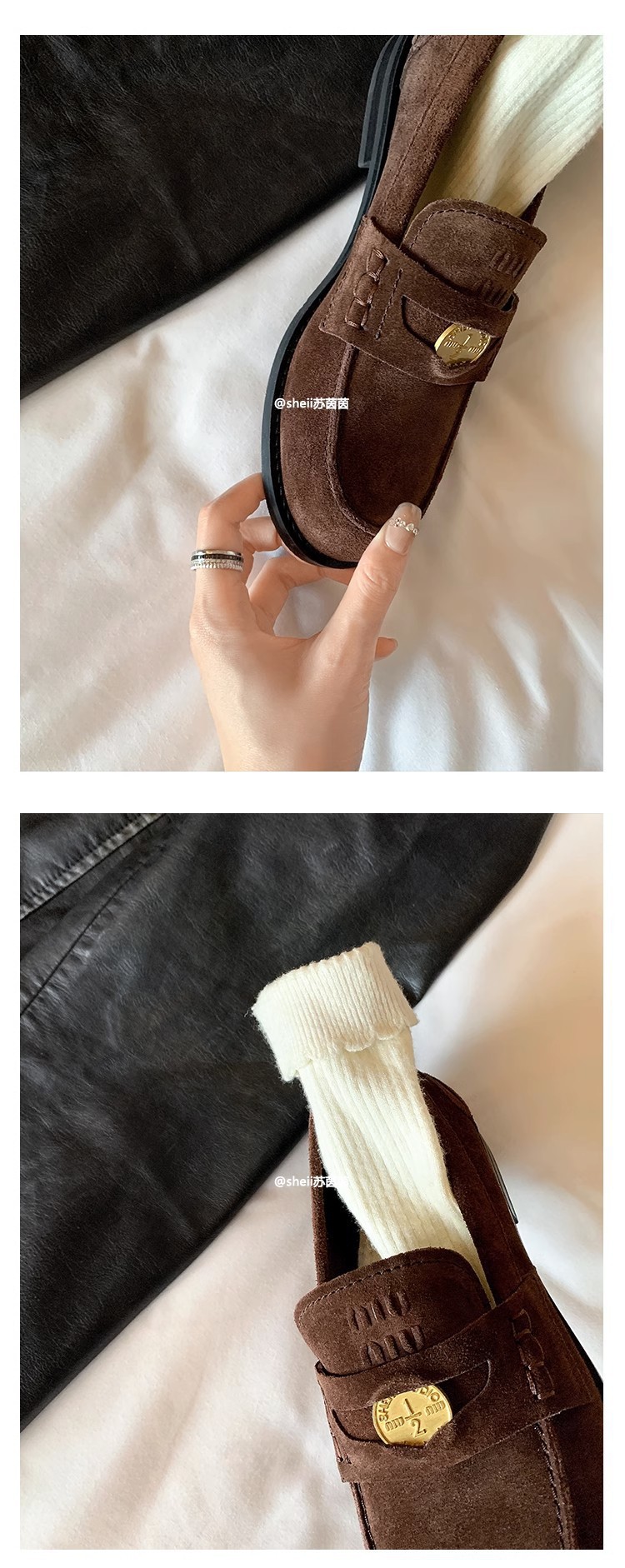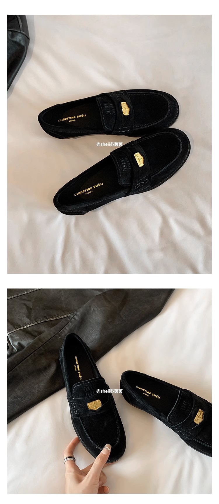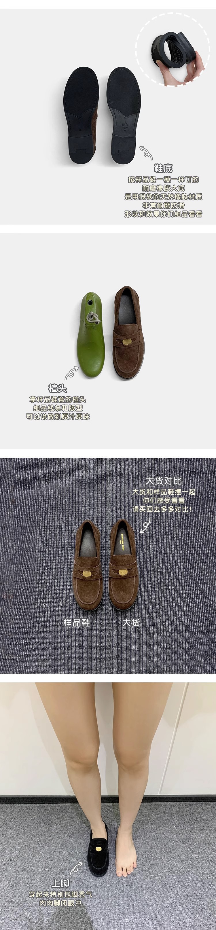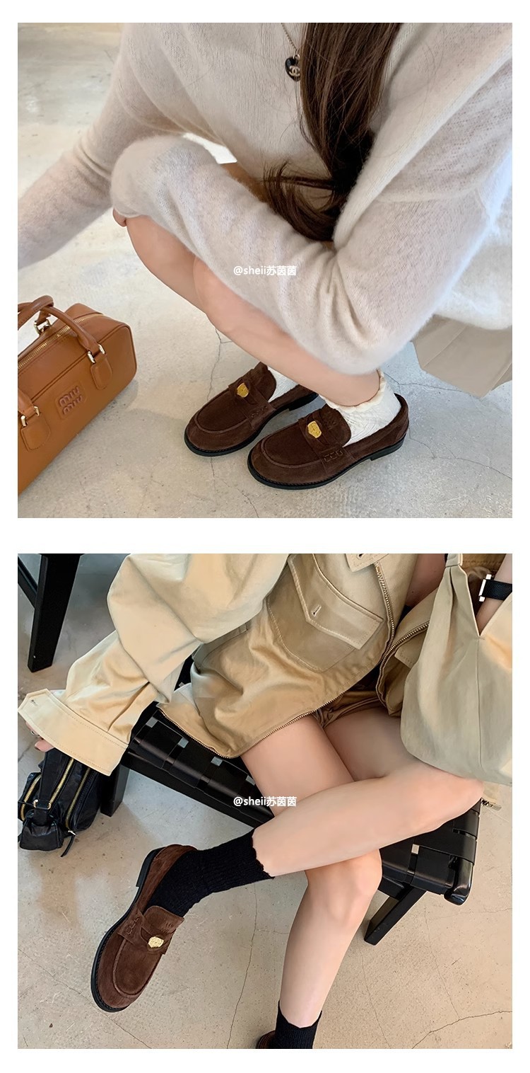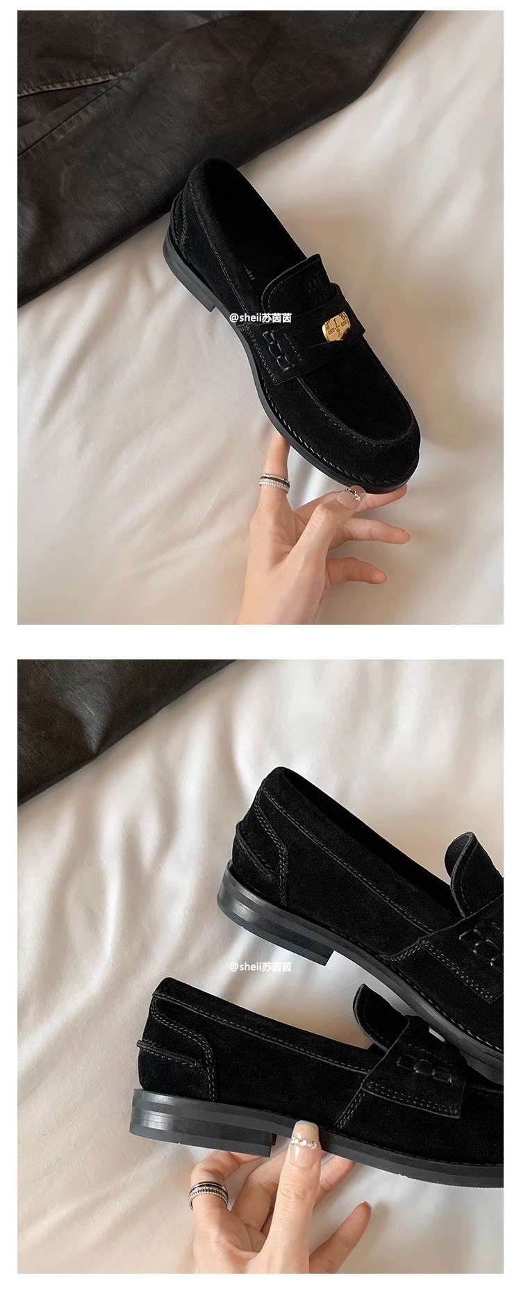 소가죽 버전 ~ Xingshengda 신발 miu의 작은 금화 정품 가죽 스웨이드 슬립온 로퍼 여성 작은 가죽 신발 가을