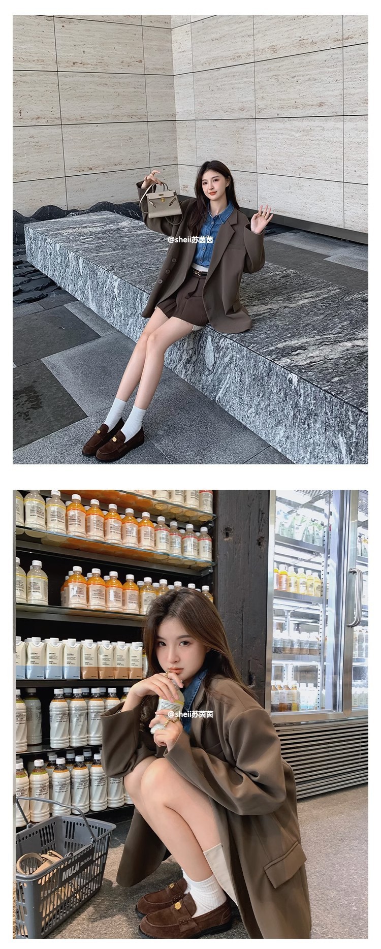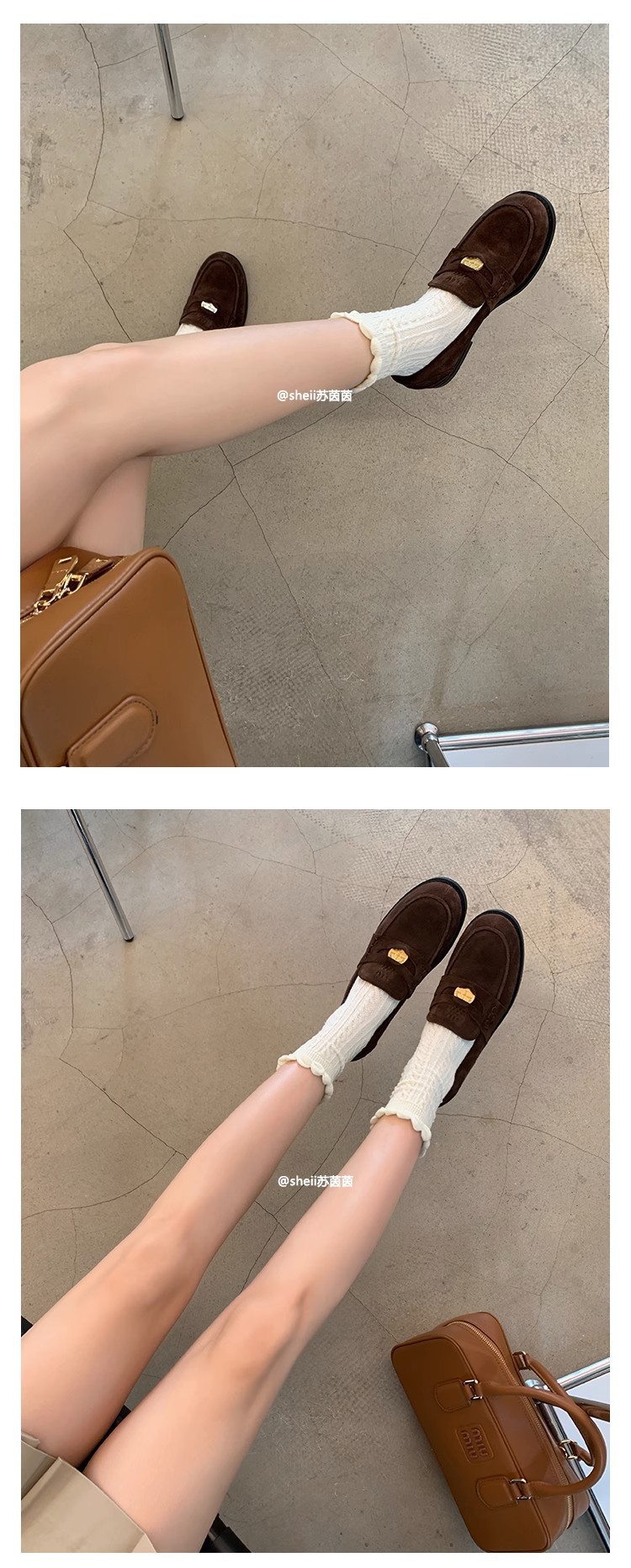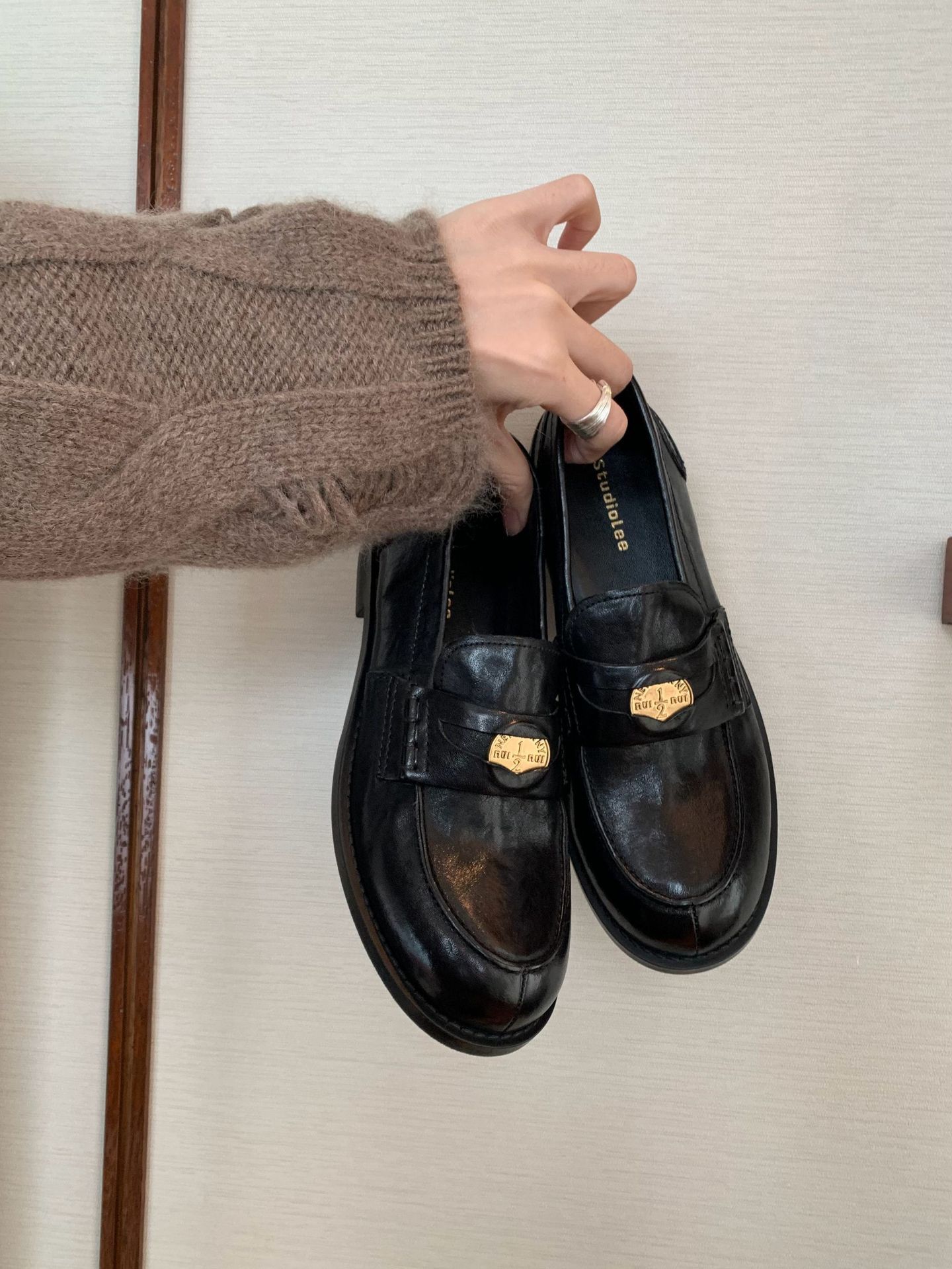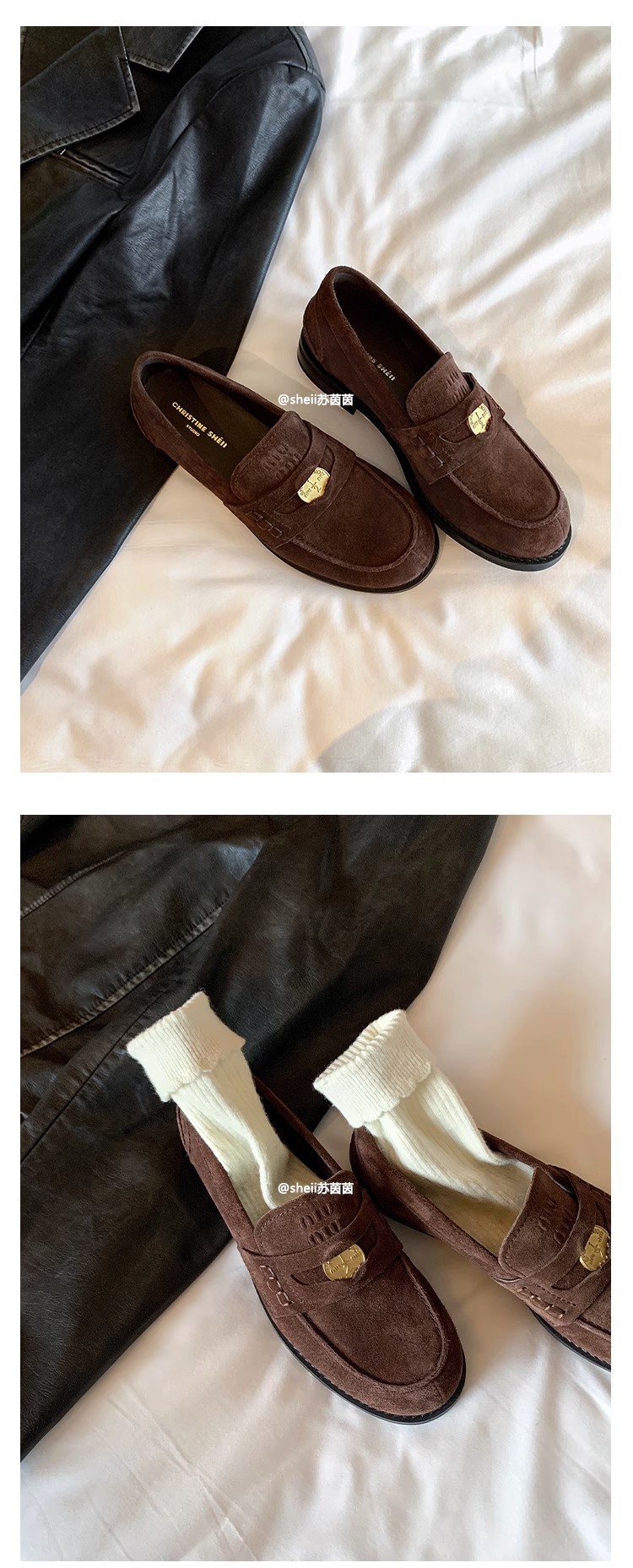 소가죽 버전 ~ Xingshengda 신발 miu의 작은 금화 정품 가죽 스웨이드 슬립온 로퍼 여성 작은 가죽 신발 가을