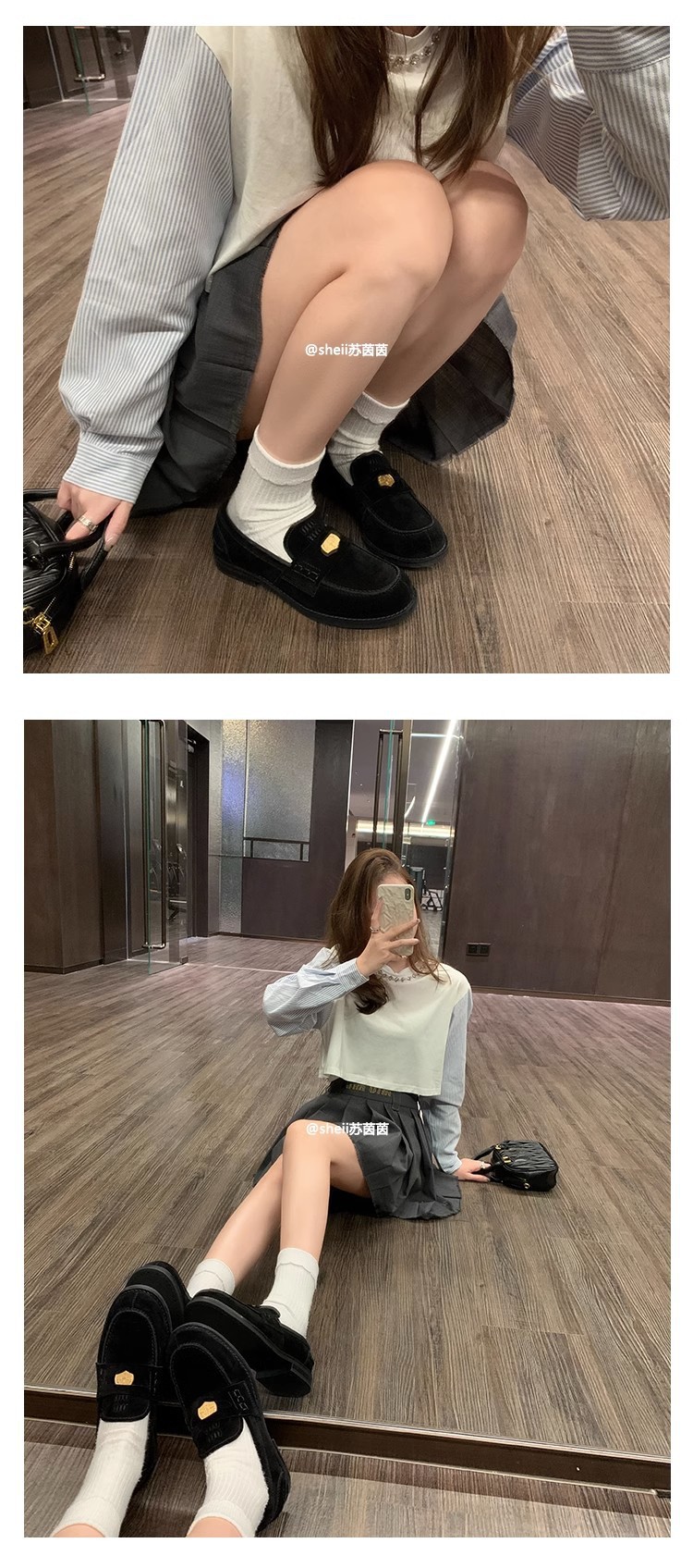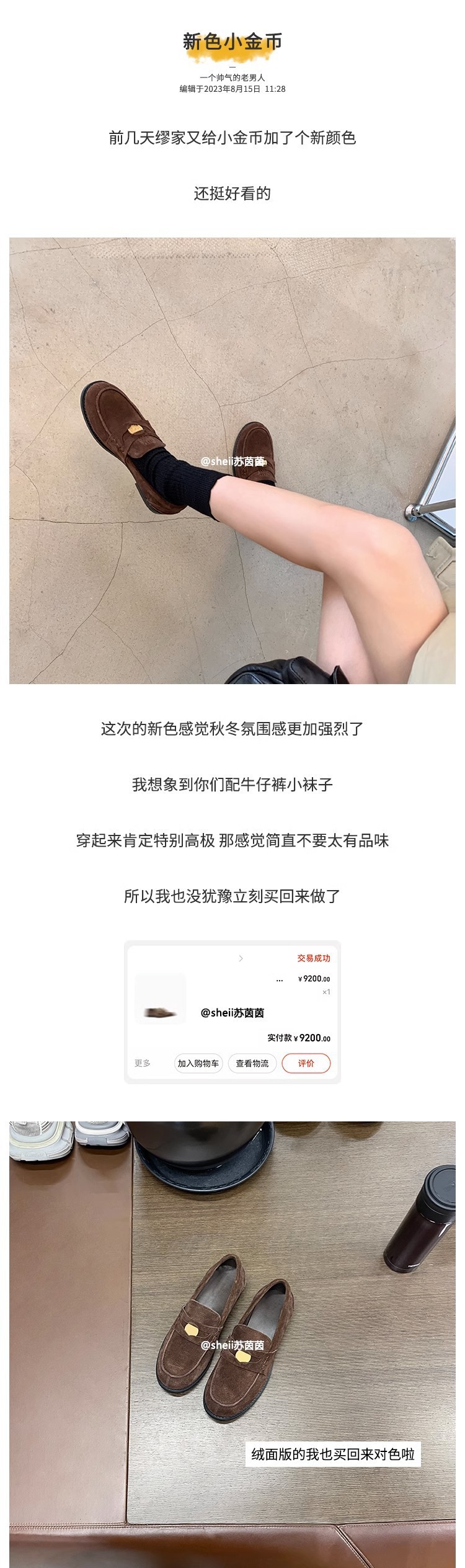 소가죽 버전 ~ Xingshengda 신발 miu의 작은 금화 정품 가죽 스웨이드 슬립온 로퍼 여성 작은 가죽 신발 가을스토어 가기