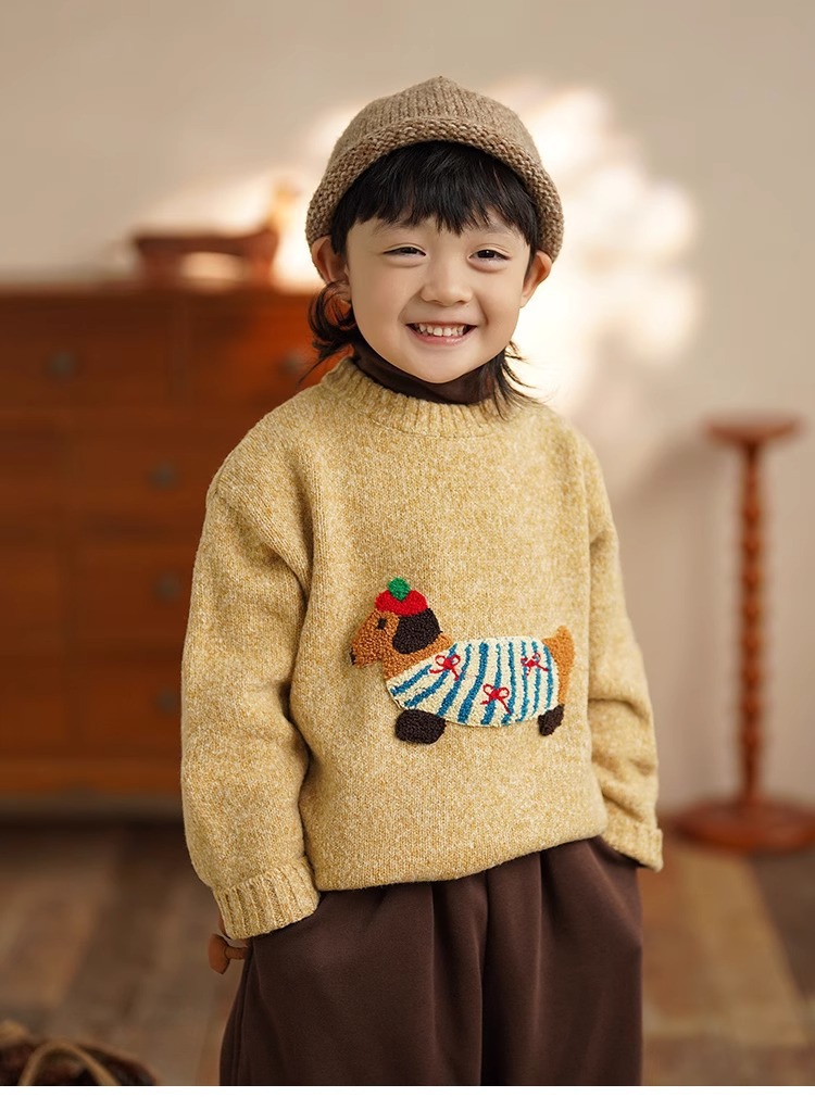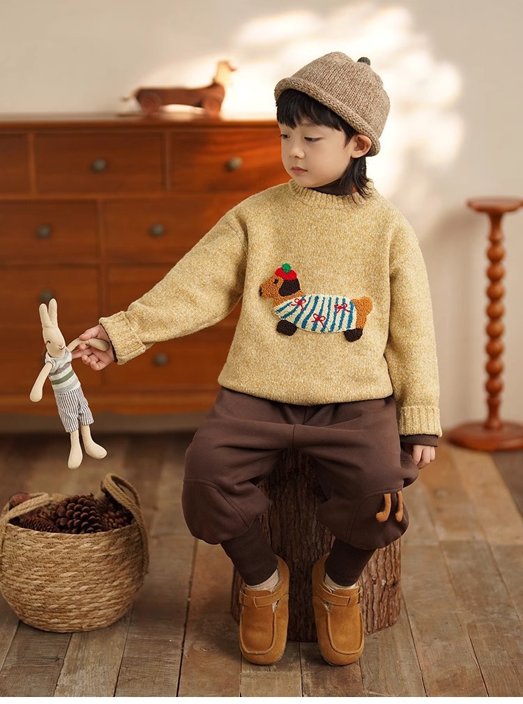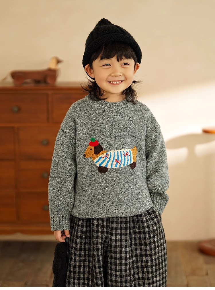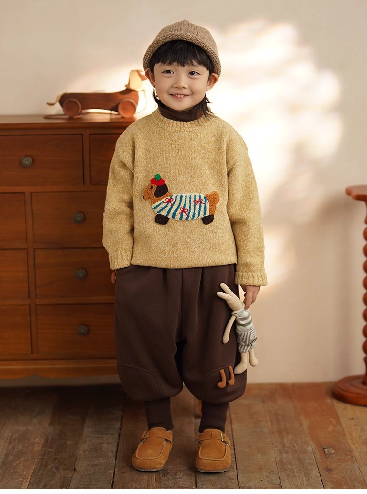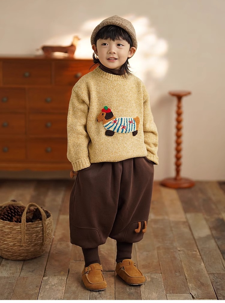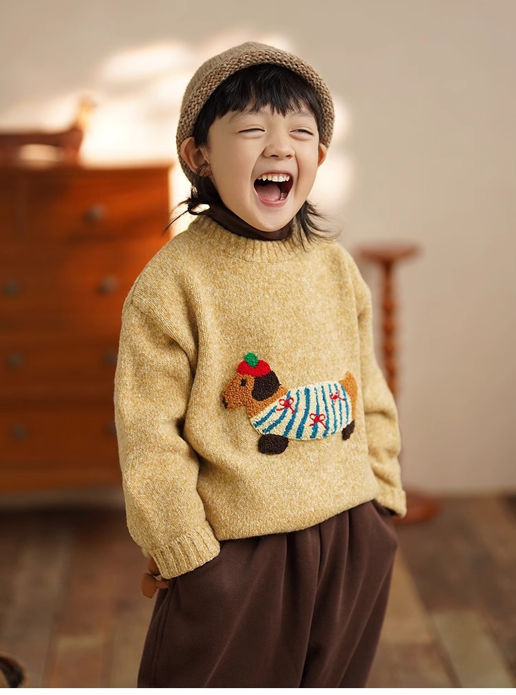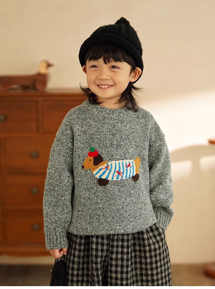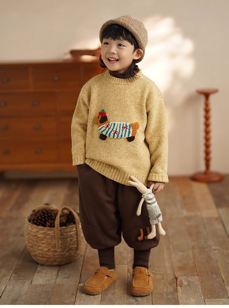 소년 만화 스웨터 가을과 겨울 새로운 어린이 따뜻한 스웨터 탑 아기 개 자수 베이스 스웨터
