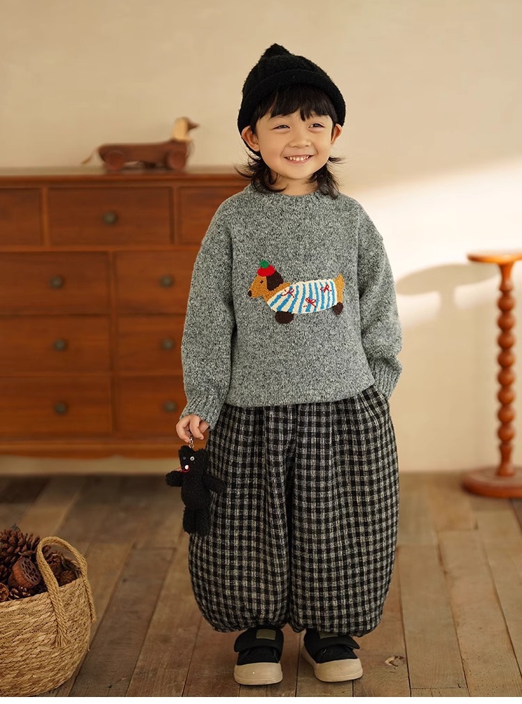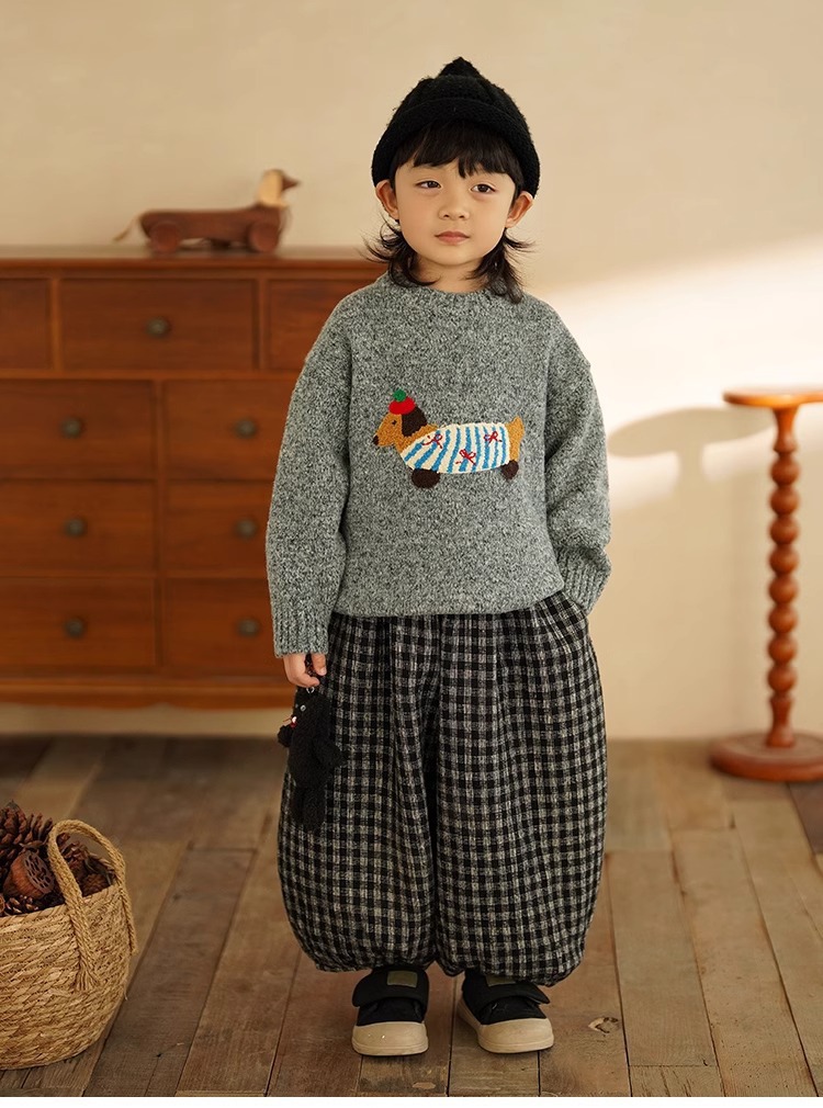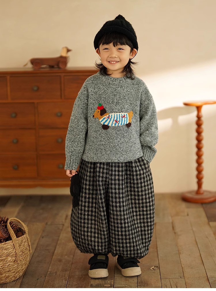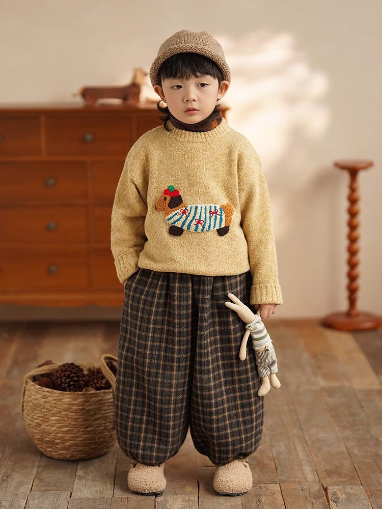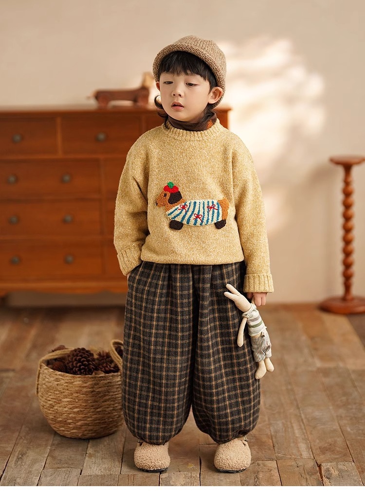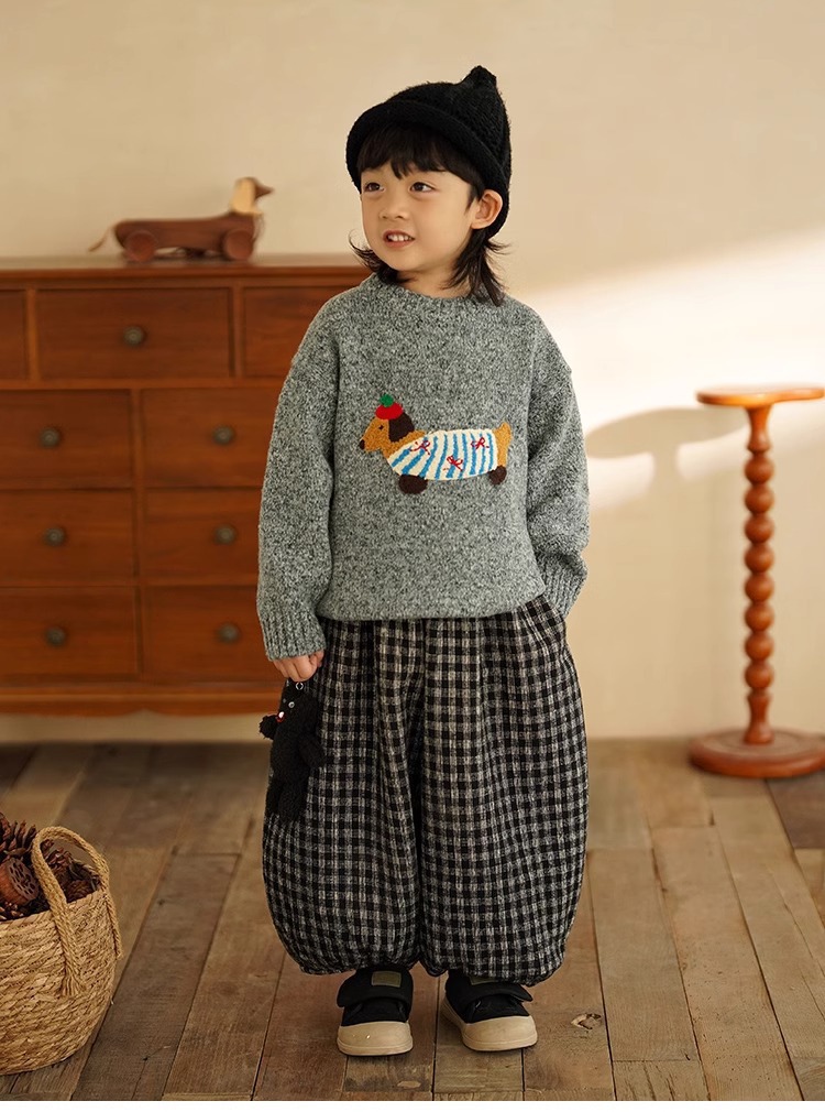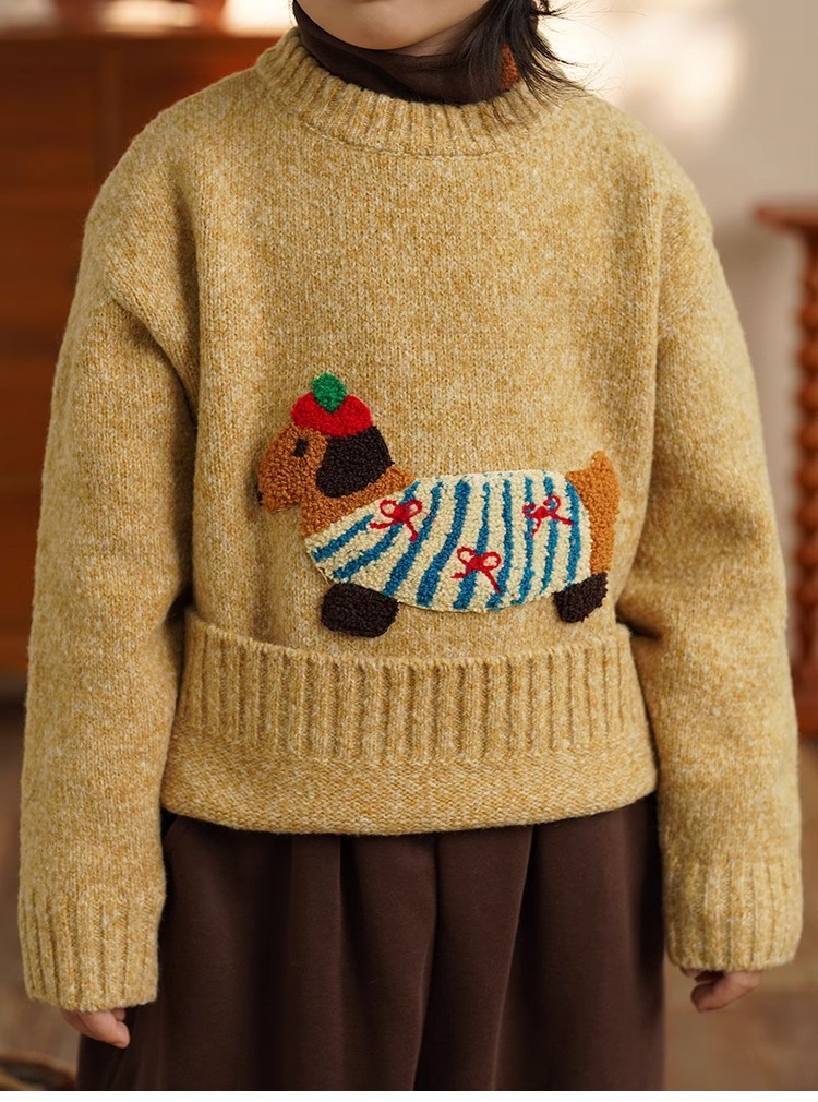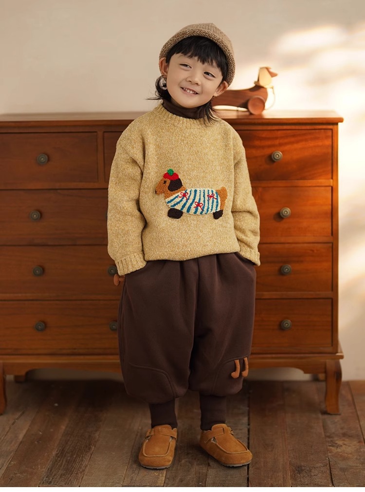 소년 만화 스웨터 가을과 겨울 새로운 어린이 따뜻한 스웨터 탑 아기 개 자수 베이스 스웨터