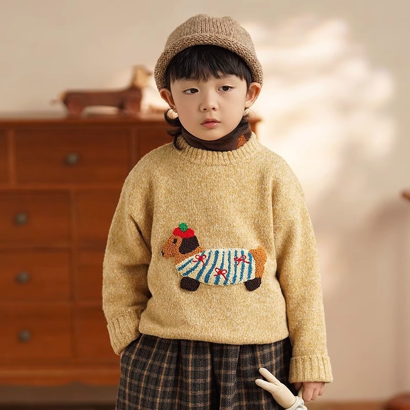 소년 만화 스웨터 가을과 겨울 새로운 어린이 따뜻한 스웨터 탑 아기 개 자수 베이스 스웨터스토어 가기