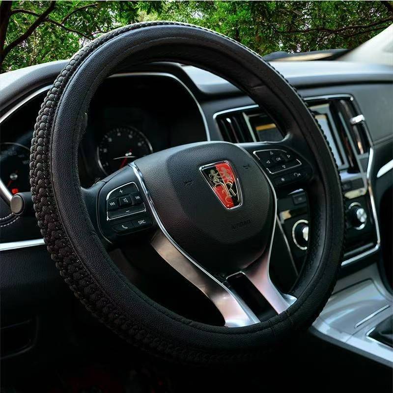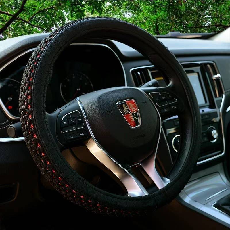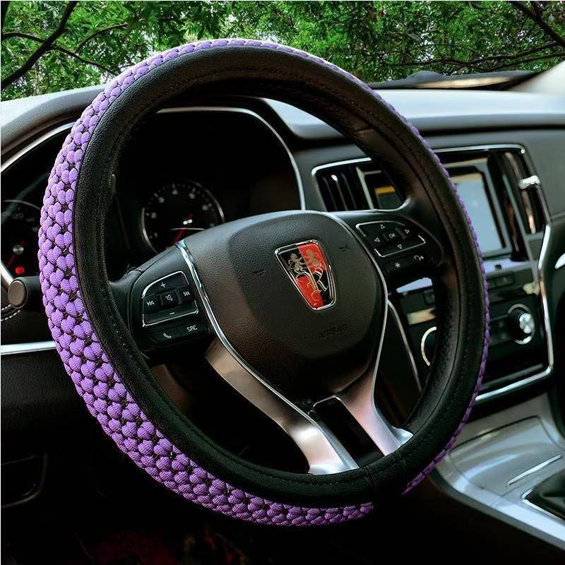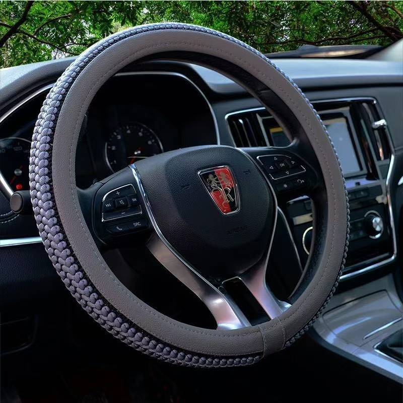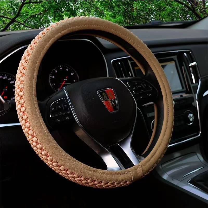 손으로 짠 스티어링 휠 커버 새로운 남성과 여성의 자동차 핸들 커버 사계절 보편적 인 통기성 땀 흡수성 아이스 실크 미끄럼 방지 커버 자동차