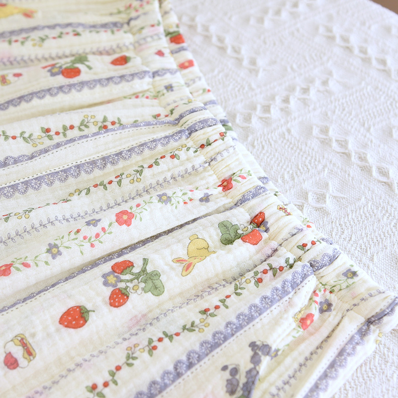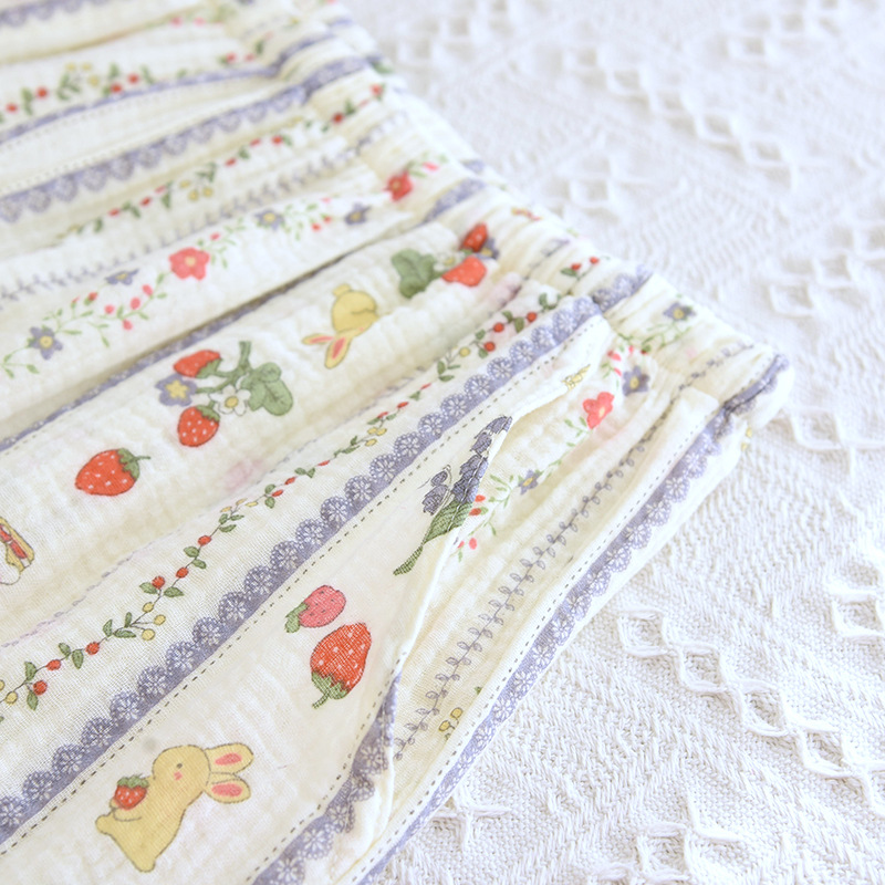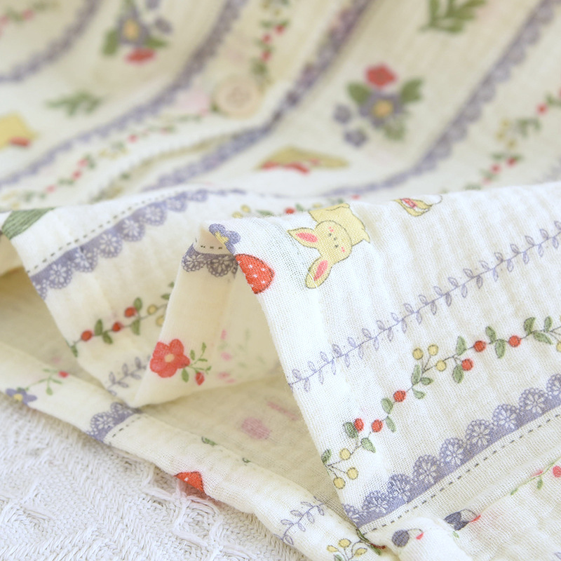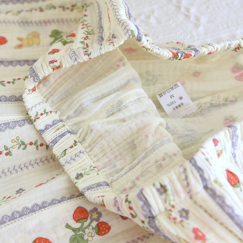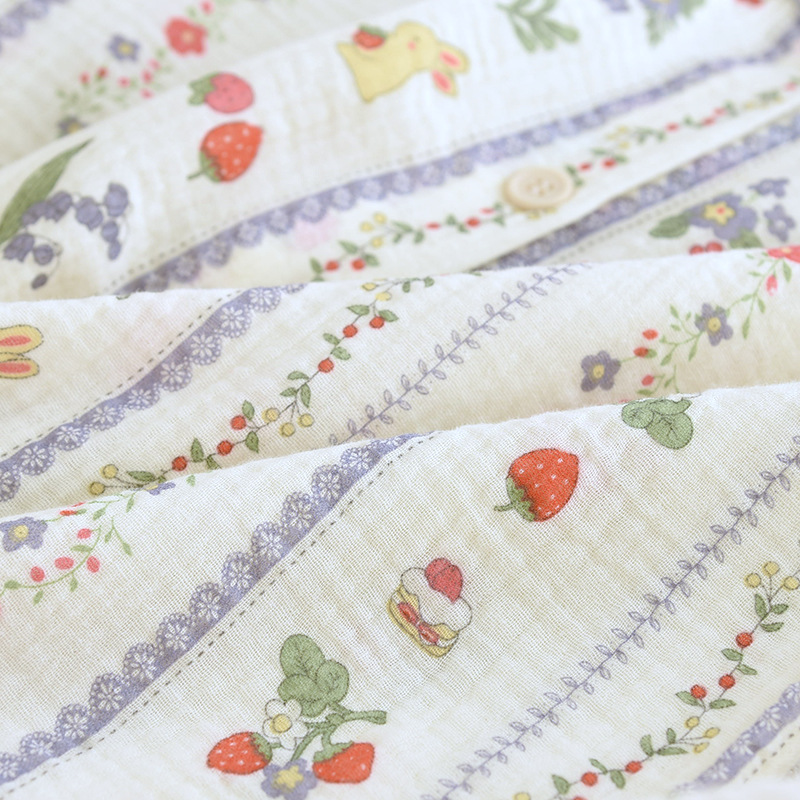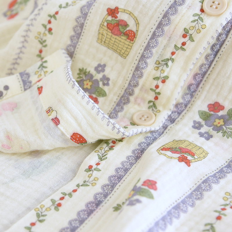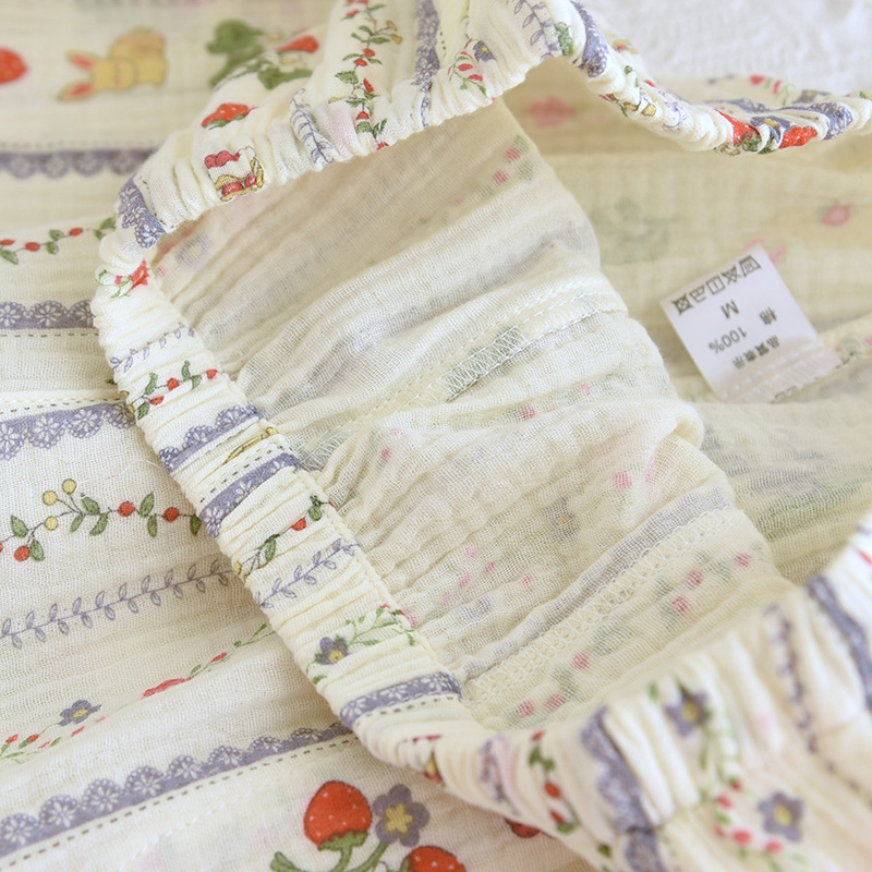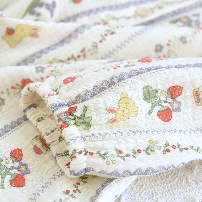 봄 여름 가을 파자마 여성 한국 스타일 신선한 간단한 만화 코튼 거즈 라운드 넥 만화 홈 옷 투피스 세트스토어 가기