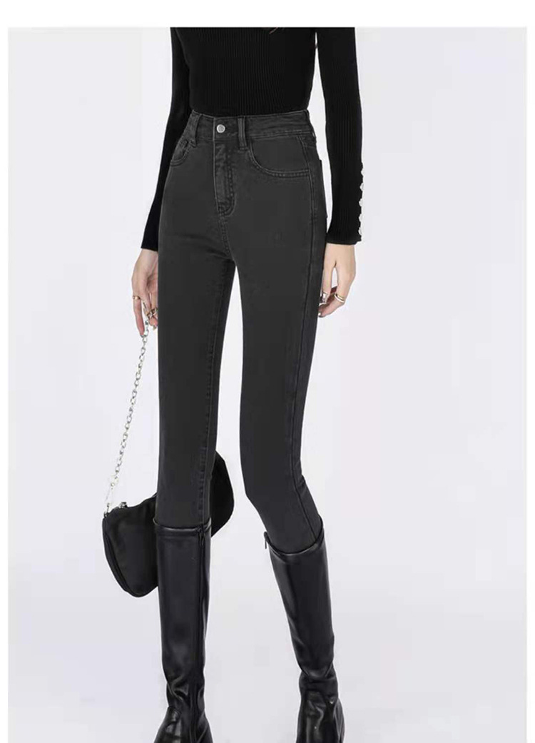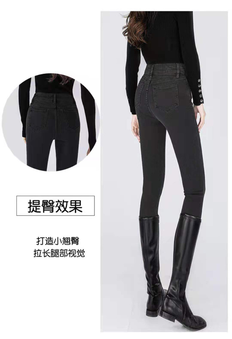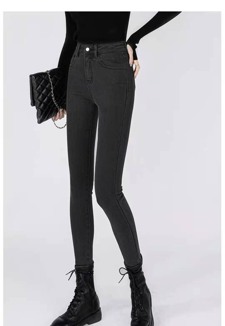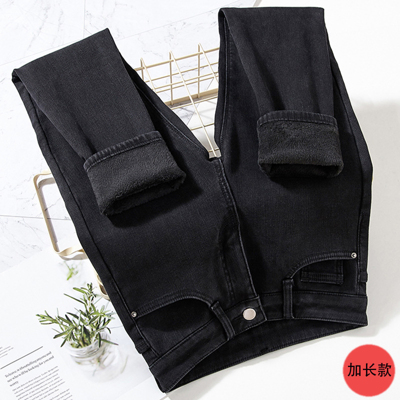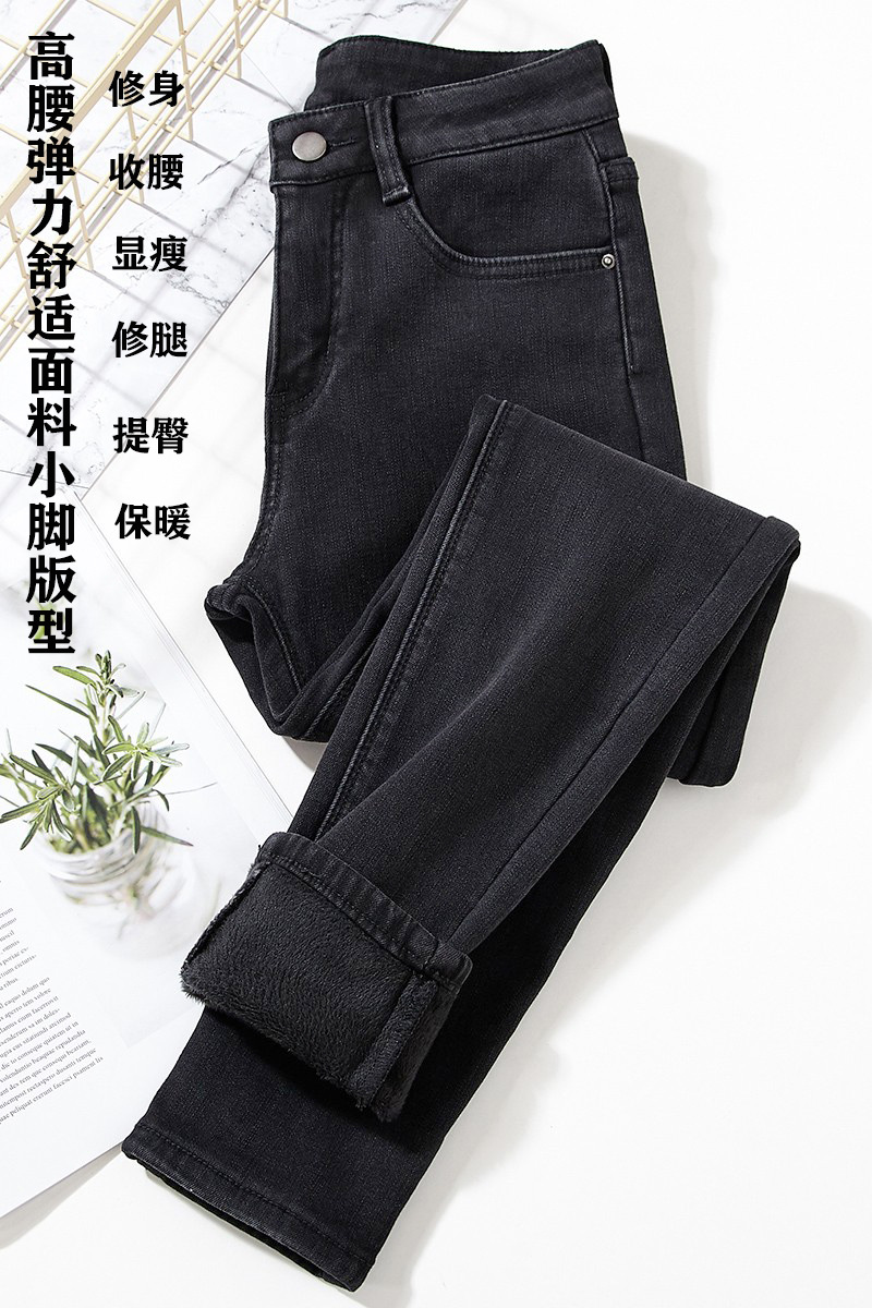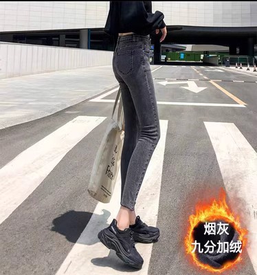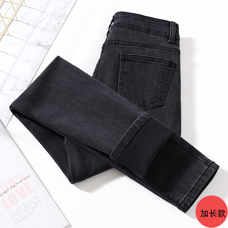 175 개의 키 라인 높은 허리 탄성 가을과 겨울 기모 두꺼운 청바지 스키니 바지 여성의 검은 회색 플러스 사이즈스토어 가기