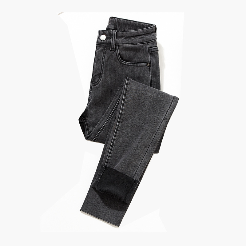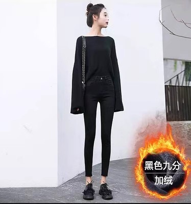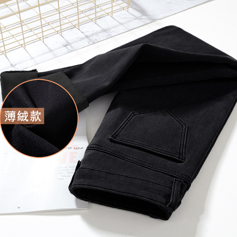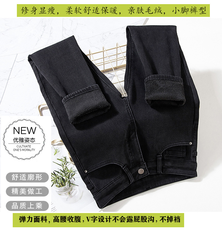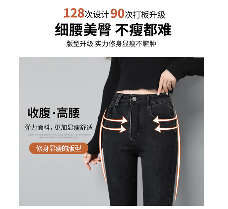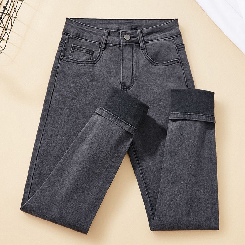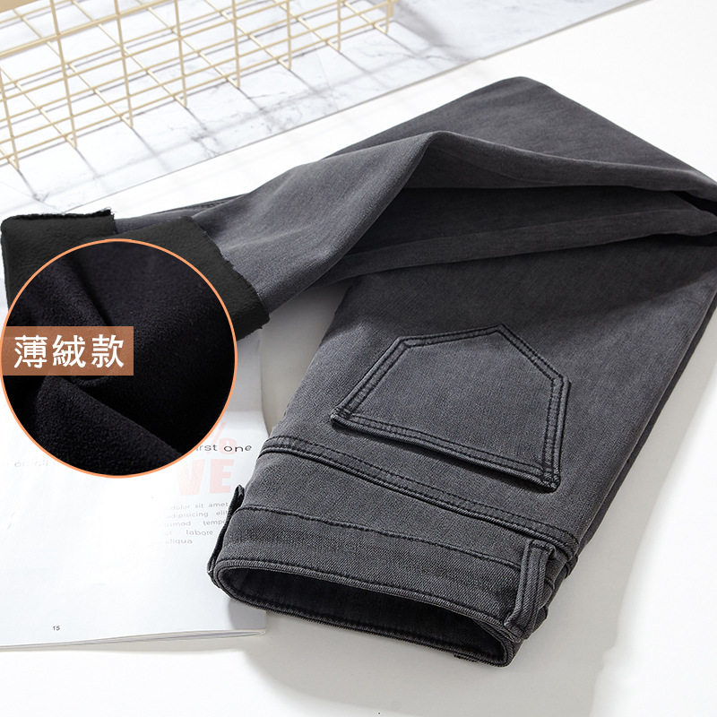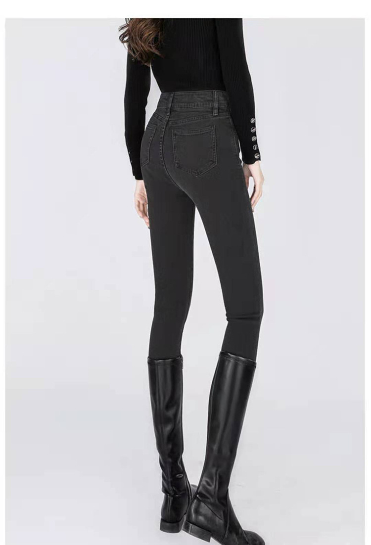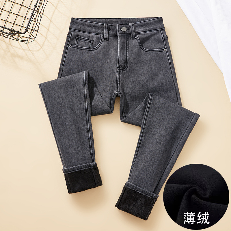 175 개의 키 라인 높은 허리 탄성 가을과 겨울 기모 두꺼운 청바지 스키니 바지 여성의 검은 회색 플러스 사이즈스토어 가기