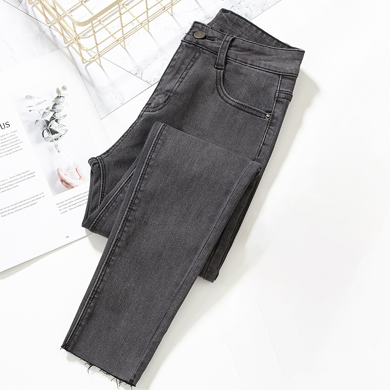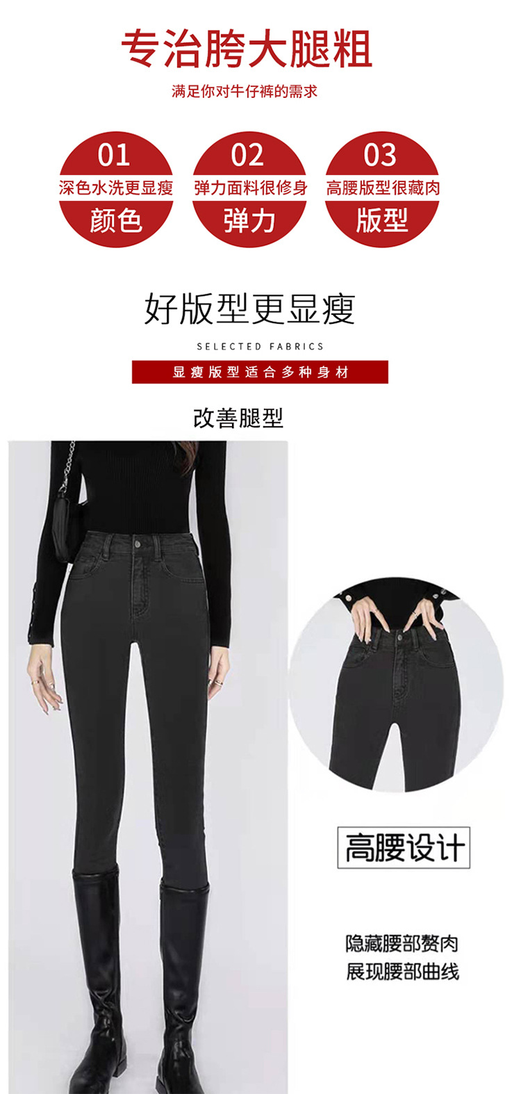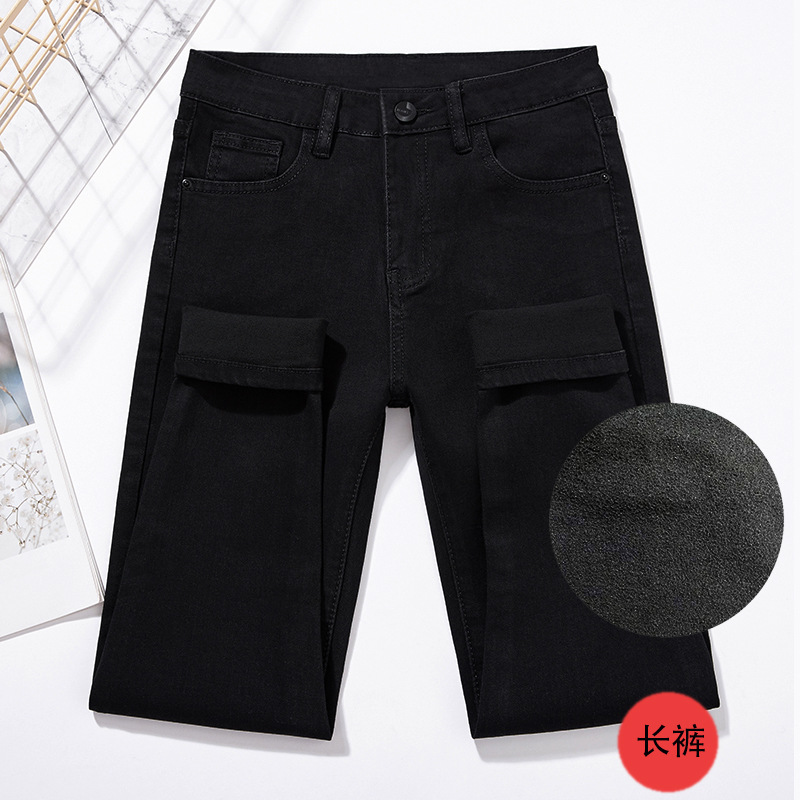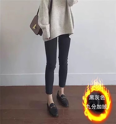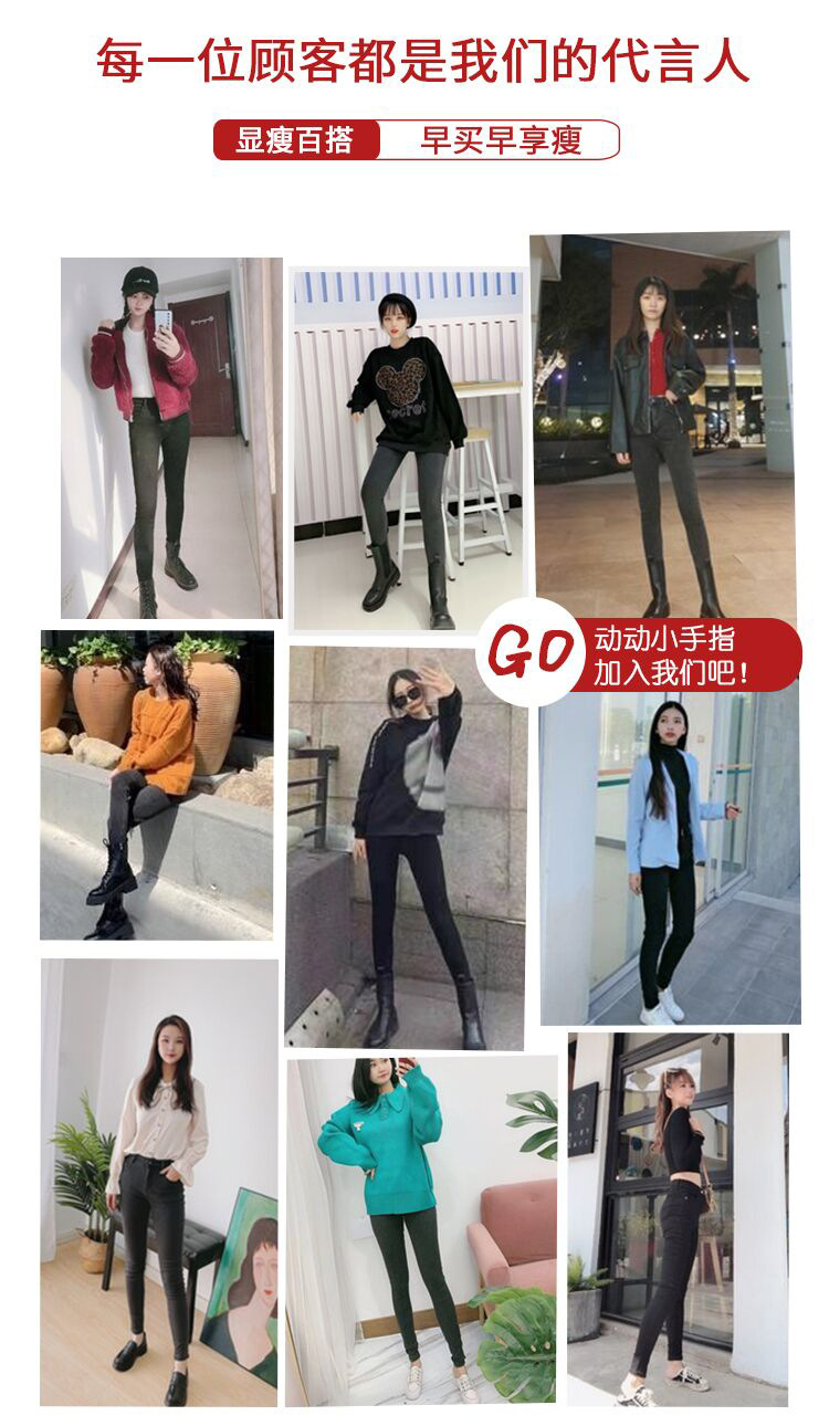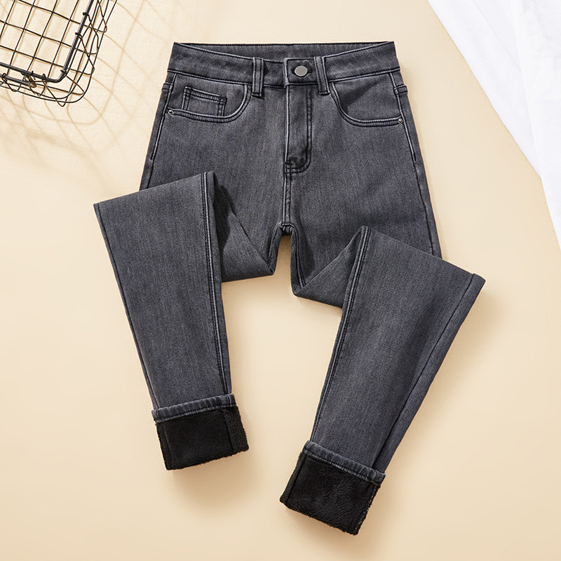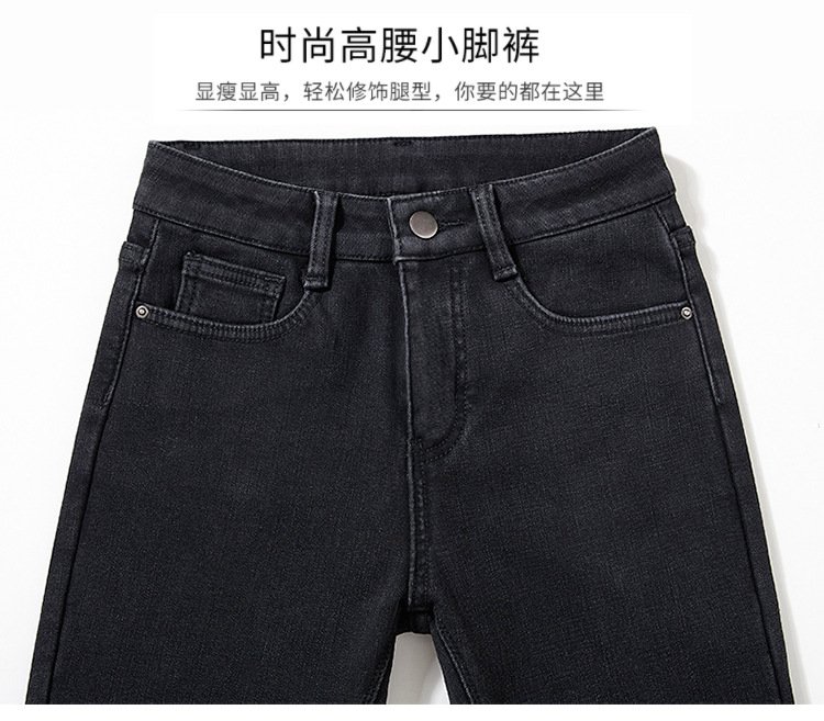 175 개의 키 라인 높은 허리 탄성 가을과 겨울 기모 두꺼운 청바지 스키니 바지 여성의 검은 회색 플러스 사이즈스토어 가기