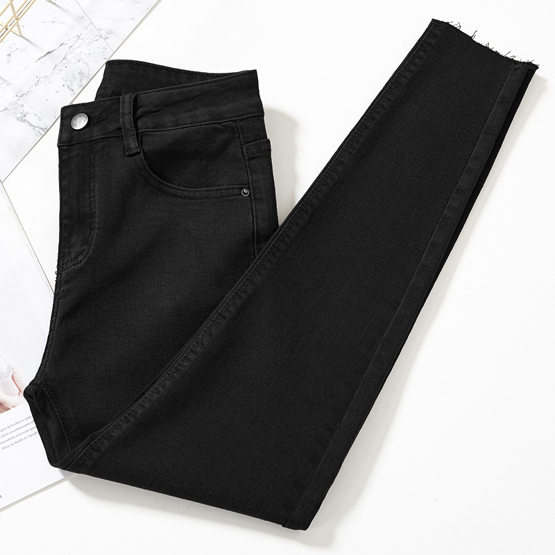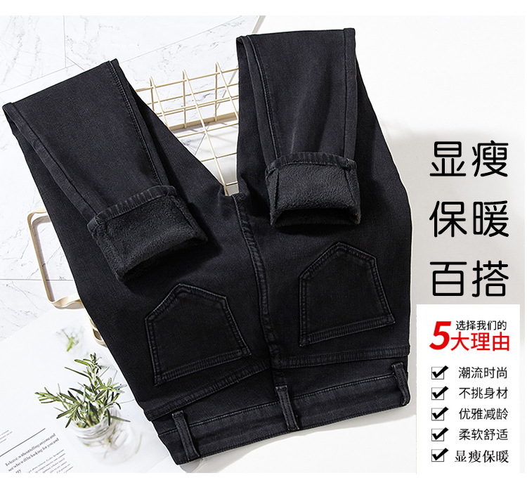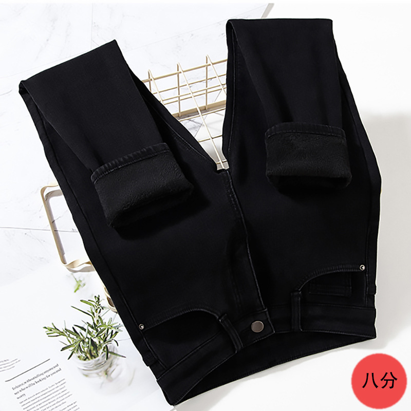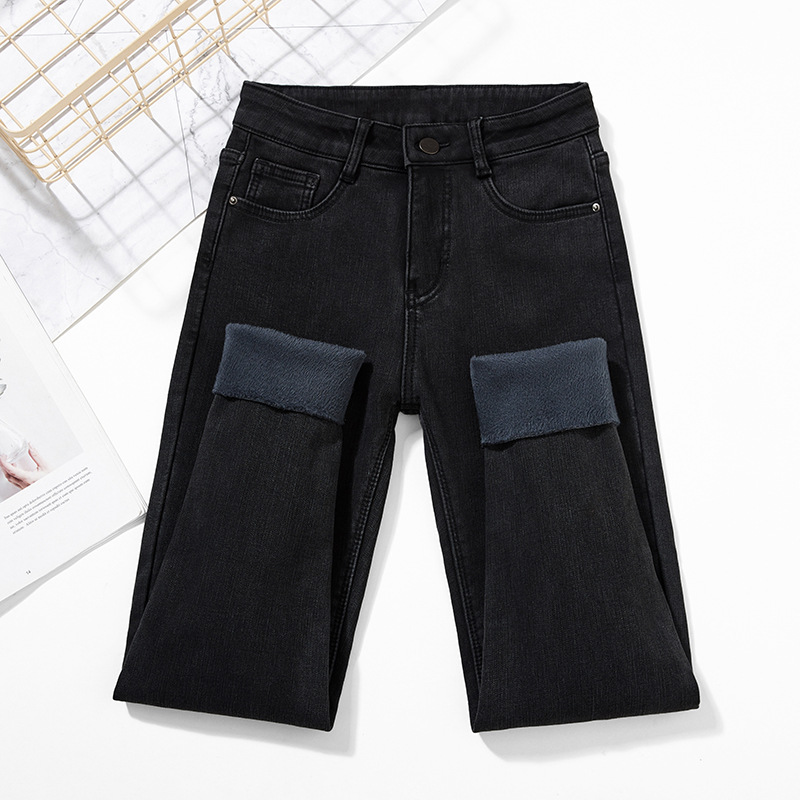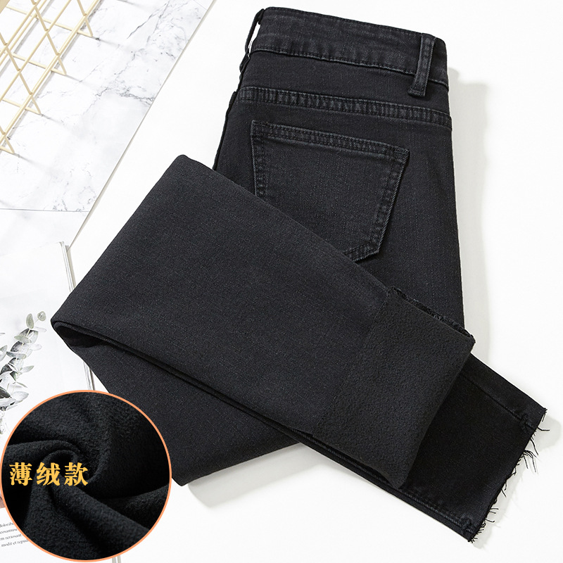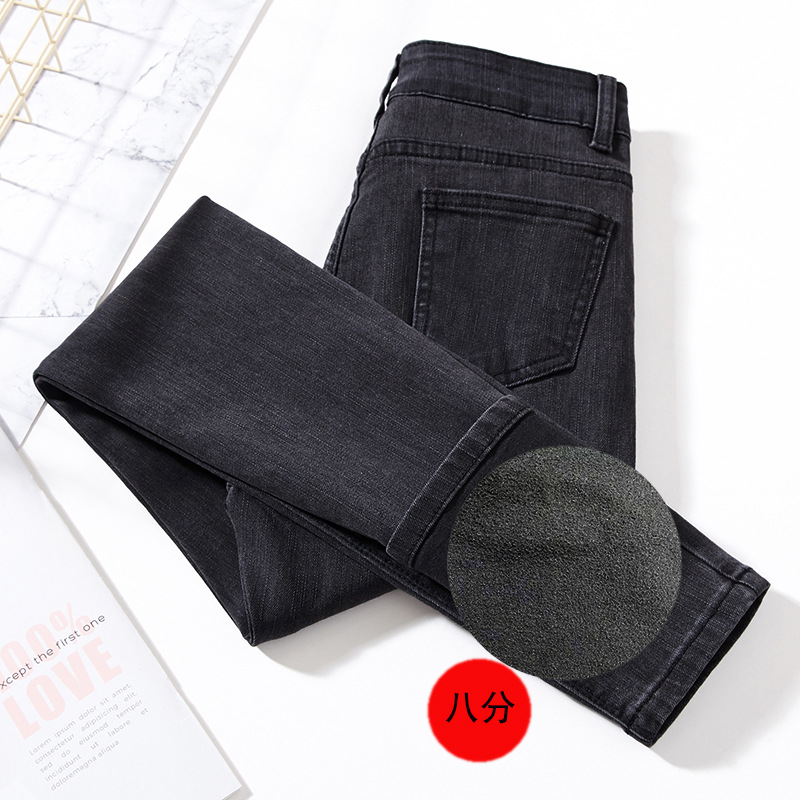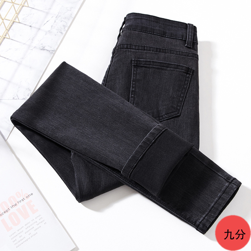 175 개의 키 라인 높은 허리 탄성 가을과 겨울 기모 두꺼운 청바지 스키니 바지 여성의 검은 회색 플러스 사이즈