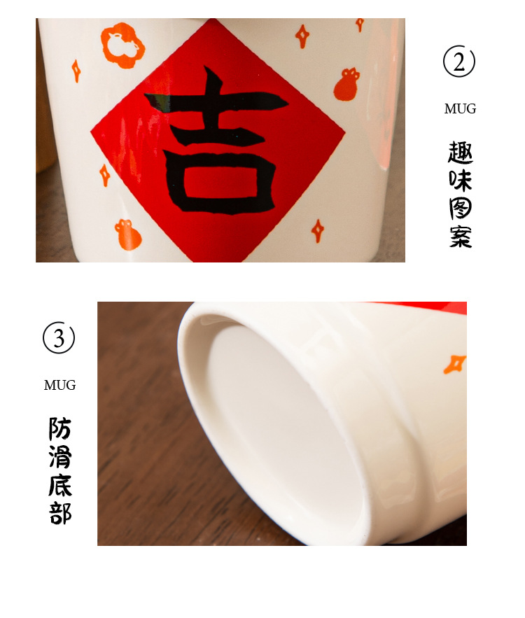 좋은 행운 세라믹 손 컵 축제 가정 찻잔 새해 커피 컵 물 컵 실용적인 손 선물스토어 가기