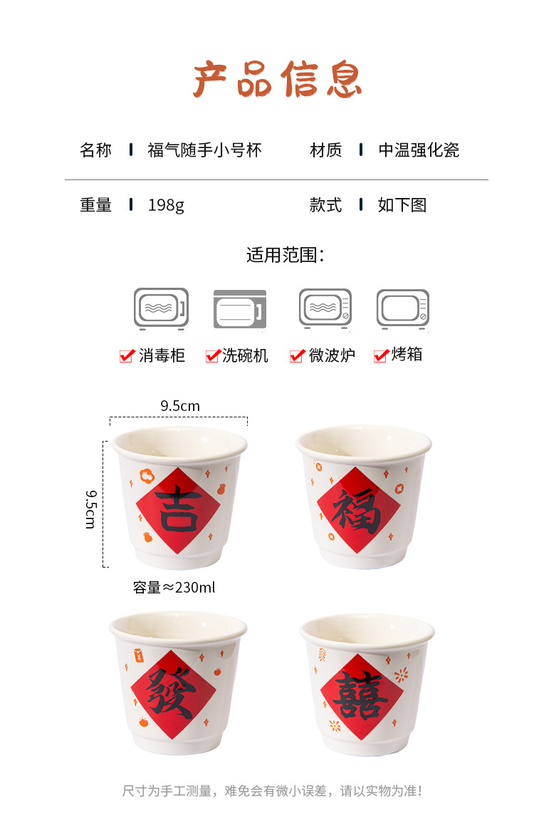 좋은 행운 세라믹 손 컵 축제 가정 찻잔 새해 커피 컵 물 컵 실용적인 손 선물