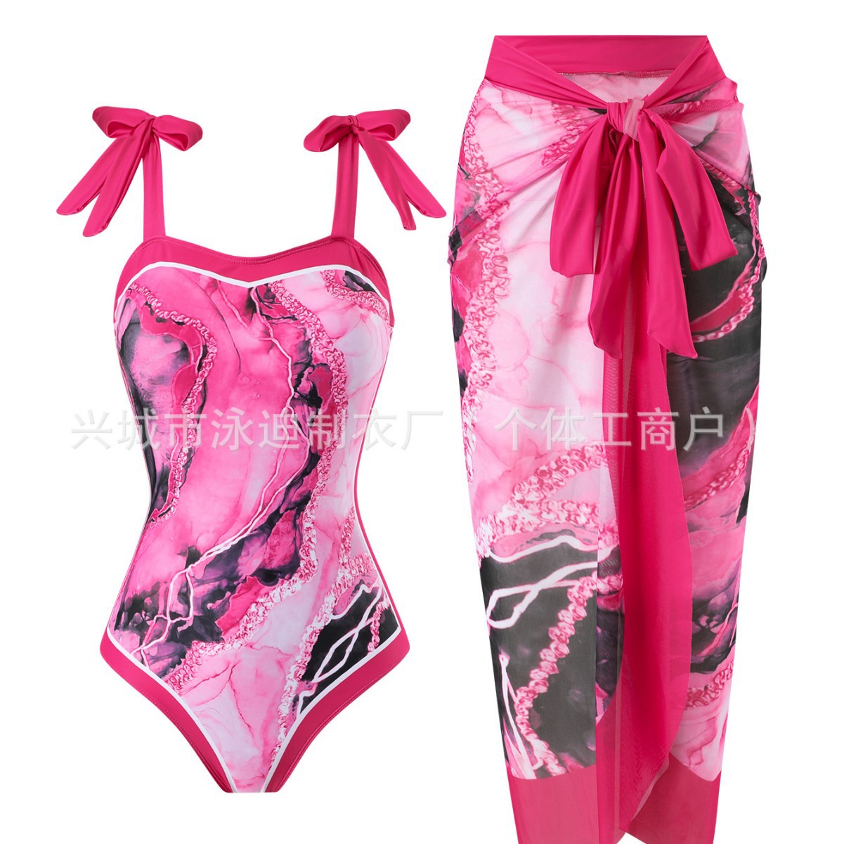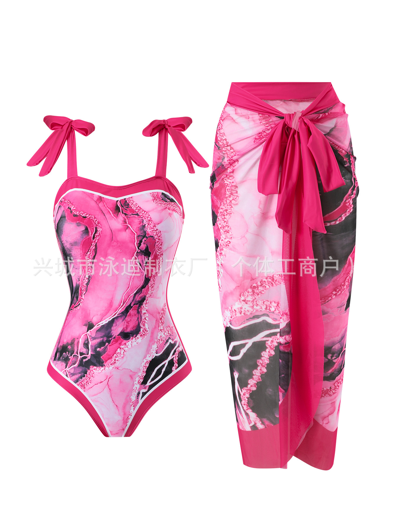 로즈 핑크 스톤 패턴 수영복 여성용 배꼽 높은 수준의 섹시한 수영복 2 피스 원피스 비치 온천