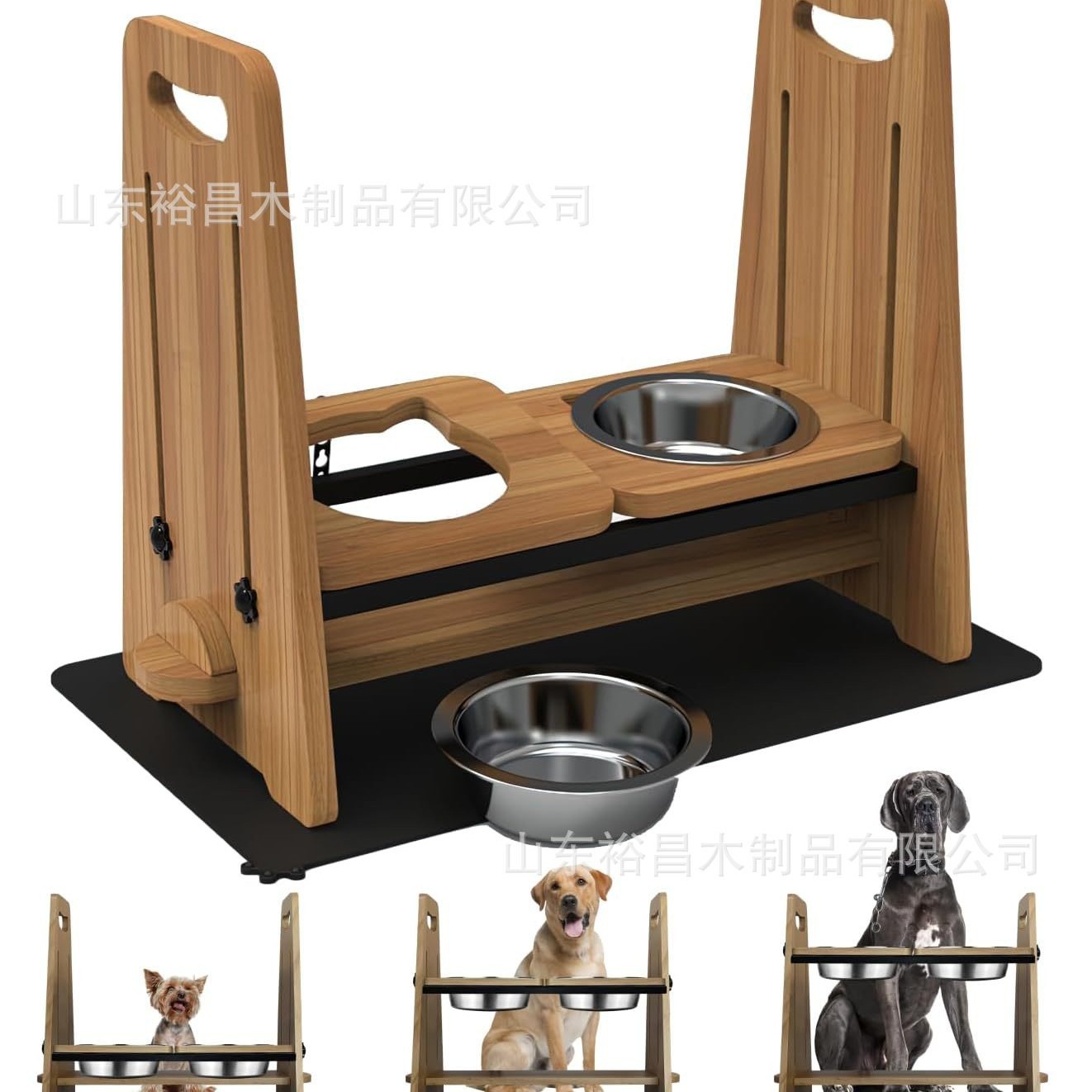 나무 개 그릇 랙 애완 동물 고양이 개 냄비 랙 입구 높은 목 보호 더블 그릇 랙 단단한 나무 마시는 랙