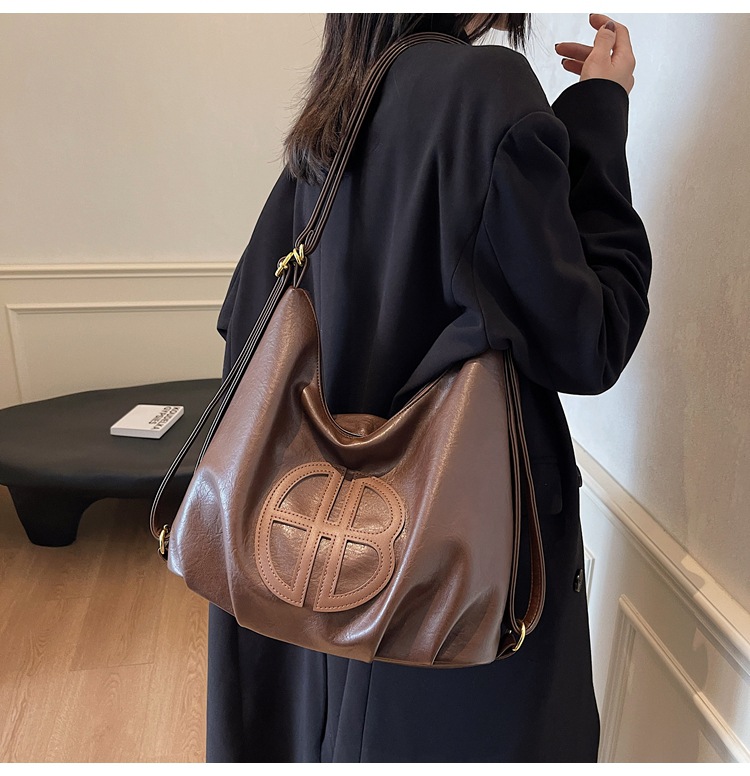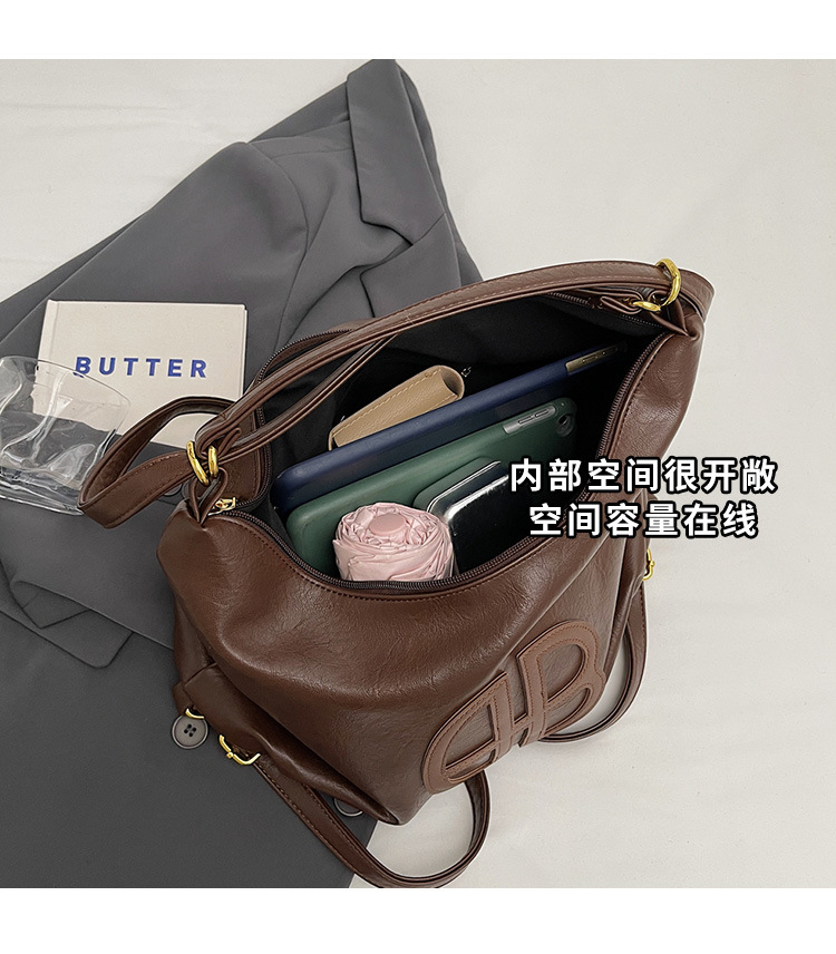 부드러운 섬유 큰 가방 2024 새로운 복고풍 대용량 예술적 통근 모든 경기 어깨 크로스 바디 백팩스토어 가기
