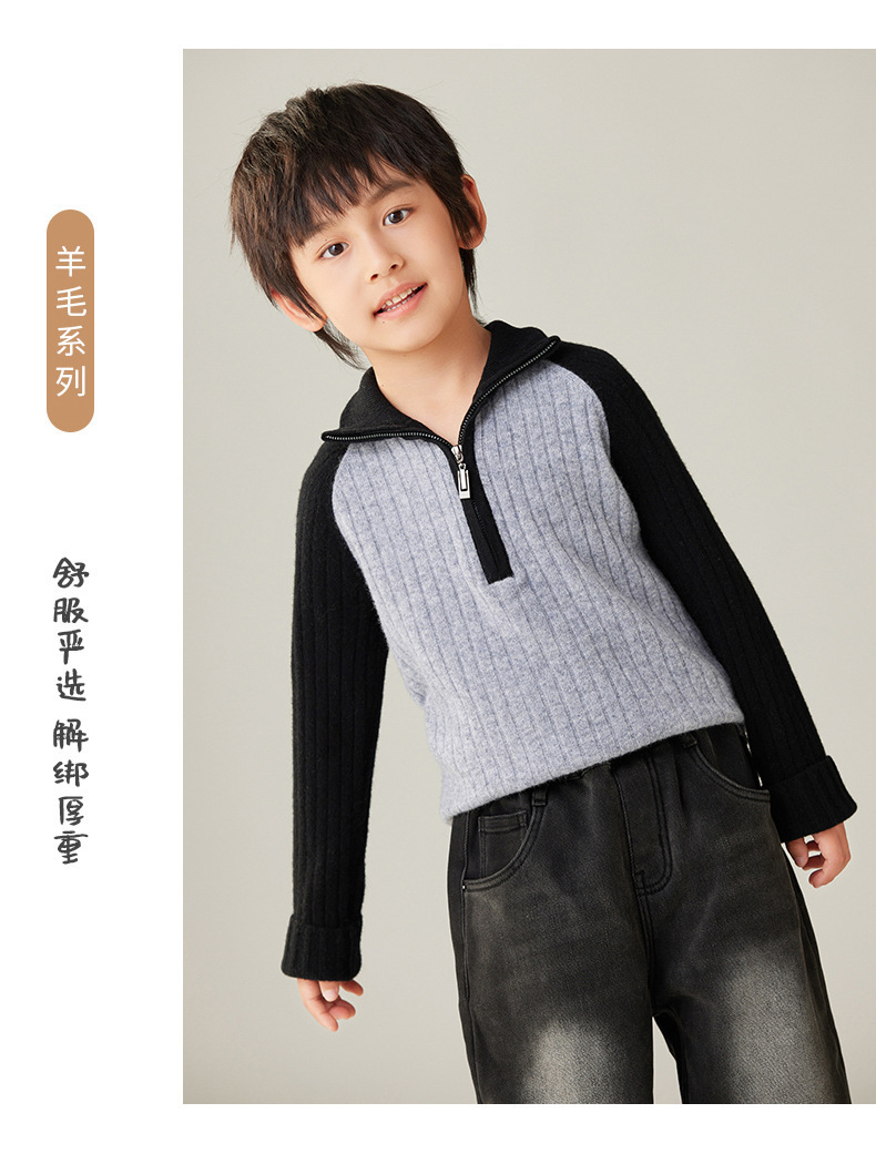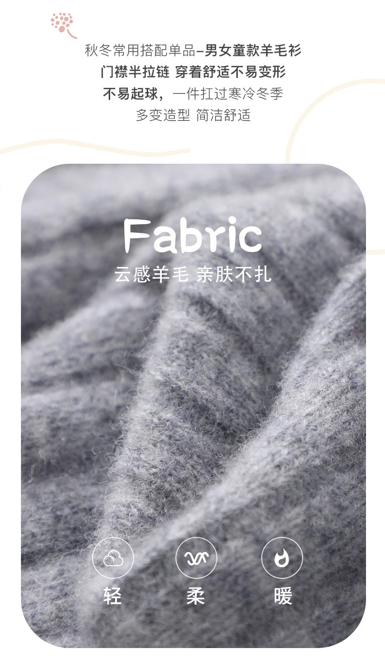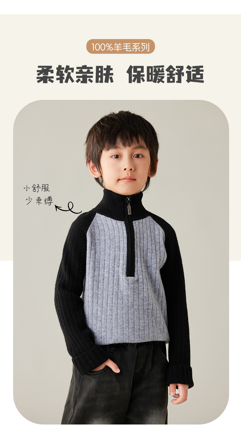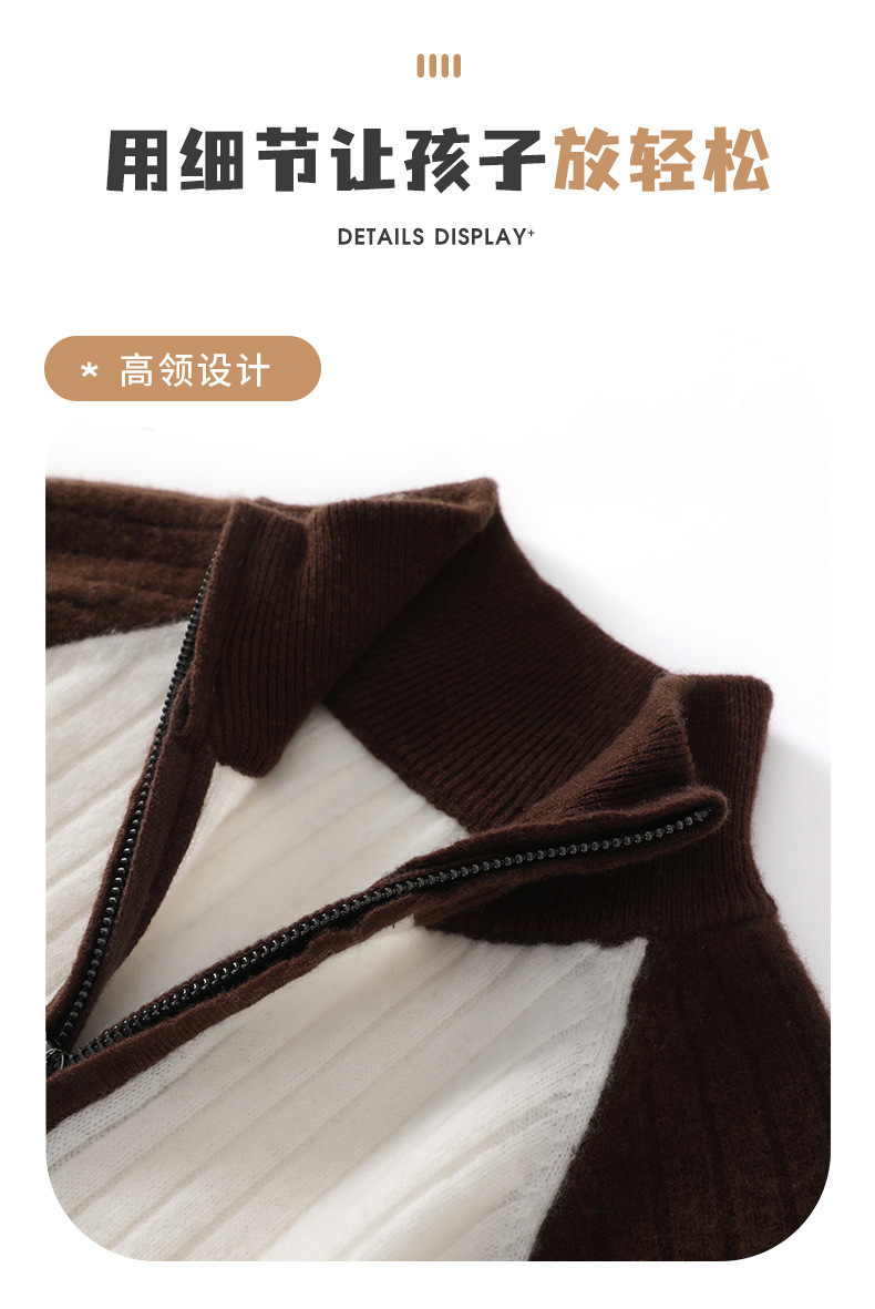 24【100%羊毛】女童半拉链衫毛衣儿童羊绒衫高领拼色百搭韩版外穿