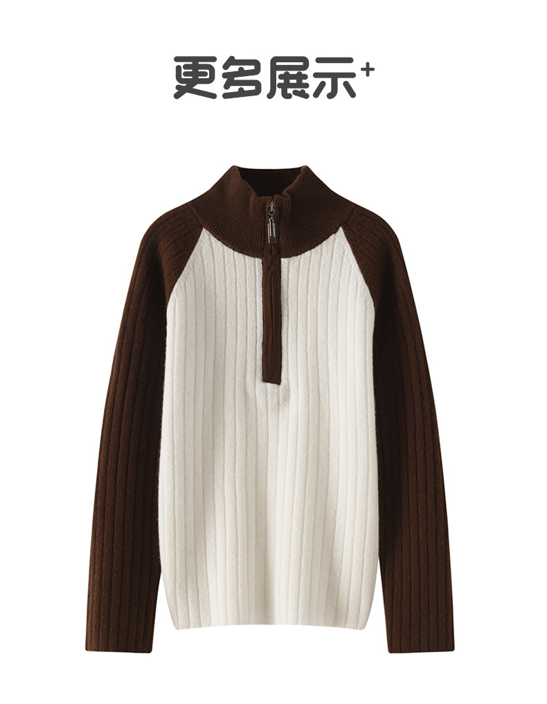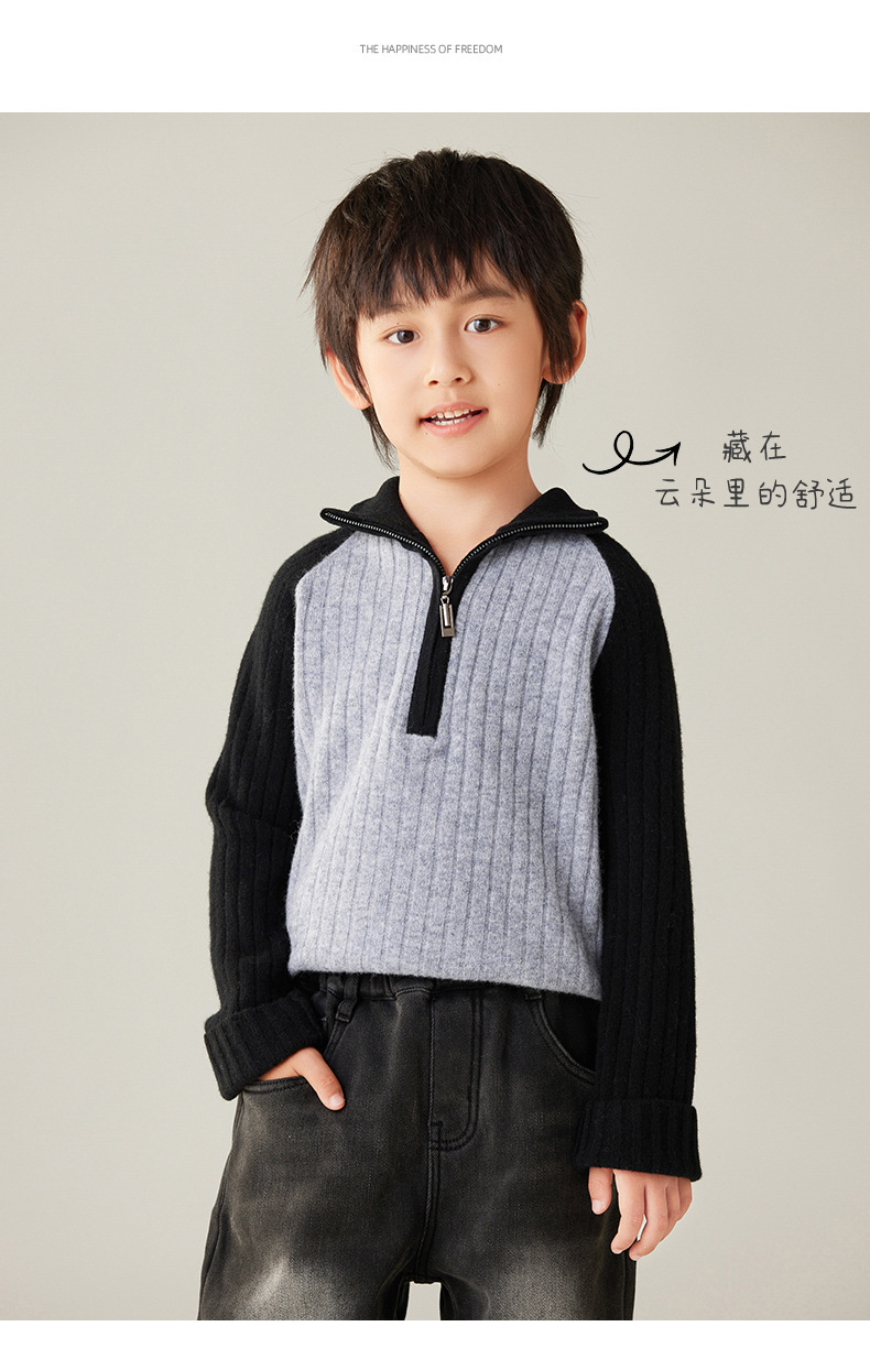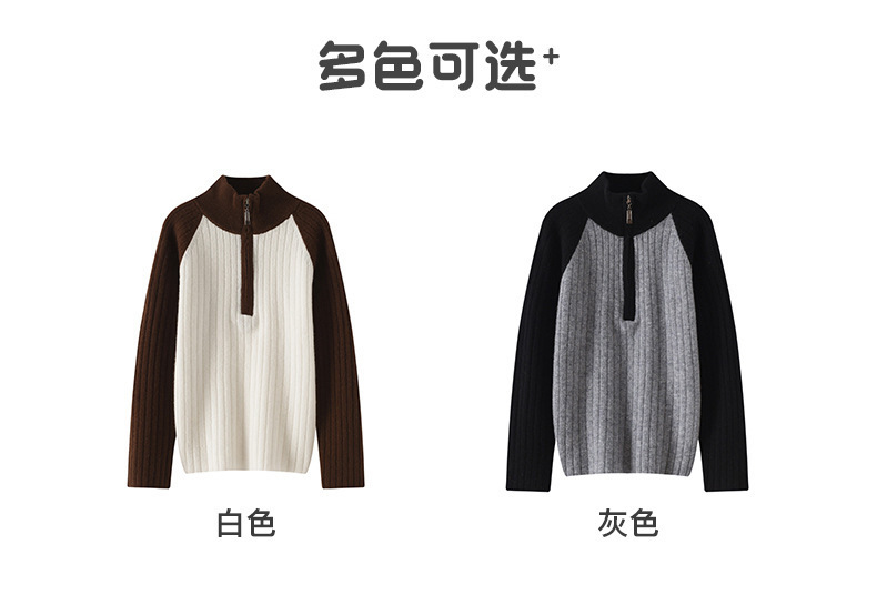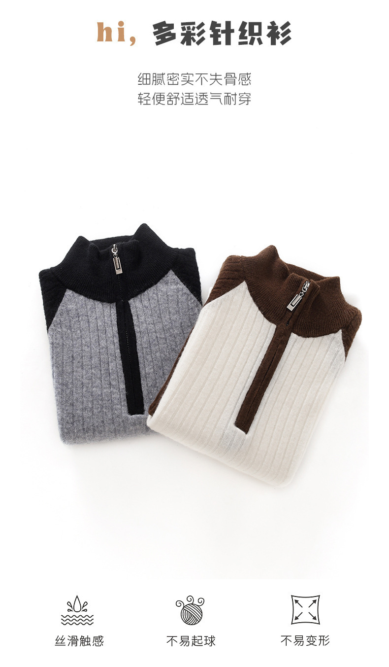 24【100%羊毛】女童半拉链衫毛衣儿童羊绒衫高领拼色百搭韩版外穿