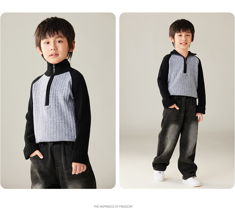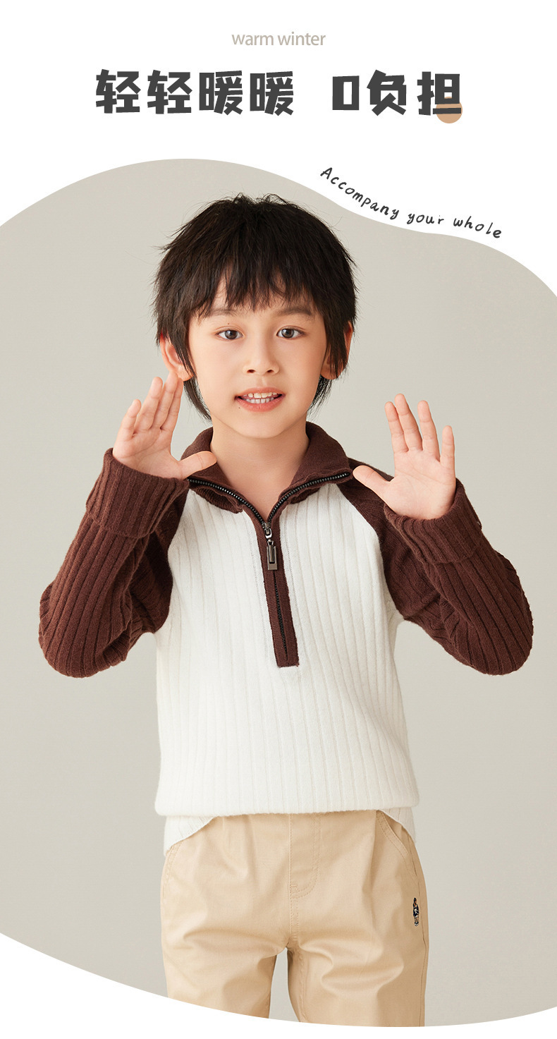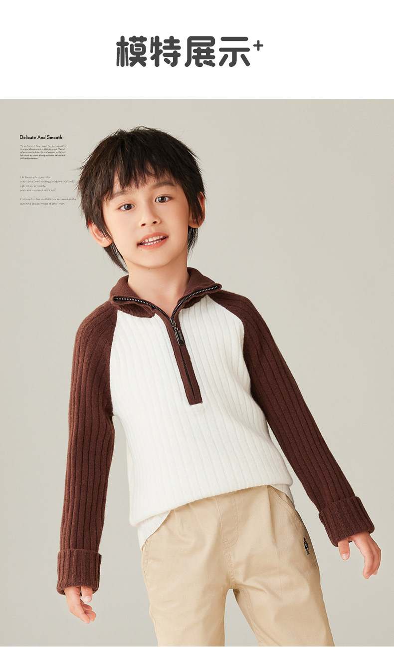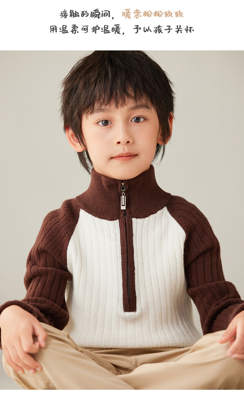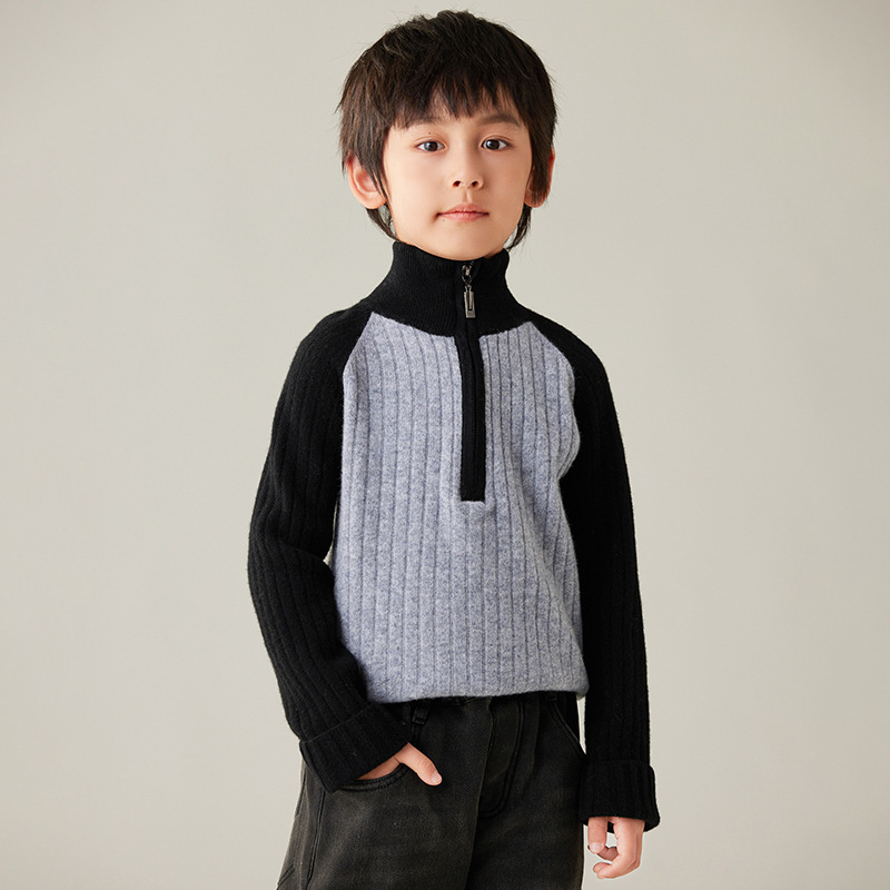 가을과 겨울 새로운 100 순수 양모 카디건 하프 지퍼 터틀넥 소년과 베이비 보이의 대학 스타일 콘트라스트 코트스토어 가기