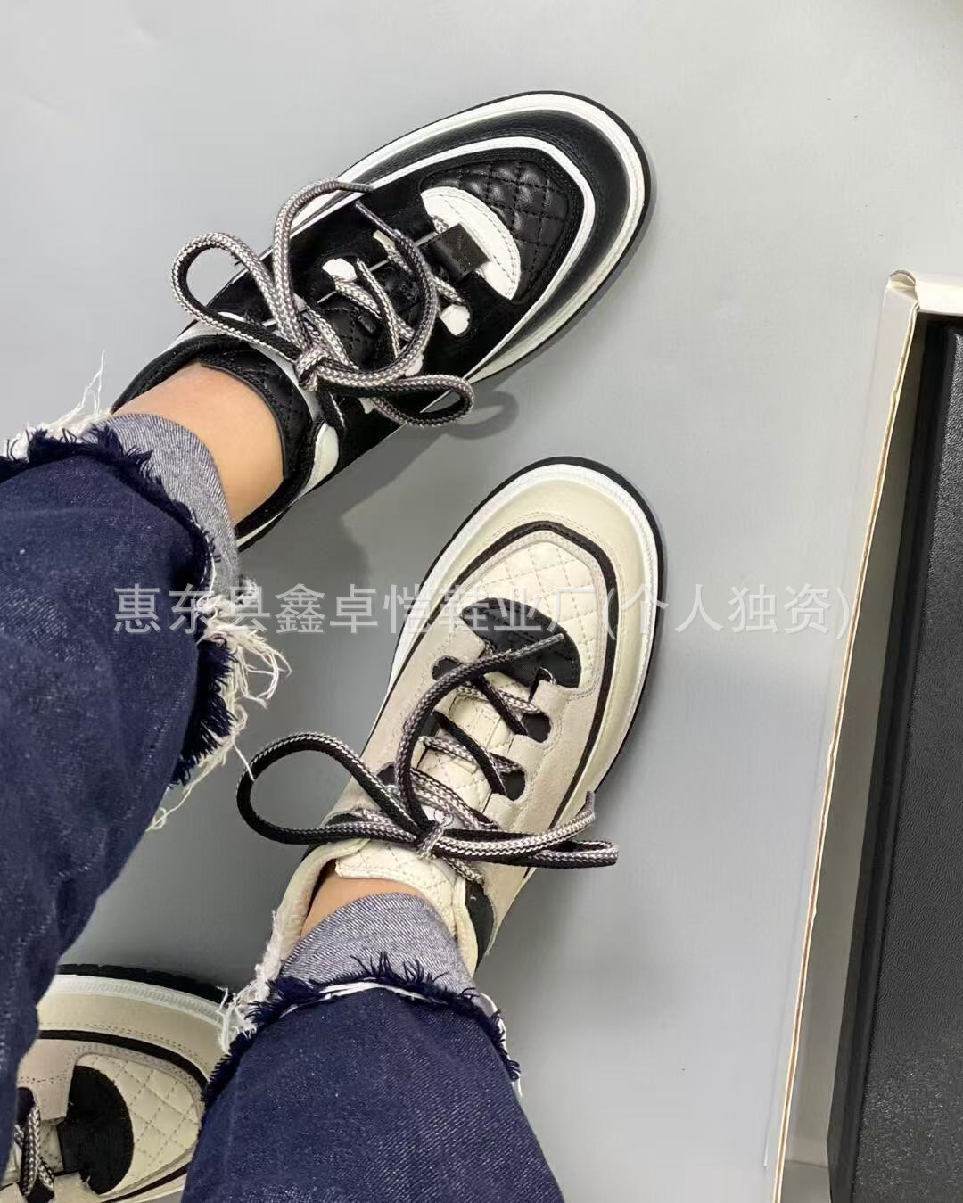 하이 버전 향기로운 스타일 캐주얼 운동화 여성의 25C 이른 봄 새로운 마름모꼴 컬러 블록 팬더 신발 가죽 토레 신발