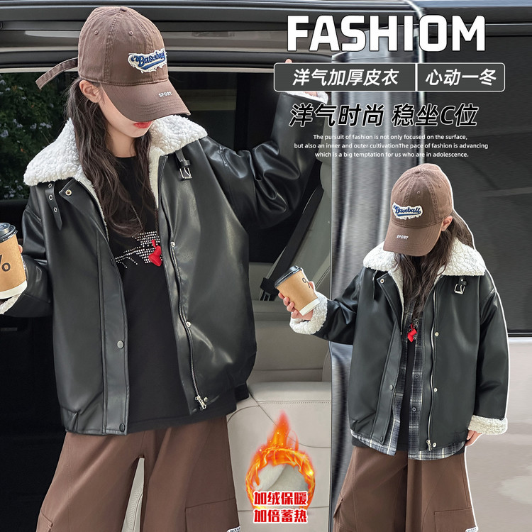 여아 겨울옷 2026 신상 아동용 플리스 안감 인기 가죽털 일체형 코트 여아 중대형 아동용 양털 가죽 자켓 트렌디스토어 가기
